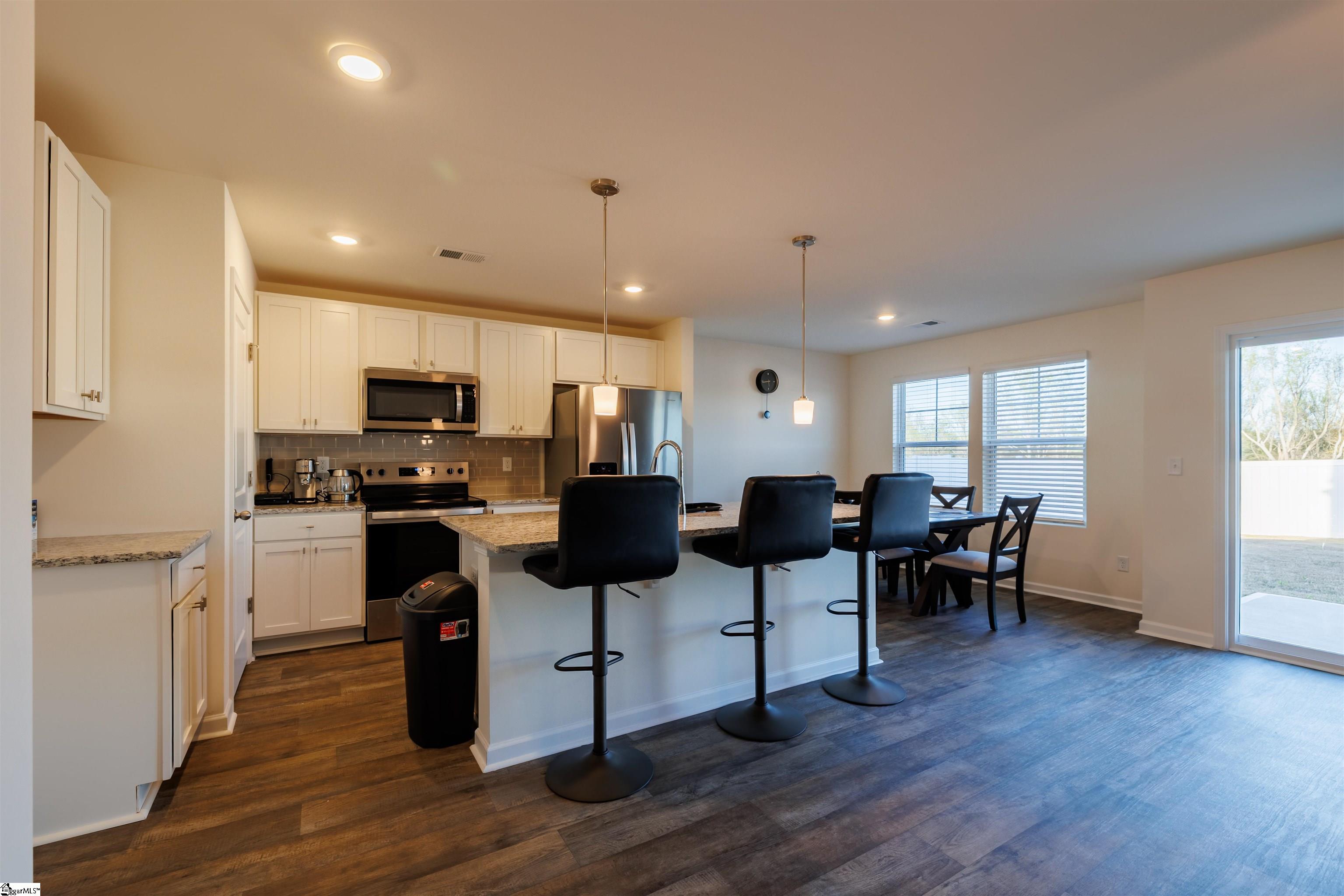 Welcome to this move-in ready home in the desirable Hazelwood community of Boiling Springs. Built in 2024 by Great Southern Homes, this popular Kelsey floor plan offers approximately 1,588 square feet with 3 bedrooms, 2.5 bathrooms, and a modern open-concept layout designed for comfortable everyday living. The main level features luxury vinyl plank flooring and a bright, spacious living area filled with natural light. The kitchen is equipped with granite countertops, stainless steel appliances, a smooth-top range, built-in microwave, and a large island with seating — perfect for entertaining and family gatherings. The dining area flows seamlessly into the great room, creating an open and functional space. A unique highlight of this home is the cozy nook under the stairs, currently set up as a pet room. This versatile space can also be used as a reading corner, play area, or additional storage. Upstairs, the owner’s suite offers a walk-in closet and private bathroom with double vanity and tub/shower combination. Two additional bedrooms, a full bathroom, and a convenient second-floor laundry complete the upper level. Enjoy outdoor living with a backyard patio and level yard. Additional features include a tankless gas water heater, natural gas heating, energy-efficient construction, architectural shingles, and an attached one-car garage. Located just off Highway 9 and within walking distance to the Ingles shopping center, this home offers exceptional convenience for groceries, dining, and everyday essentials. Easy access to I-85 makes commuting simple while still enjoying a quiet neighborhood setting. Seller is willing to leave all furniture for an additional cost. This home combines modern features, functional layout, and an excellent location — ready for its next owner.