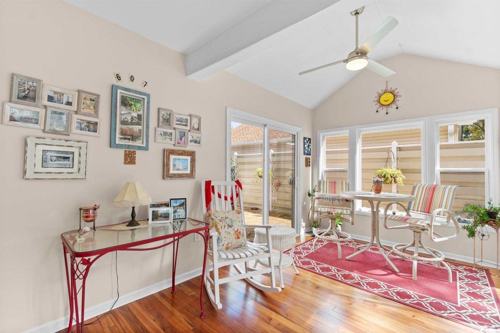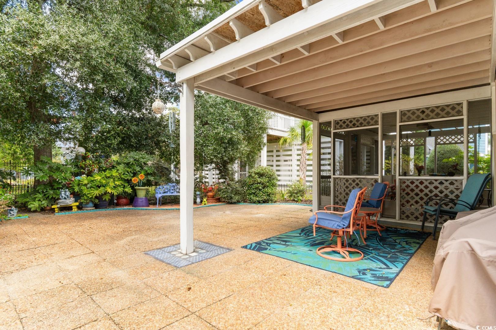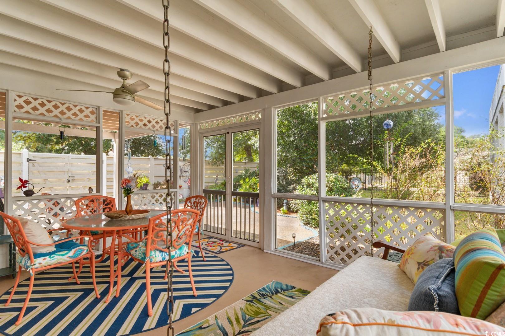 Welcome to 607 Rosemary Ln, a stunning and meticulously maintained 2-bedroom, 2-bathroom single-family home nestled in the highly sought-after Tilghman Woods community of North Myrtle Beach. This residence offers a bright and airy open floor plan, highlighted by a vaulted ceiling in the living room, creating a spacious and inviting atmosphere. The home has seen numerous recent upgrades to ensure modern comfort and peace of mind: in 2015, the bathrooms received new flooring and the entire home was updated with new blinds; 2016 the roof was replaced, a beautiful sunporch addition, a new bathroom door, and added wooden fencing; the major mechanical systems and kitchen were addressed in 2017 with a new HVAC system, hot water heater, new kitchen appliances, and granite countertops. Continuing the high standard of care, gorgeous engineered hardwood flooring was installed throughout the home in 2020. In addition a new concrete driveway was added. Final touches in 2022 was a complete remodel of the master bathroom. Also, a beautiful and utilitarian walkway was added in the back of the house for easy access to the back gate which leads to Main St. Located in a prime spot near the Ocean Drive section, residents are just a short distance from the pristine beaches, golf courses, and the vibrant Main Street area. Nearby attractions like Barefoot Landing, Alligator Adventure, the Alabama Theatre, and the Cherry Grove Pier offer endless opportunities for entertainment, shopping, and dining, making this the perfect coastal retreat!
