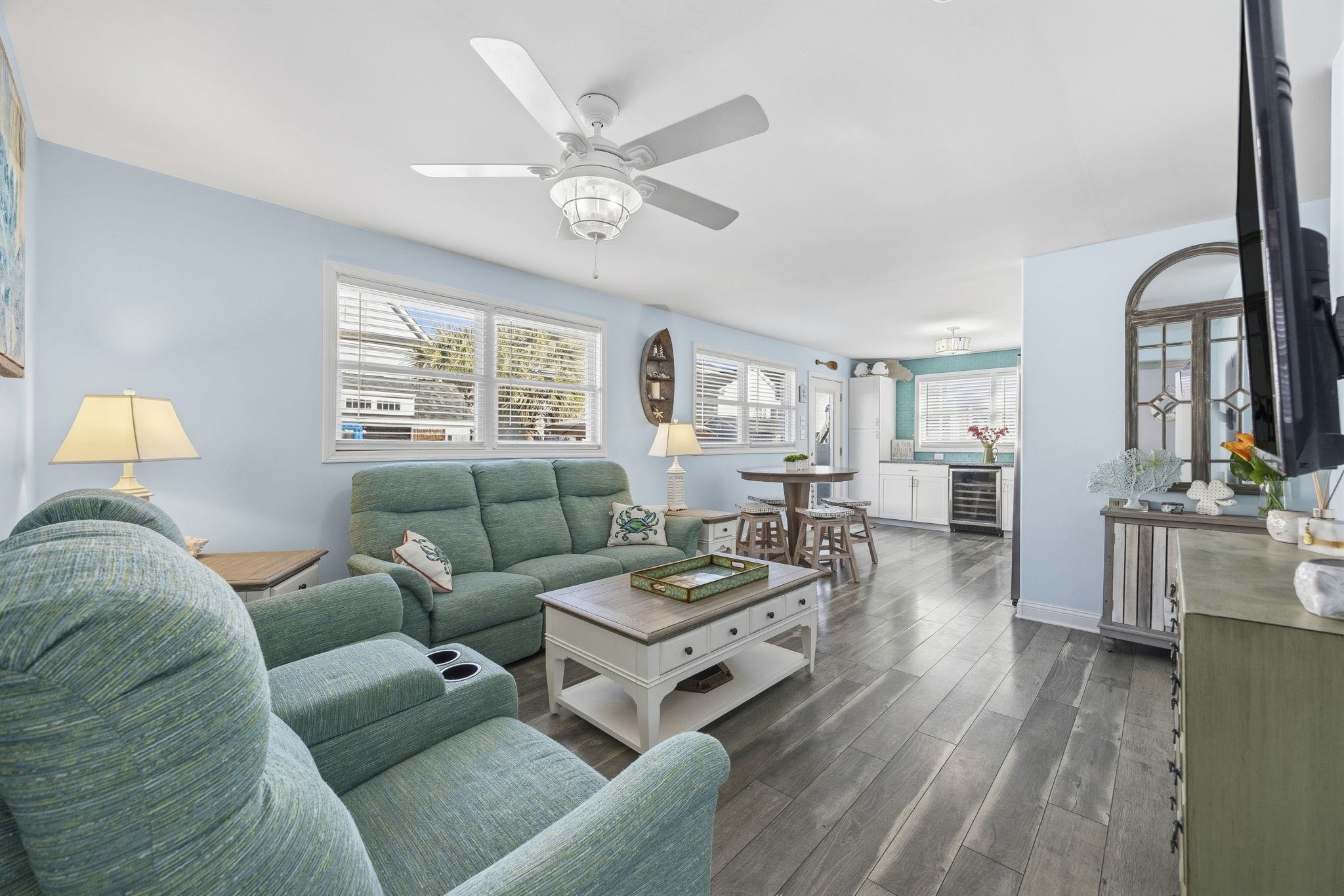 Completely remodeled from top to bottom, this stunning 3-bedroom, 2.5-bath coastal retreat offers the perfect blend of modern upgrades and coastal charm. Featuring single-level living, this home showcases luxury LVP flooring throughout, a beautifully updated kitchen with stainless steel appliances, granite countertops, and a bright, open layout. Outside you have a private oasis complete with a heated saltwater pool, expansive yard space, and a massive storage building, ideal for beach gear or golf cart. The oversized lot also offers parking for up to 8 vehicles, a rare find this close to the beach. Located east of Hwy 17 and just steps to the sand, plus only 6 blocks to Main Street dining, shopping, and entertainment. No HOA and short-term rentals are allowed, making this an exceptional primary residence, second home, or high-income investment opportunity. Location, upgrades, rental flexibility, and beach access; this one truly has it all!