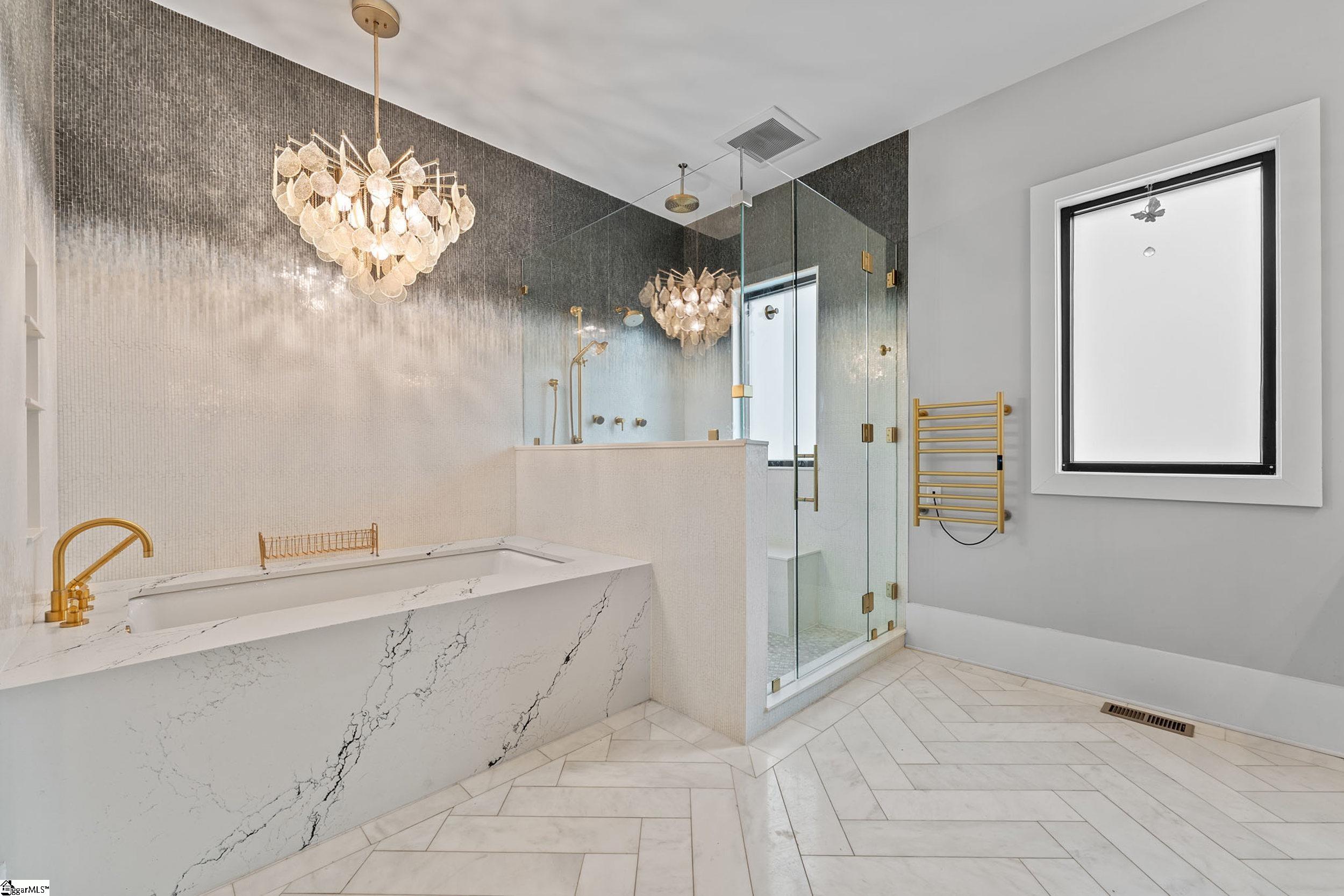 Step inside to modern luxury with this stunning home featuring commercial-grade floor-to-ceiling windows that flood every room with light. Enjoy a sleek, open layout with hardwood floors, marble countertops, and high-end appliances that elevate everyday living. Thoughtful design for both efficiency, this home also includes a TESLA-POWERED solar system, offering long-term energy savings and sustainable comfort. Designed for ultimate convenience, the home offers a huge main laundry room with abundant storage, plus a secondary laundry area inside the main dressing room, complete with a stackable washer and dryer and an upright garment steamer. Featuring five full baths, each designed with high-end finishes. That goes with each of the five bedrooms. The luxurious primary ensuite showcases spa-level details- including an oversized walk-in shower, deep standalone bathtub, smart toilet, double sink, and heated towel rack, premium fixtures, and a serene retreat-like atmosphere. The home has an outstanding structured water system, a Greenhouse, and raised garden beds. This home is a place to live with purpose, presence, and peace. If you're seeking a move-in-ready property that supports regenerative living and land connection, this is your next step!