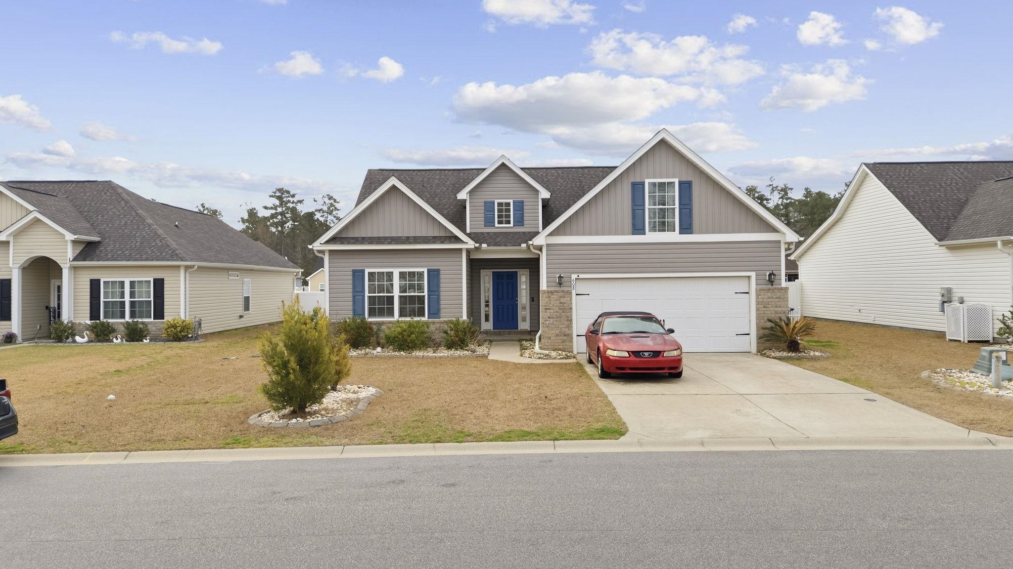Welcome home to this 4 bedroom, 2 bath home in Barons Bluff North, offering a comfortable layout and space to grow. Step inside to a foyer that brings you to an open and airy living room with vaulted ceilings that create a bright, welcoming feel. The main living areas feature LVP flooring while the bedrooms offer cozy carpet. The kitchen flows easily from the living space and includes granite countertops, stainless steel appliances, a gas stove and oven, a pantry with shelving, and a dedicated dining area, making it easy to gather for weeknight dinners or casual get-togethers. Additional features include a tankless hot water heater and gas heat for added efficiency and comfort. The primary suite is conveniently located on the first floor and features tray ceilings, along with an ensuite bath complete with a walk-in shower. Two additional bedrooms on the main level share a full bath, offering practical space for family, guests, or a home office. Upstairs leads to the fourth bedroom that can flex to fit your needs- playroom, media room, hobby space, or quiet retreat. A separate laundry room with hookups adds convenience, and the attached two-car garage provides additional storage and functionality. Out back, enjoy a screened-in porch that opens to an extended patio and a fenced yard that includes swing set, perfect for pets, kids, or simply relaxing outdoors. Barons Bluff is a beautiful community featuring lakes, street lighting, sidewalks, a pool, and a cabana area while offering both charm and everyday convenience. Residents of Barons Bluff North enjoy convenient proximity to Highway 90 for an easy commute, and is just about 20–25 minutes from the beautiful beaches of Myrtle Beach. This home offers space, character, and the opportunity to make it your own in a neighborhood many buyers love. If you’re looking for a solid home with room to personalize and grow, this is the one! Photo (1) edited to remove car from driveway and photo (31) digitally staged to show new flooring that will be added soon.