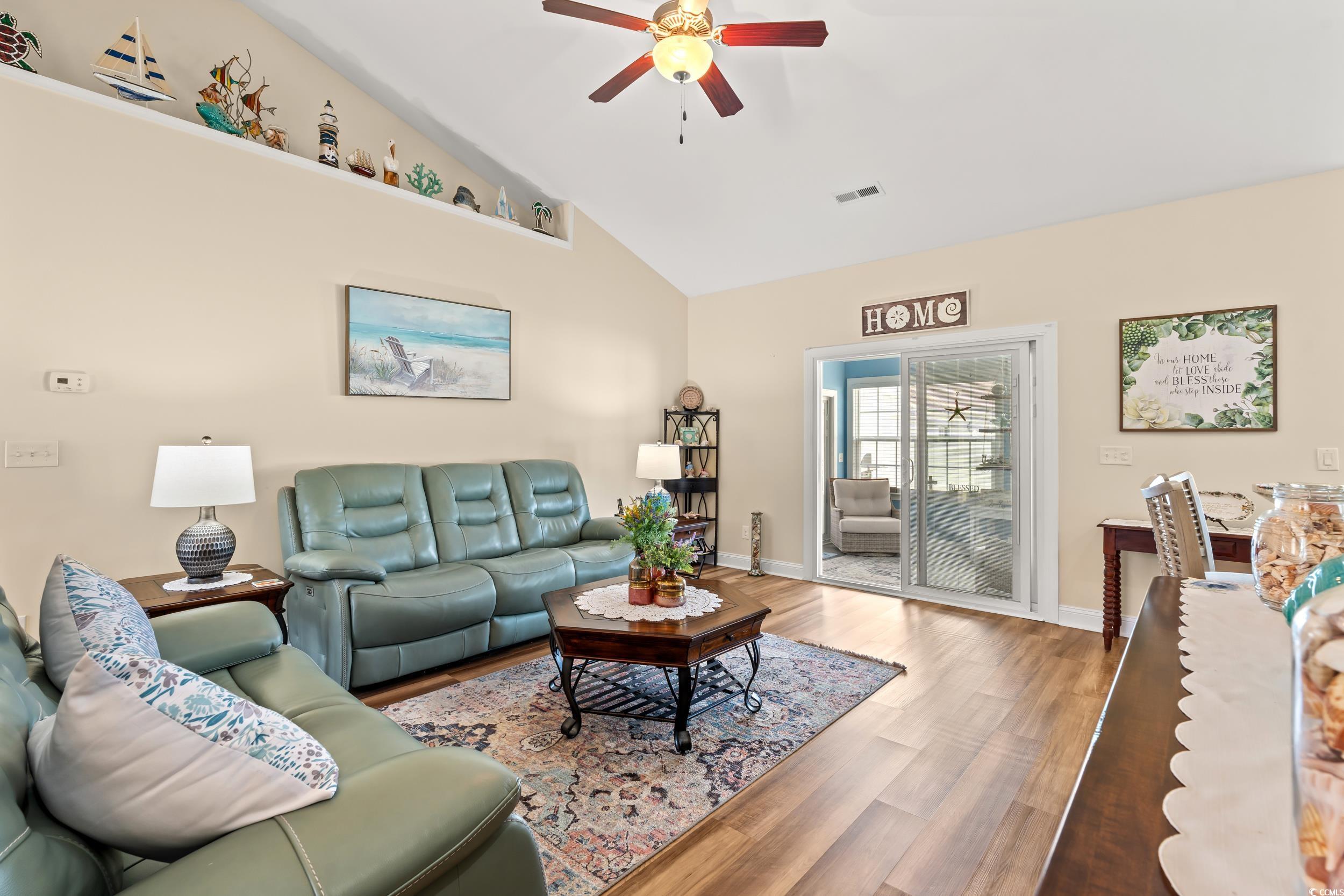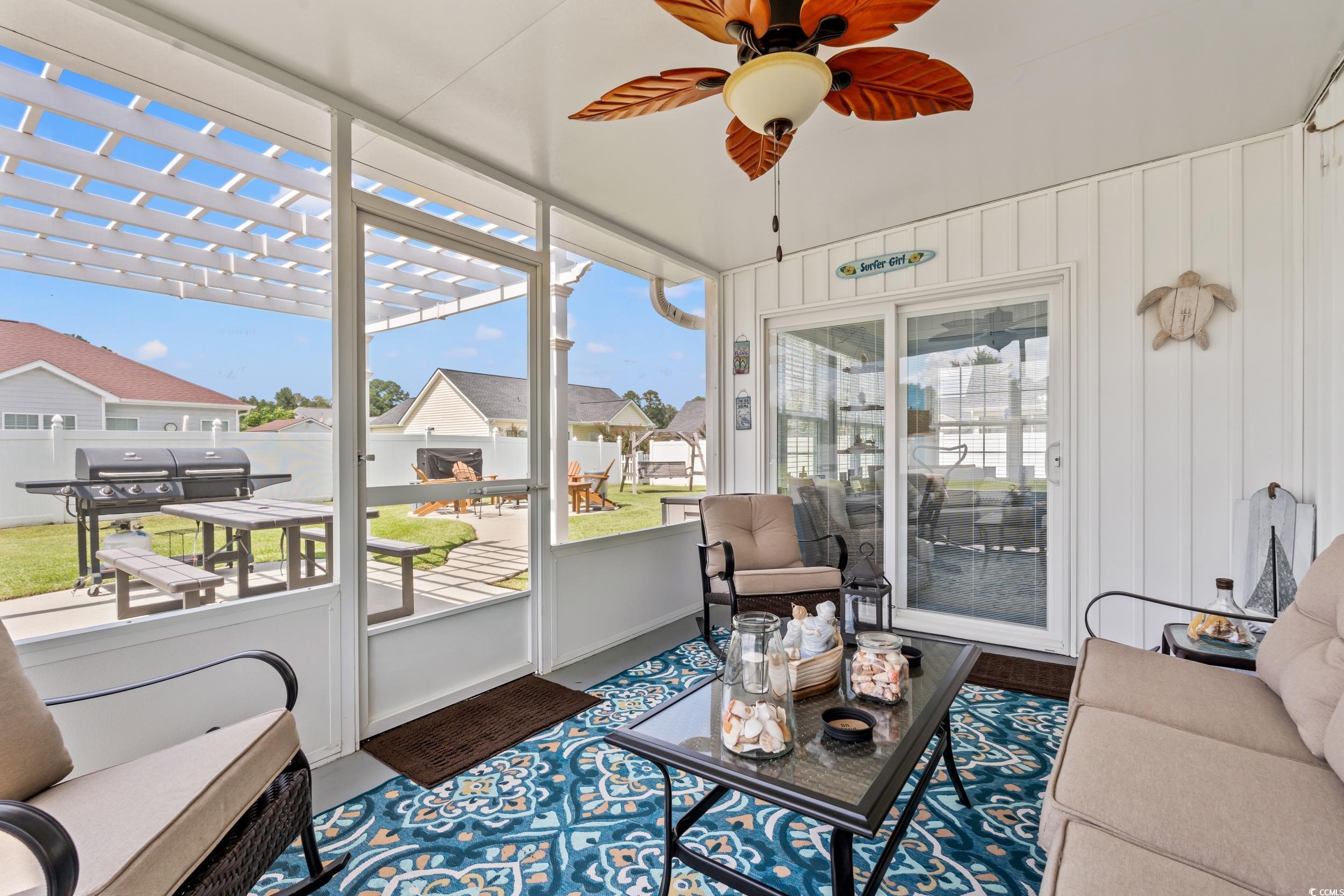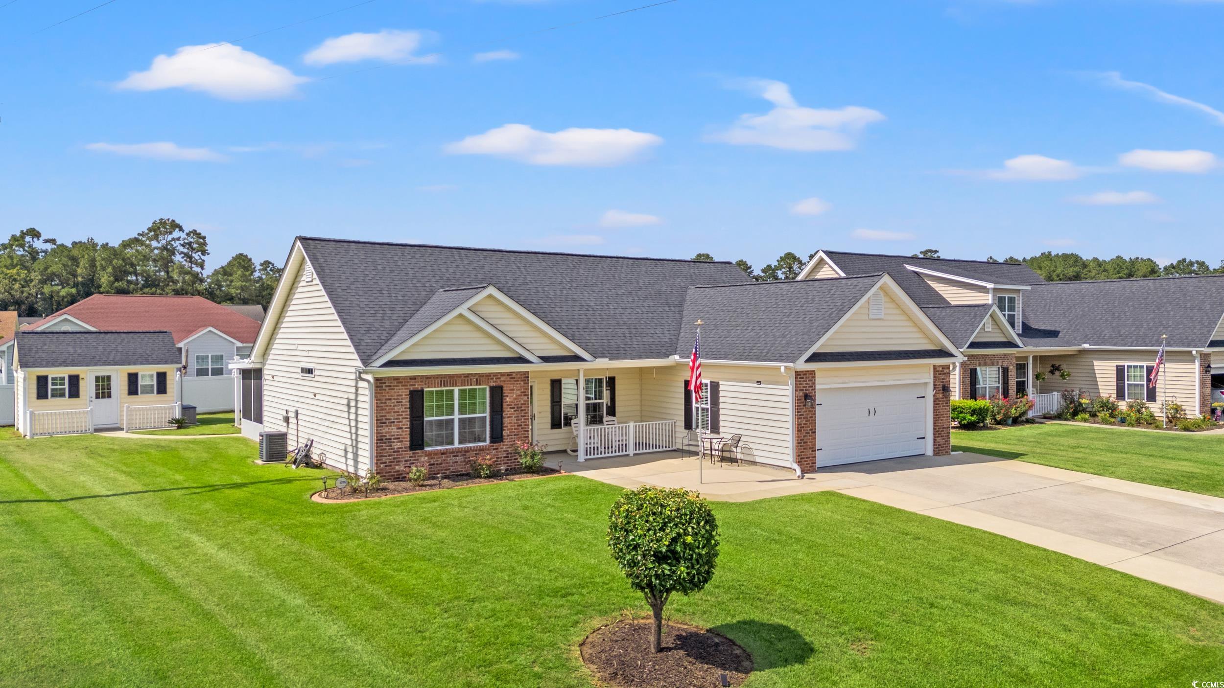 Welcome to this immaculate 3-bedroom, 2-bath split-bedroom home in the sought-after Tanglewood community. This home is perfectly situated on a generous 0.37-acre lot. One of the biggest in the community. Home has a pond view and countless spaces to relax, entertain, and enjoy the coastal lifestyle. Step inside and be greeted by luxury vinyl plank flooring throughout, abundant natural sunlight, and a bright, open layout. The kitchen features granite countertops, stainless steel appliances, plenty of cabinet space, a breakfast bar, and a cozy breakfast nook separate from the formal dining area. The huge primary ensuite boasts tray ceilings, a spacious walk-in closet, double sink vanity, a large shower, and a deep linen closet for extra storage. Ceiling fans in every room. This home offers multiple areas to unwind — sip your morning coffee on the screened in porch, read the paper or enjoy a breeze in the Florida/Carolina room, or roast marshmallows around the dedicated fire pit area in the backyard. The extended driveway (+10 ft) provides ample parking, and the 16 X 12 detached shed adds even more storage. Recent updates and features include: roof replaced in 2022, added well with interchangeable public water system, added French drain, three windows replaced for broken seals, added rear concrete walkway & fire pit area, flower bed converted to a concrete sitting area. The HVAC system is checked and serviced twice yearly. Washer & dryer is included. Unsold furniture may be available for purchase if interested. Outdoor living is a dream here. The spacious lot is perfect for hosting family and friends, with room for gardening, games, and gatherings. Low HOA, and this property is not in a flood zone. Located only 10 minutes from historic Downtown Conway and 25 minutes from Myrtle Beach, you’ll be close to all the Grand Strand’s finest dining, shopping, entertainment, golf, and beach areas. This move-in ready home is waiting for its new owners — schedule your showing today and fall in love!