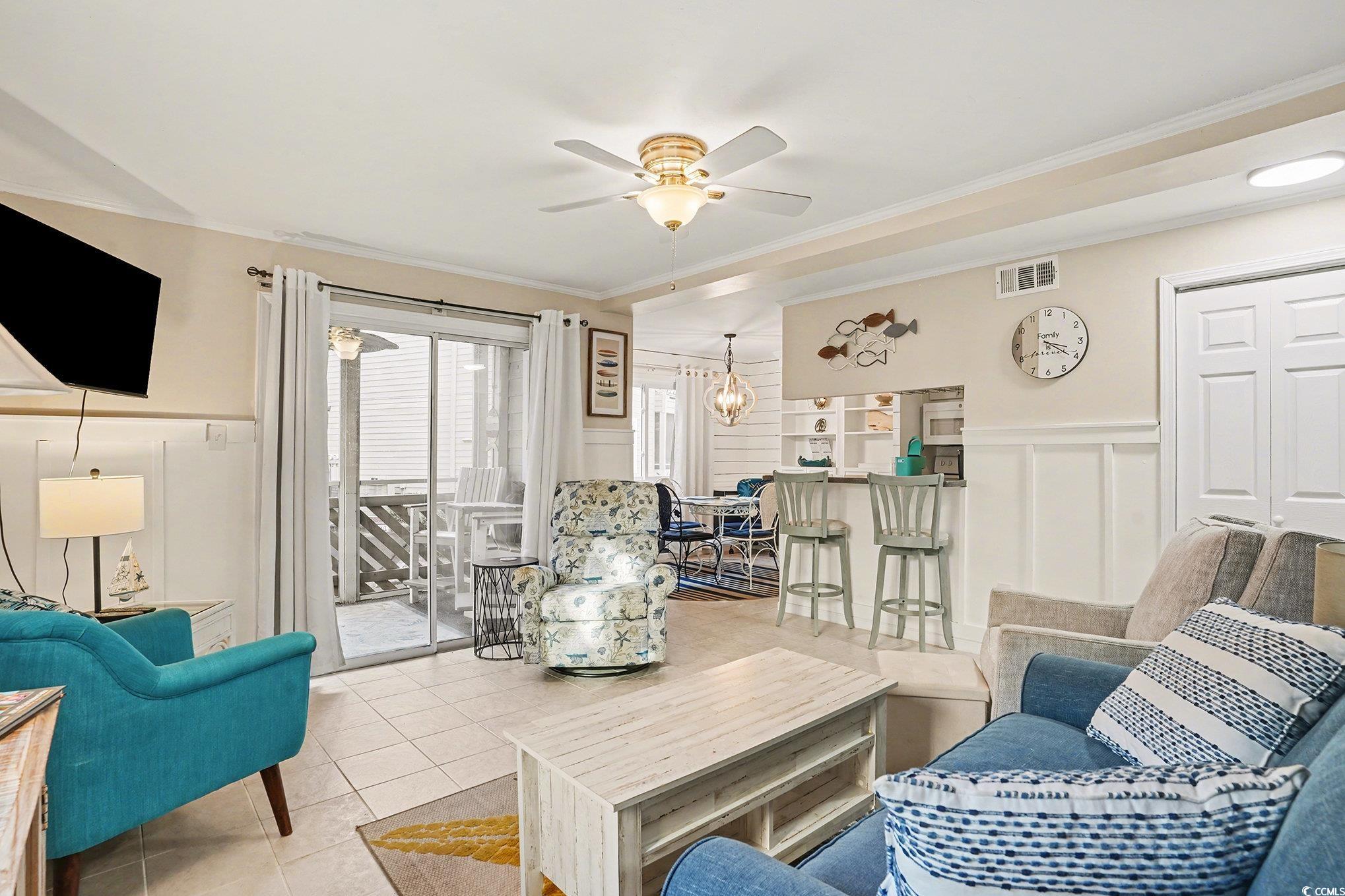 RARE updated FIRST FLOOR END UNIT filled with natural light and offers the ease of no stairs, along with a designated parking space conveniently located just outside the entrance along with the community pool. This second row 2 Bedroom 2 Bath condo is TURN KEY offered furnished including all Kitchen appliances and interior laundry room with stackable washer/dryer and extra storage. Recent updates and condo features include master bedroom furniture and décor, Living Room Sofa, bathroom renovations, newer appliances, keyless entry, and a 2023 HVAC air filtration system, and carbon-based water filters for Kitchen sink and refrigerator. Charming screened in porch to relax after a day at the beach or enjoy your morning coffee! Owners are permitted pets and golf carts following HOA guidelines. Waipani condo community is located second row from the 6th Avenue S. beach access in the Ocean Drive section of North Myrtle Beach with close proximity to Main Street for dining, shopping, and more! Whether seeking a vacation retreat as a second home or investment property or primary beach living, this is an opportunity you won’t want to miss. Schedule your showing today!