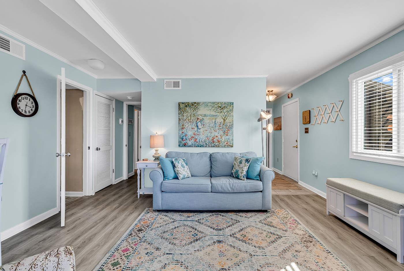 Welcome to this beautifully updated 2-bedroom, 2-bath condo in the highly desirable Waipani community, just steps from the beach in North Myrtle Beach. Located on the third floor, this well-maintained unit offers a bright and open layout with luxury vinyl plank flooring throughout and a fresh, modern feel from the moment you walk in. The kitchen features granite countertops, a new sink and faucet, and flows seamlessly into the main living area—perfect for everyday living or entertaining. Both bathrooms have been tastefully updated with new vanities and sinks, and the entire condo has been freshly painted with the popcorn ceilings removed, creating a clean, move-in-ready space. Additional upgrades include new windows and blinds, as well as a new washer and dryer, offering peace of mind and added convenience. Enjoy relaxing evenings on your private screened balcony, where you can take in beautiful sunset views—a perfect way to unwind after a day at the beach. As an added bonus, this property includes a Club gas powered golf cart, making trips to the beach, Main Street, and nearby dining and entertainment even more convenient and enjoyable. Whether you're looking for a primary residence, second home, or investment property, this condo checks all the boxes. Waipani offers a community pool and is ideally located close to shopping, restaurants, and all that North Myrtle Beach has to offer. Don’t miss your opportunity to own a turn-key beach getaway in one of North Myrtle Beach’s most convenient locations.