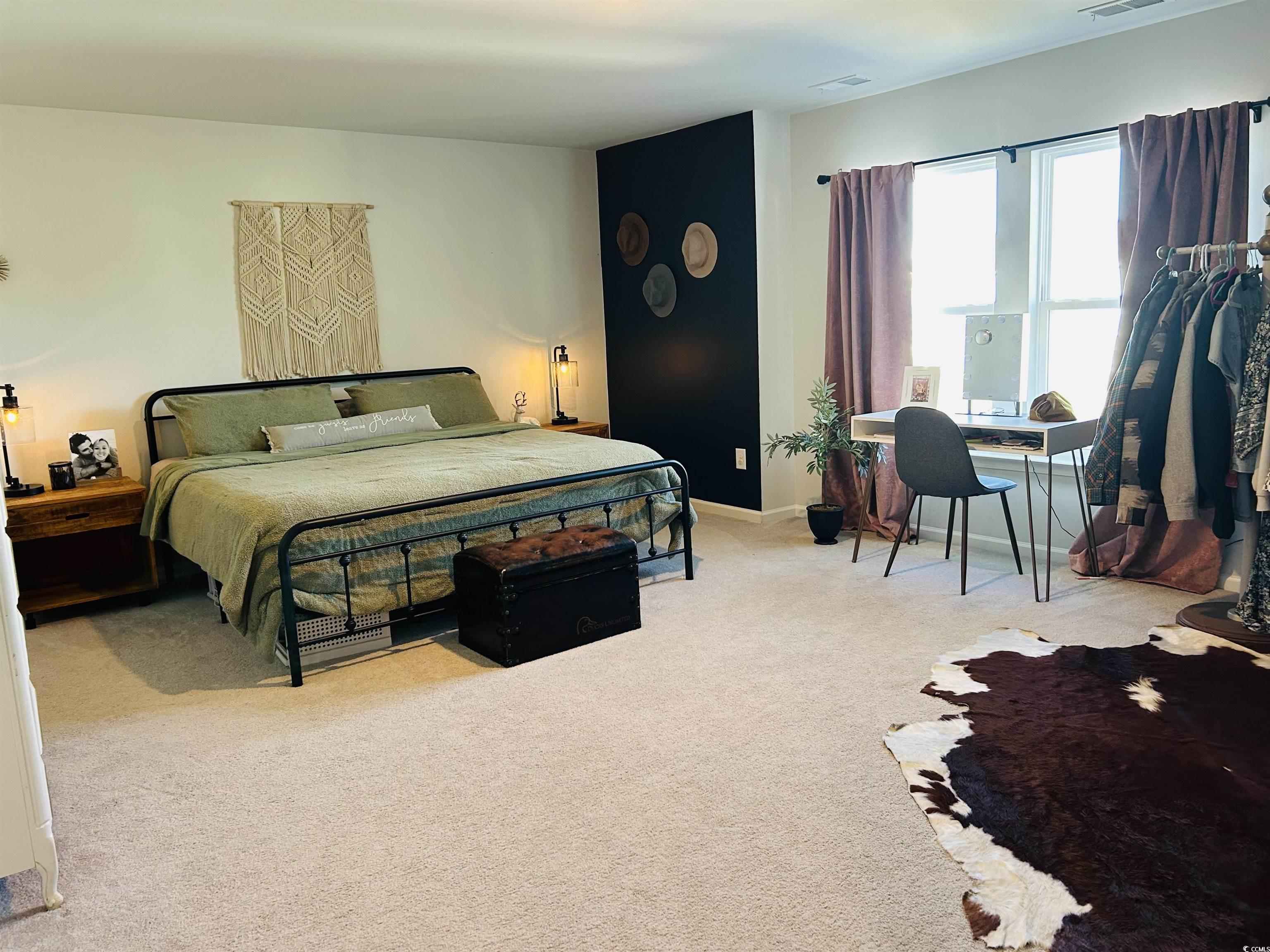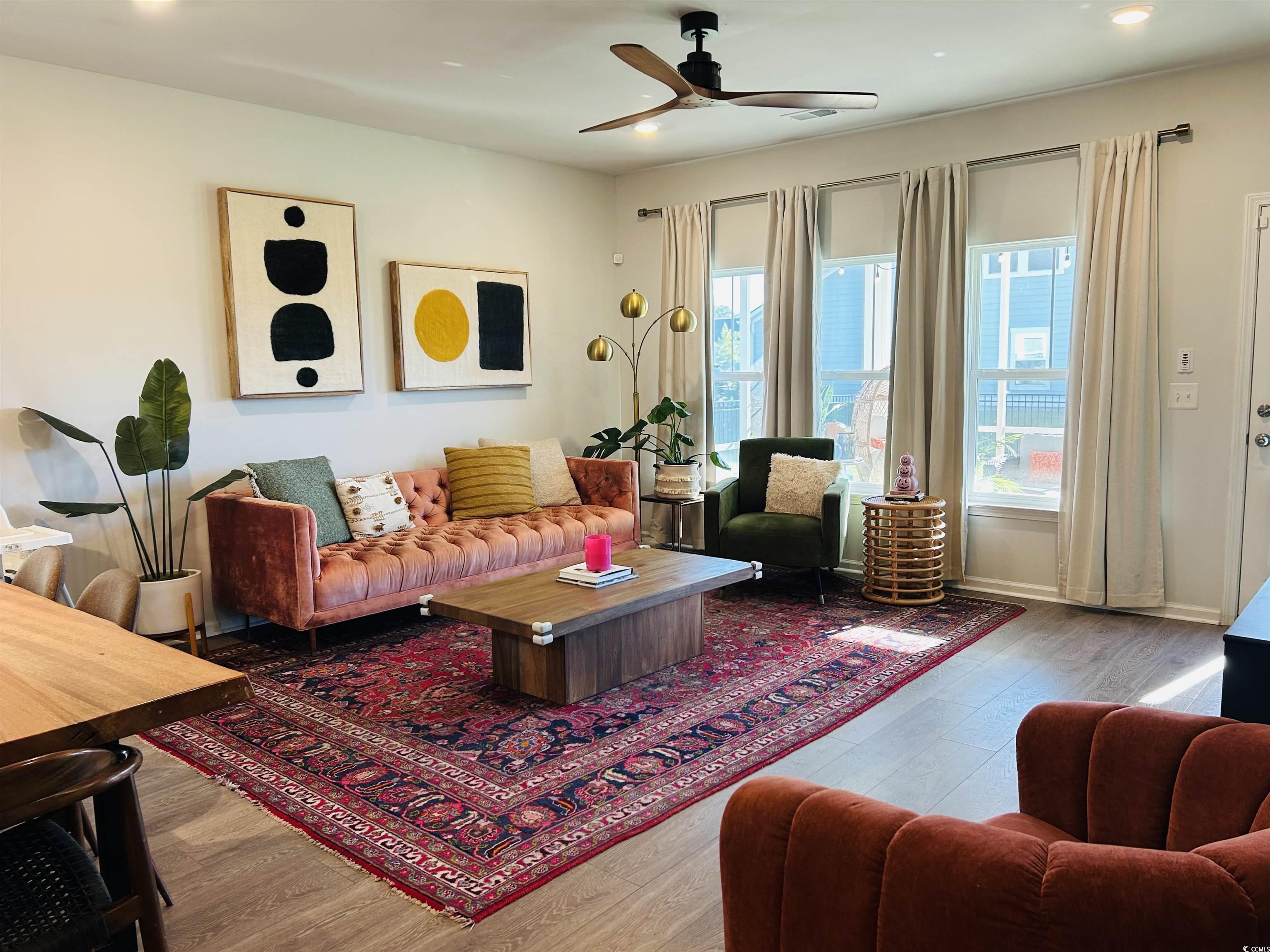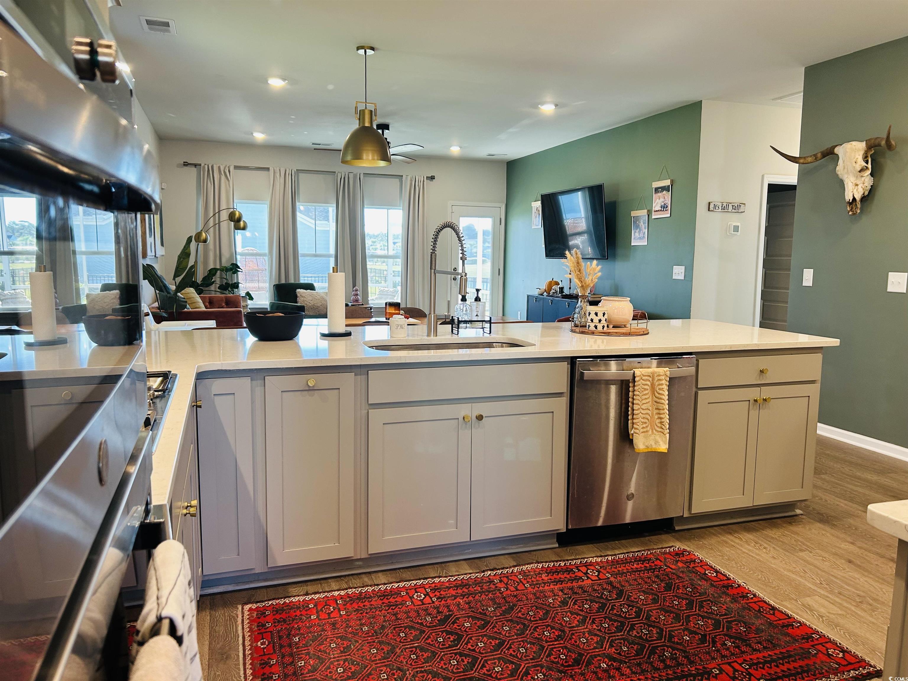Dream Family Home situated in the famous Pine Lakes Golf community, one of the most sought after neighborhoods to live in, close proximity to everything, and a golf cart ride to the beach! Enjoy resort amenities including, pickleball, swimming pool, playgrounds, sidewalks and pathways around the lakes and golf course perfect for walking and biking. This spacious 5-bedroom home offers the ideal blend of luxury, comfort and coastal living. Enjoy the peaceful pond view from your large screened in porch, a perfect place to unwind and entertain and even more outdoor space in your fenced in back yard. The home features two large primary suites, one on each floor. One of the upstairs bedrooms boasts a beautiful, covered balcony. That room could also make a great office area. If you like to cook, you will love the gas cooktop and large counterspace for prepping and spacious breakfast bar area. You will enjoy the open concept floorplan, perfect for easy living. This home won't last long!! Schedule your showing!