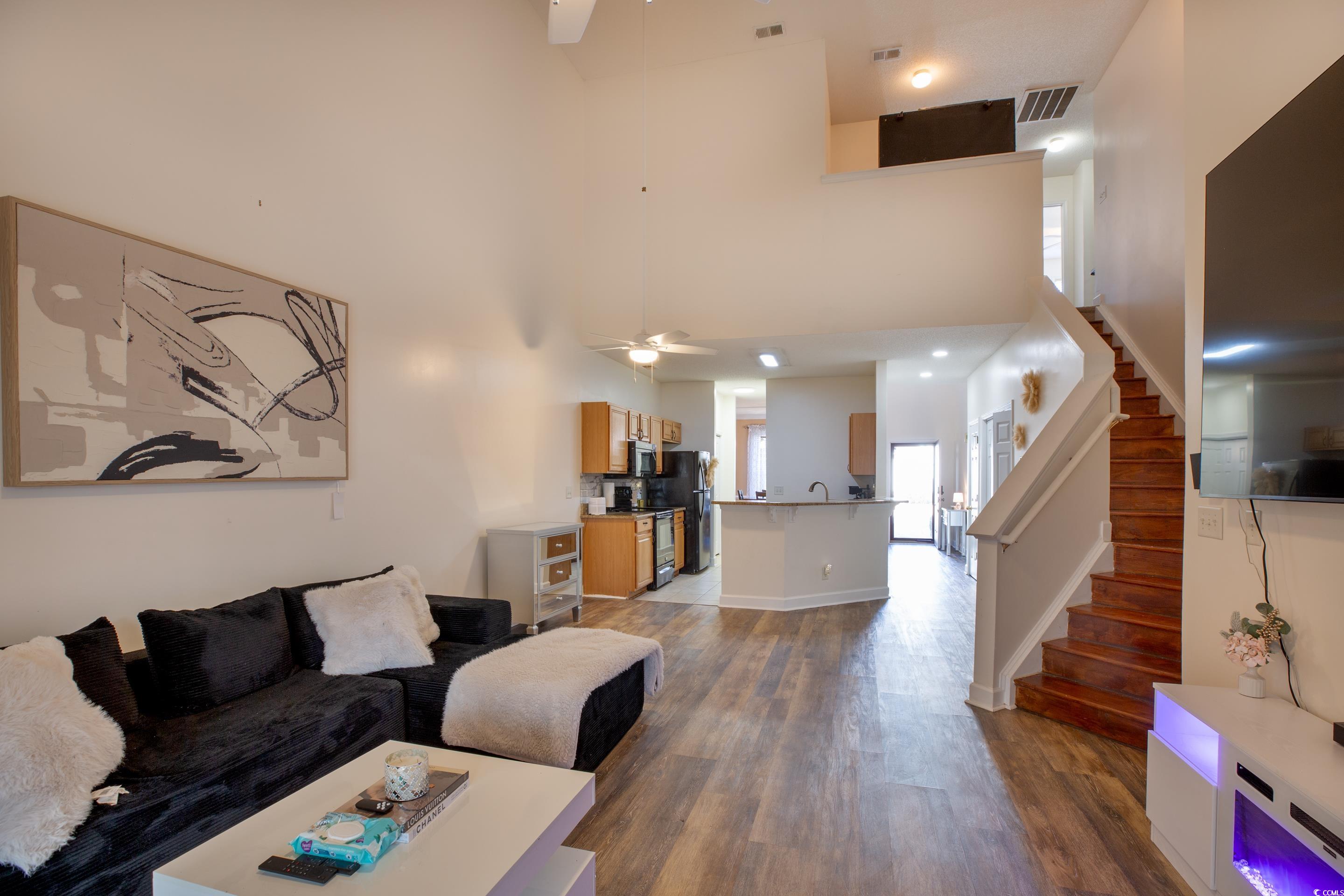 This incredible master down floorplan on the golf course in famous Barefoot Landing boasts 4 bedrooms, 1 non-conforming due to no closet, features a carolina room, 2 story foyer, formal dining room, powder room, large upgraded kitchen with granite and huge great room with vaulted soaring ceiling. Large master suite with vaulted ceiling, lg walk in closet, glamour bath with tiled floor, walk in shower and linen closet. All rooms have ceiling fans. Kitchen features include tiled backsplash, pantry, smooth top stove, and stylish inset sink. bedroom 3 has walki-n closet. LVP flooring installed in 2022. All neutral colors, 2" blinds and finished garage. Barefoot Beach Cabana and Harbour front pool included in HOA!
