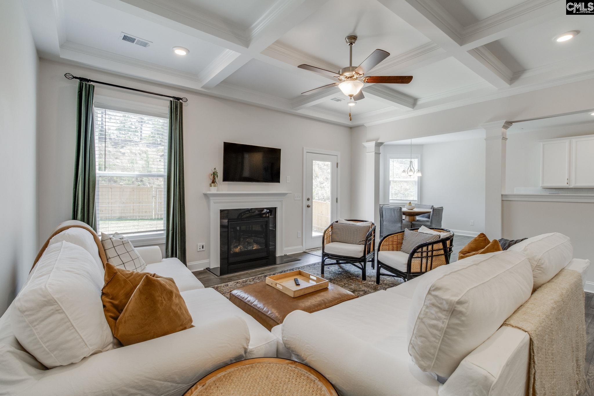 Discover one of the larger and more versatile floor plans in the desirable Kelsney Ridge community—this 2023-built, 5-bedroom, 3-bath home offers 3,445 heated square feet designed for both everyday living and flexible use.The main level features an open-concept layout with coffered ceilings, durable luxury vinyl plank flooring, a gas log fireplace, and abundant natural light—creating a cohesive space ideal for gathering and entertaining. The kitchen is thoughtfully designed with granite countertops, tiled backsplash, ample cabinetry, pantry storage, and a casual eat-in area that flows seamlessly into the main living space.A standout feature of this home is the dedicated media room, with its 120” screen and custom fitted sectional included, it is perfect for movie nights. Generously sized secondary bedrooms and a well-placed laundry area enhance the home’s functional layout.The primary suite serves as a private retreat with a spacious walk-in closet, double vanity, garden tub, and separate shower.Situated on approximately 0.36 acres—larger than many newer construction lots—the property provides usable outdoor space with the added benefit of a brand new 6-foot wood privacy fence, creating a secure and defined backyard ideal for pets, play, or entertaining. Your land extends into the woods behind the fence, meaning there will never be backyard neighbors.Located in Kelsney Ridge, this home offers convenient access to major employment centers, including Fort Jackson and Shaw Air Force Base, making it a strong option for military and civilian buyers seeking both space and accessibility. Shopping, dining, and Columbia-area amenities are also within easy reach.With its combination of size, layout flexibility, lot value, and strategic location, this home presents a compelling opportunity in today’s market. Schedule your showing today. Disclaimer: CMLS has not reviewed and, therefore, does not endorse vendors who may appear in listings.