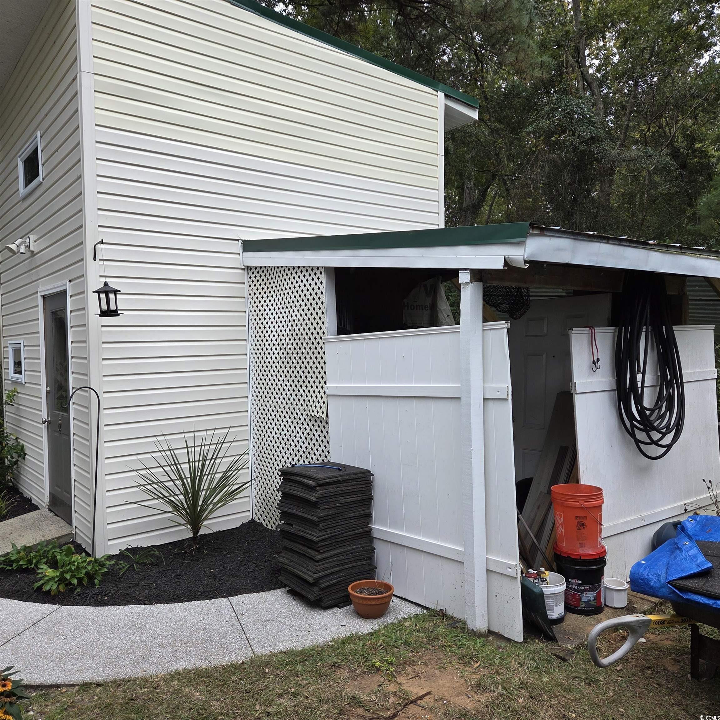 This 3 Bedroom, 2 Bath well loved energy star home is located in the sought after 55+ Inlet Oaks Community. Pool, active clubhouse & storage for boats, trailers & RVs available to residents. The moment you pull into the driveway you will fall in love. Owner has a huge covered deck and walkway with beautiful landscape that leads to a 2 story large storage/workshop space that is insulated with electric and is 12x12 along with the 9x9 lean to. The front side covered porch is 12x28.5 that is half screened with a deck fire pit and some of the furniture to convey as well as the TV and party lights, porch fan where you will enjoy spending time relaxing with family & friends. Inside this lovely home you will find a formal dining area with dining hutch that conveys plus a spacious eat in kitchen with a center island, recessed lights, pull outs in the cabinetry, pantry, apron sink, fan, plantation shutters, microwave, range, new dishwasher, refrigerator. Just off the kitchen is a laundry room that includes washer/dryer, cabinets & door to rear exterior. The spacious master suite has a walk in closet & master bath has a double vanity, glass enclosed shower, linen closet. Two additional bedrooms and guest bath are on the other side of the home and give privacy to the master suite. The large living room has an electric fireplace with a 60" flatscreen TV with soundbar that will convey and doors that lead to a 28 x 10 enclosed all seasons porch that adds additional space to this large home. Seller also replaced the heating & air March 2022 Roof was replaced in 2022. Refrigerator was replaced in December 2025. There are 3 fishing ponds in this park. Located on Dead End Street. Brookgreen Gardens, oceanfront Huntington Beach State Park, Murrells Inlet Marsh Walk and Pawleys Island is just a short distance away. Just outside the back door of your property you border Brookgreen Gardens and out your front door you will enjoy views of a tranquil lake. You could not ask for better neighbors! Do not hesitate call today to schedule an appointment to see this home. Square footage is approximate and not guaranteed. Buyer is responsible for verification.
