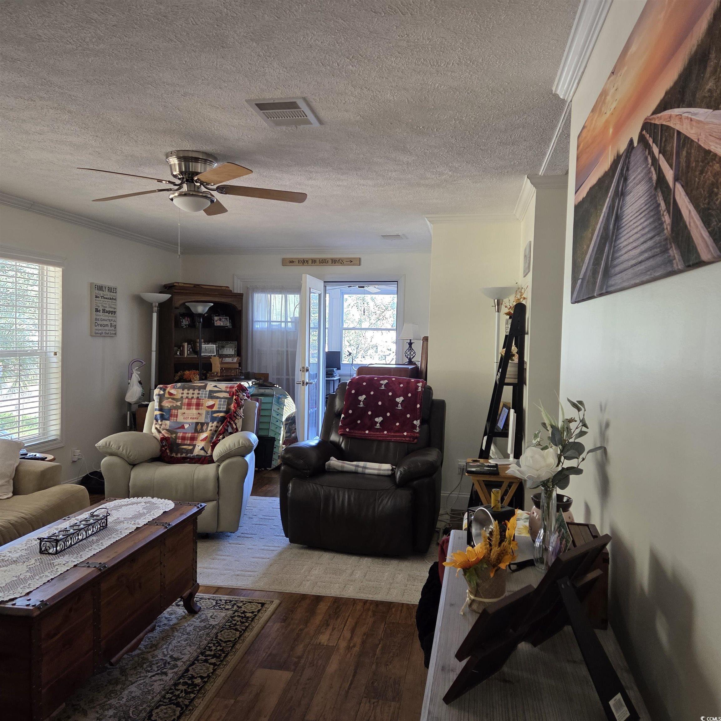 This 3 Bedroom, 2 Bath well loved energy star home is located in the sought after 55+ Inlet Oaks Community. Pool, active clubhouse & storage for boats, trailers & RVs available to residents. The moment you pull into the driveway you will fall in love. Owner has a huge covered deck and walkway with beautiful landscape that leads to a 2 story large storage/workshop space that is insulated with electric and is 12x12 along with the 9x9 lean to. The front side covered porch is 12x28.5 that is half screened with a deck fire pit and some of the furniture to convey as well as the TV and party lights, porch fan where you will enjoy spending time relaxing with family & friends. Inside this lovely home you will find a formal dining area with dining hutch that conveys plus a spacious eat in kitchen with a center island, recessed lights, pull outs in the cabinetry, pantry, apron sink, fan, plantation shutters, microwave, range, new dishwasher, refrigerator. Just off the kitchen is a laundry room that includes washer/dryer, cabinets & door to rear exterior. The spacious master suite has a walk in closet & master bath has a double vanity, glass enclosed shower, linen closet. Two additional bedrooms and guest bath are on the other side of the home and give privacy to the master suite. The large living room has an electric fireplace with a 60" flatscreen TV with soundbar that will convey and doors that lead to a 28 x 10 enclosed all seasons porch that adds additional space to this large home. Seller also replaced the heating & air March 2022 Roof was replaced in 2022. Refrigerator was replaced in December 2025. Golf Cart also Conveys. There are 3 fishing ponds in this park. Located on Dead End Street. Brookgreen Gardens, oceanfront Huntington Beach State Park, Murrells Inlet Marsh Walk and Pawleys Island is just a short distance away. Just outside the back door of your property you border Brookgreen Gardens and out your front door you will enjoy views of a tranquil lake. You could not ask for better neighbors! Golf Cart to Convey. Do not hesitate call today to schedule an appointment to see this home. Square footage is approximate and not guaranteed. Buyer is responsible for verification.