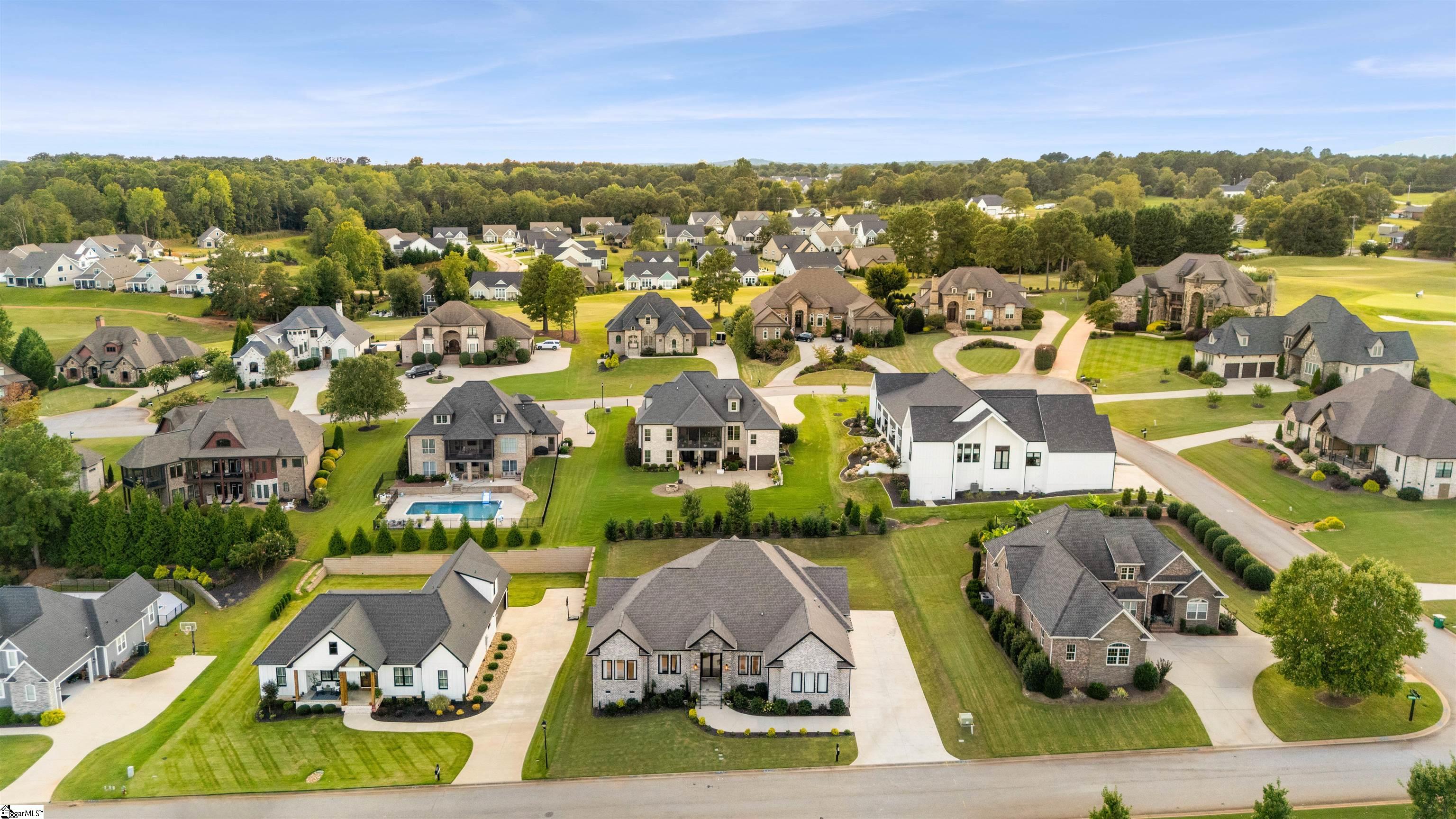 Welcome to The Creeks at Woodfin Ridge, a prestigious gated golf community. Imagine mornings that begin with tee-time, afternoons cooling off at the community pool, and evenings playing friendly matches on the tennis courts before settling in to watch drop-dead gorgeous sunsets. Step inside the double front doors to find a soaring 12-foot ceiling foyer with a custom oak drop zone and mudroom storage. The office, framed by elegant glass dual doors, doubles as a perfect flex space. The great room blends warmth and elegance with a natural stone gas fireplace pre-wired for TV, custom oak built-in library shelving with concealed internet connection, and European tilt-swing windows. Ignite your culinary passions in this grandiose kitchen with an 8-burner Forno gas range/double oven, accented by a pot filler, XL hood, built-in microwave, beverage refrigerator all centered around a show-stopping 5x10 oak island. Custom 11-foot stacked cabinetry with dimmable lighting, marble backsplash, quartz counters, and a window view above the sink elevates the space even further. This single-level residence impresses with a comfortable 3 bedrooms plus an office and 2.5 bathrooms layout. The owner’s suite is a private retreat featuring a custom walk-in closet system, a spa-inspired bathroom with a free-standing soaking tub, a dual-swing XL shower with 4-jet system, and handcrafted oak vanity with linen cabinetry. Every secondary bedroom includes built-in closets, 10-foot ceilings, 8-foot doors and generous windows that bathe the rooms in natural light. Outdoors, luxury continues to the back covered patio, ready for an expansive outdoor gas kitchen and designed for evenings under the stars. The professionally landscaped low maintenance yard has a 5+ zone irrigation system keeping the backyard fresh and green. This residence stands as a testament to enduring quality. Just minutes away, Lake Bowen awaits, inviting you to embrace true lake life. This home is the backdrop to your extraordinary story, where every detail whispers luxury and every day unfolds a life well-lived at The Creeks.
