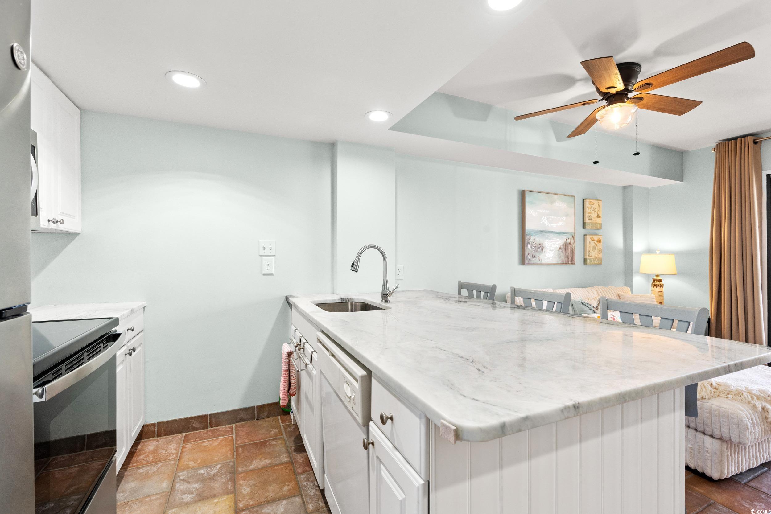 EASY TO SHOW!!!!!!!!! Enjoy stunning ocean views from this updated 1-bed, 1-bath direct oceanfront condo in Sea Pointe, Cherry Grove. Located on the first floor, it features granite countertops, white cabinets, tiled backsplash, smooth ceilings, hurricane shutters, and in-unit washer/dryer. The bathroom has a new Bath Fitter tub/shower combo. Private balcony with storage closet—great for beach gear. Sea Pointe is a solid, well-maintained building with new elevators, no assessments, covered parking, indoor pool, and hot tub. Perfect as a primary home, vacation spot, or rental investment.