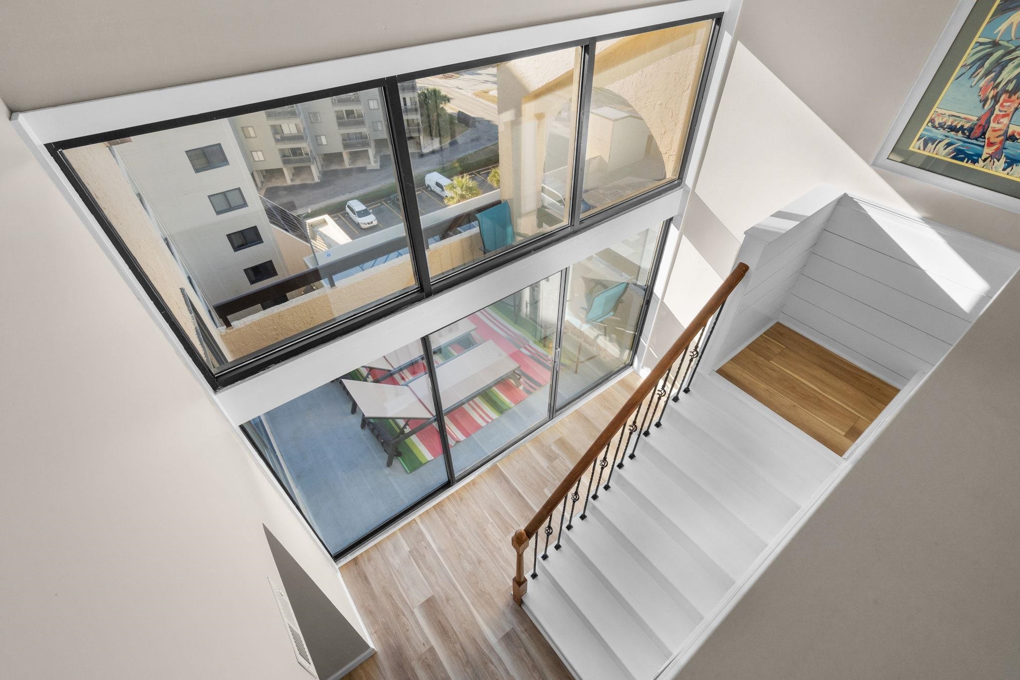 Rare opportunity in the Cherry Grove section of North Myrtle Beach. Perched on the top floor of the Sea Pointe building, this exceptional oceanfront residence offers a rare blend of space, privacy, and thoughtful craftsmanship seldom found along the Grand Strand. Spanning two stories, this five bedroom, four bath penthouse was extensively reimagined with long term comfort and quality in mind, creating a coastal home that lives more like a private residence than a typical condominium. One of the most striking features is the extraordinary outdoor living space. Three expansive terraces provide exceptional ocean and coastal views, with an impressive amount of outdoor space that is among the largest available in comparable oceanfront condos. These terraces create multiple settings for relaxing, entertaining, and enjoying the sights and sounds of the Atlantic. Inside, the unit underwent a substantial renovation that restructured portions of both levels to maximize usable living space, improve flow, and add valuable owner storage. The home is tastefully furnished with Amish built furniture and features a bright, neutral color palette complemented by abundant natural light. The remodeled and expanded kitchen showcases custom cabinetry, granite countertops, stainless steel appliances, and a layout designed for both everyday living and entertaining. All four bathrooms were updated with matching granite finishes, modern fixtures, and spacious walk in showers. The main living area is open and inviting, anchored by ocean views and a comfortable gathering space that flows seamlessly into the dining area and kitchen. A fireplace and dry bar enhance the living room, making it ideal for entertaining. The oceanfront primary suite on the main level serves as a true retreat, offering direct terrace access, generous closet space, and a beautifully finished en suite bath. An additional bedroom and full bath on the main level provide flexibility for guests or family. Upstairs, a loft leads to three additional bedrooms, two full baths, and ocean front terrace that captures stunning sunrises and coastal breezes. This upper terrace is outfitted with hammock chairs, creating a peaceful and private retreat above it all. Residents of Sea Pointe enjoy an indoor pool, hot tub, and the convenience of a parking garage. This location is just a short distance from the iconic Cherry Grove Point, where the inlet meets the ocean and locals and visitors alike gather to enjoy one of the most beloved spots on the Grand Strand. This oceanfront setting offers easy access to all that North Myrtle Beach has to offer, including Barefoot Landing, area golf courses, the House of Blues, and a wide variety of shopping and dining options. Major highways provide quick access to Myrtle Beach, Conway, and the entire South Strand, while medical facilities, grocery stores, and everyday conveniences are just a short drive away.