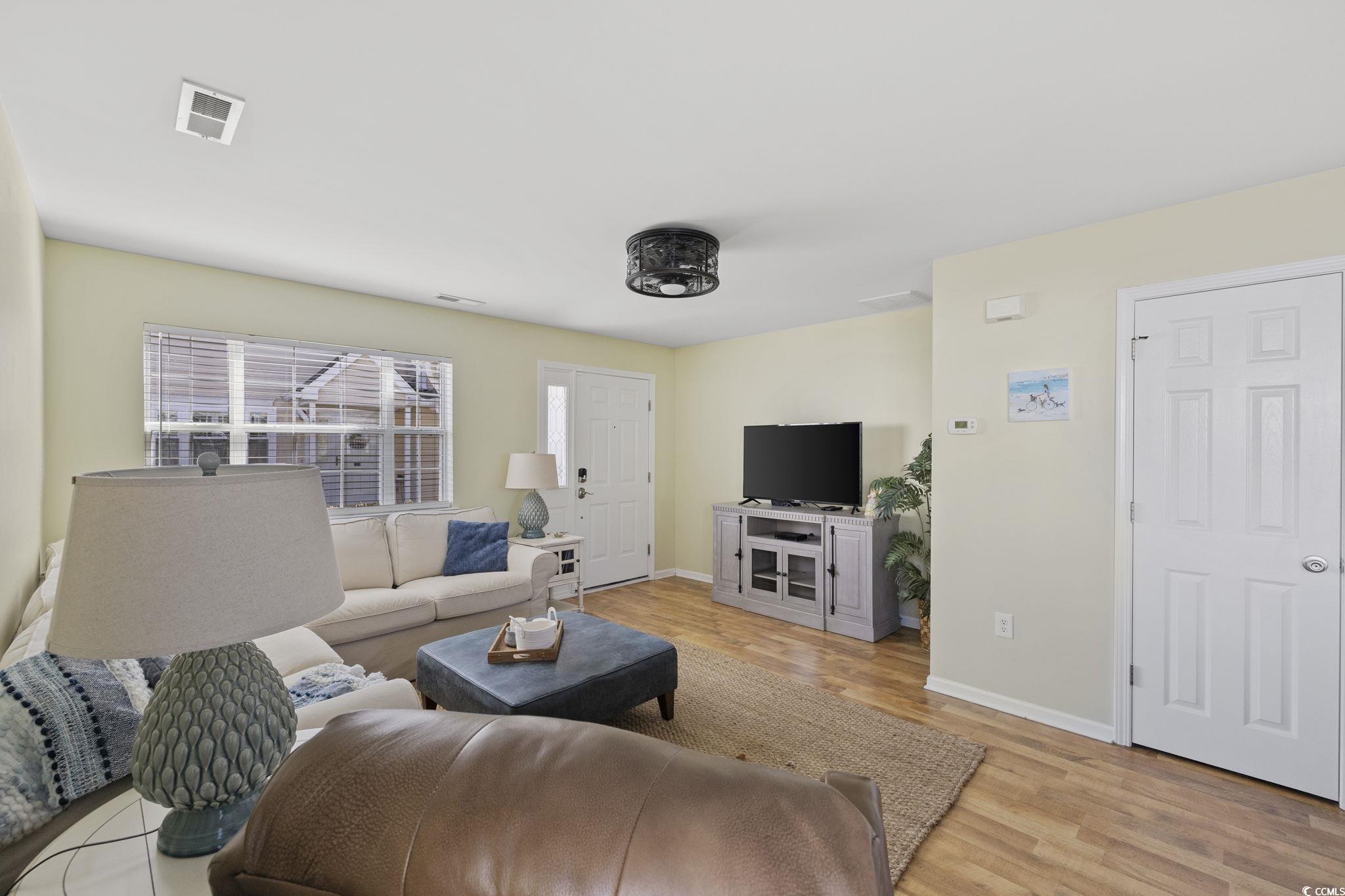 Step inside this beautifully decorated and fully furnished 2BR/2.5BA townhome style condo and be greeted by a bright and inviting living and dining room combo, perfect for relaxing or entertaining. The main level also features a convenient half bath and a well-appointed kitchen with stainless steel appliances, a stylish backsplash, and durable tile flooring. Upstairs, you'll find spacious bedrooms, each with its own ensuite bathroom, and the bedrooms have cozy carpet and ample closet space. A dedicated laundry closet with a washer and dryer adds extra convenience. Outside, enjoy the enclosed, fenced-in patio for privacy and extra outdoor storage. Located in the charming and quiet Sea Garden community, this home is just a short golf cart ride to the beach—and the golf cart is negotiable. With its LVP flooring in the living and dining areas, updated finishes, and prime location, this condo is perfect as a beach retreat or investment opportunity. Close to top-rated restaurants, entertainment, the Intracoastal Waterway, fishing, and golf, this is a must-see!