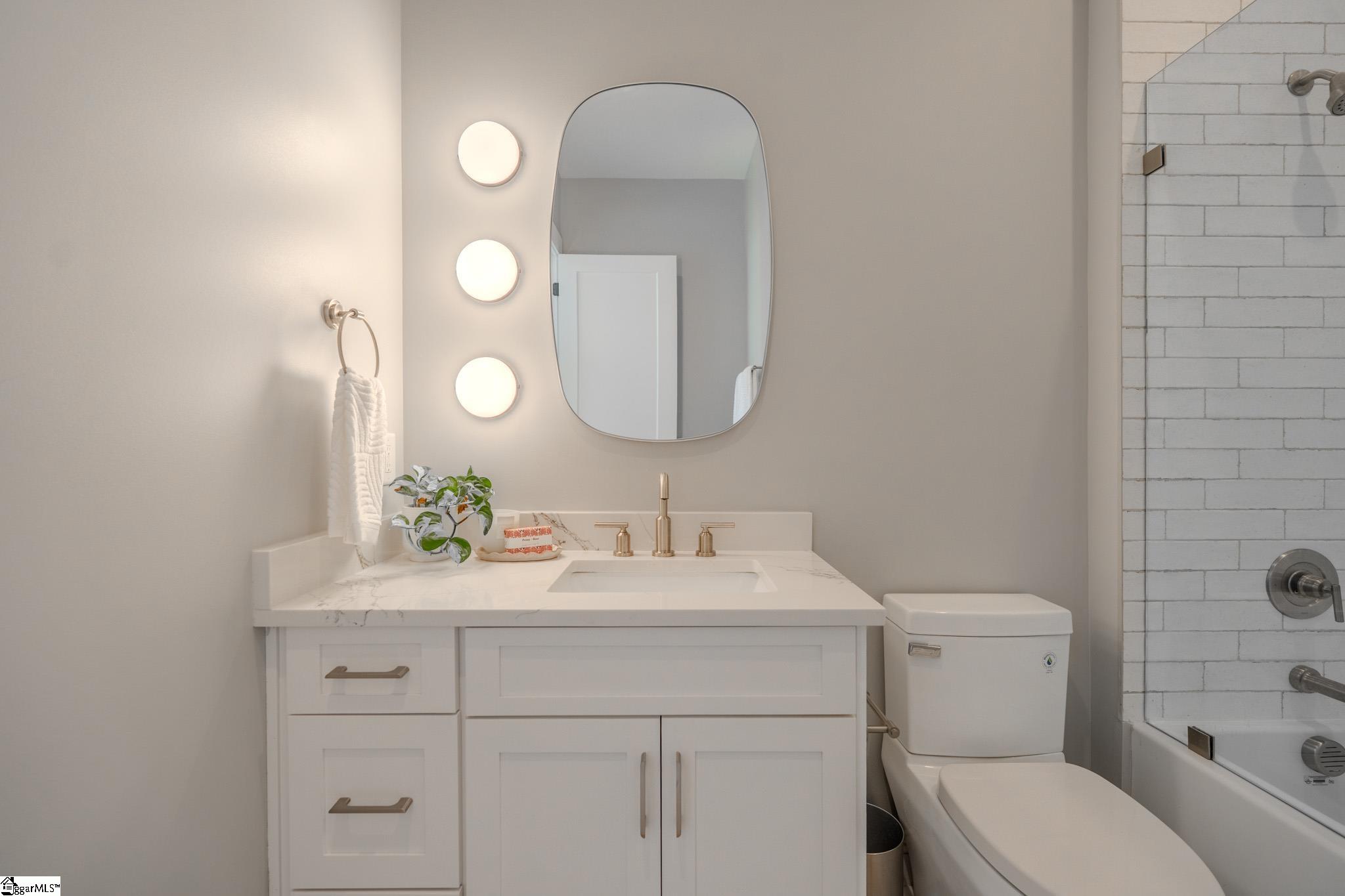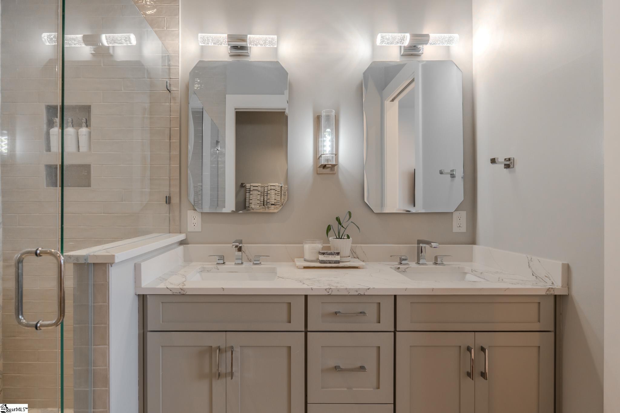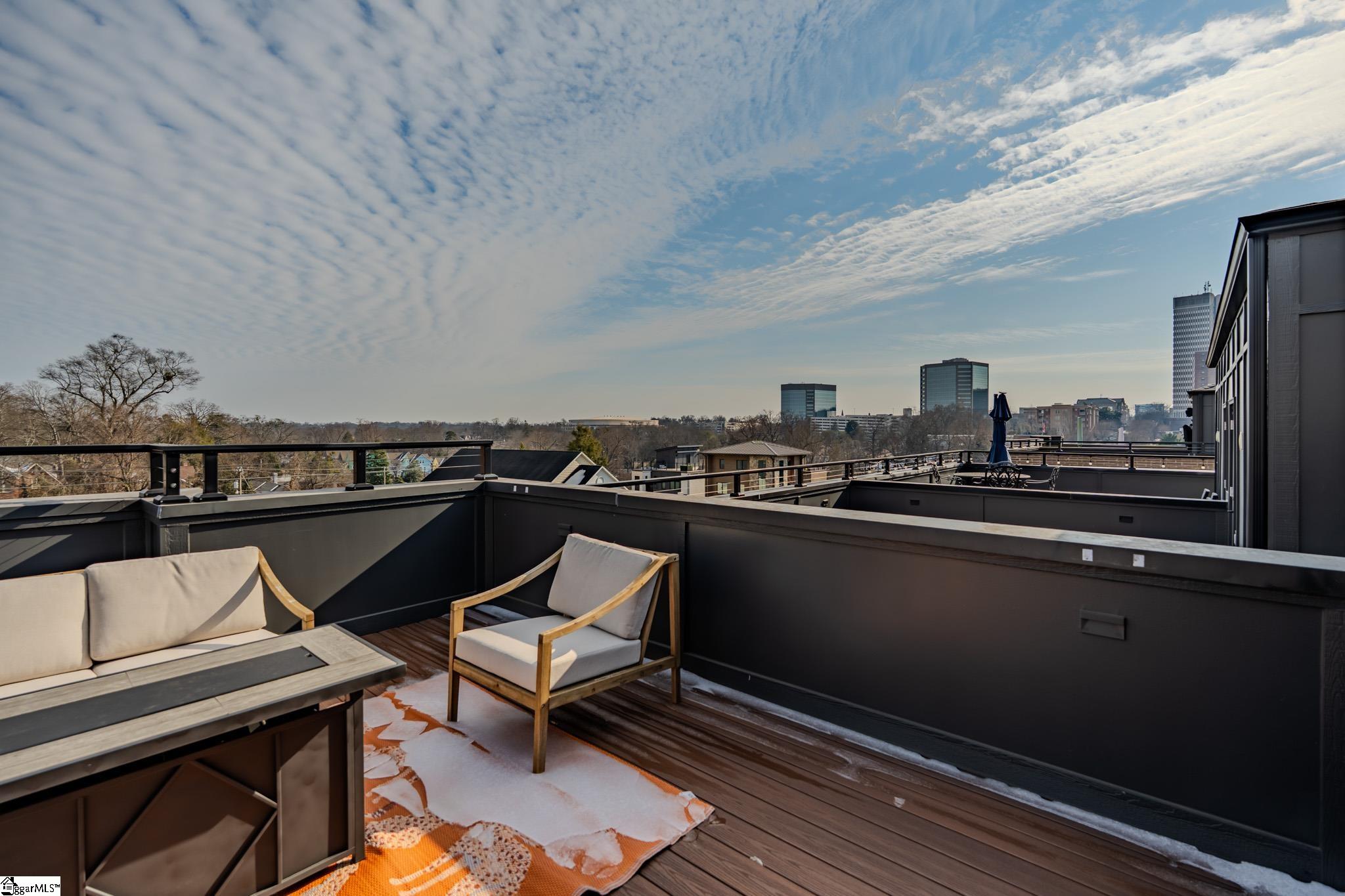 In a city celebrated for its walkability, culture, and architectural evolution, this four-story residence at NOMA City Terrace offers a distinctly elevated way to live Downtown Greenville. Tucked along North Main Street—just steps from Main Street’s shops and restaurants, McPherson Park, and the city’s most beloved gathering places—the home reads as both refined retreat and urban vantage point, with front-row access to Greenville’s present energy and future vision, including the newly re-imagined plans for the historic Bi-Lo site. Built in 2021, the townhome is vertical in form but intimate in feel. While the developer offered standard finish packages, the seller chose a different path—opting out entirely and commissioning a professional designer to fully custom curate the interiors. The result is a home that feels layered, intentional, and deeply considered, with a private elevator quietly stitching together four thoughtfully composed levels. Natural light pours through floor-to-ceiling windows, tracing hardwood floors and highlighting a palette that feels warm, modern, and timeless. The main living floor unfolds as a seamless composition of space and light. The gorgeous ventless floor-to-ceiling tile fireplace feature is the focal point of the living room, framed by custom shiplap built-ins designed for both beauty and function. The chef’s kitchen centers around an oversized statement island wrapped in shiplap and topped with Calacatta quartz, with a built-in Sharp microwave discreetly integrated into the island for a seamless look. A Bosch refrigerator and Bosch five-burner gas range with vent hood anchor the space, framed by herringbone tile, soft-close cabinetry, and brass hardware that reads warm rather than showy. The adjacent dining area feels architectural rather than utilitarian, elevated by extended cabinetry, floating shelves, and a ceramic tile feature wall that transforms everyday meals into occasions. Herringbone tile, soft-close cabinetry with brass hardware, and a full suite of Bosch appliances reinforce the home’s quiet luxury, while the adjacent dining area feels architectural rather than utilitarian, elevated by extended cabinetry, floating shelves, and a ceramic tile feature wall that transforms everyday meals into occasions. Above, private quarters are serene and well considered. The primary suite is calm and spa-like, with a floor-to-ceiling designer tile glass-enclosed shower, chrome accents, double vanity with elegant sconce fixtures, and additional built-in storage conveniently integrated for linens. Secondary accommodations offer the same generous space, full-length windows, and quality of finish and en-suite privacy, complemented by tailored closet solutions. Laundry is discreetly placed on the bedroom level, reinforcing the home’s effortless livability. At the top, the city opens up. The rooftop terrace spans wide and high, capturing sweeping 360-degree views of downtown Greenville—a rare perspective that reshapes mornings, evenings, and gatherings alike. A built-in wet bar ensures the space is as functional as it is memorable, while the scale of the terrace invites both lively entertaining and quiet reflection above the city. With direct Main Street access, a private two-car tandem garage, and HOA-managed exterior maintenance, the home offers a true lock-and-leave lifestyle without compromise. This is urban living refined—architecturally grounded, professionally curated, and positioned at the intersection of privacy, design, and downtown Greenville’s continued evolution.