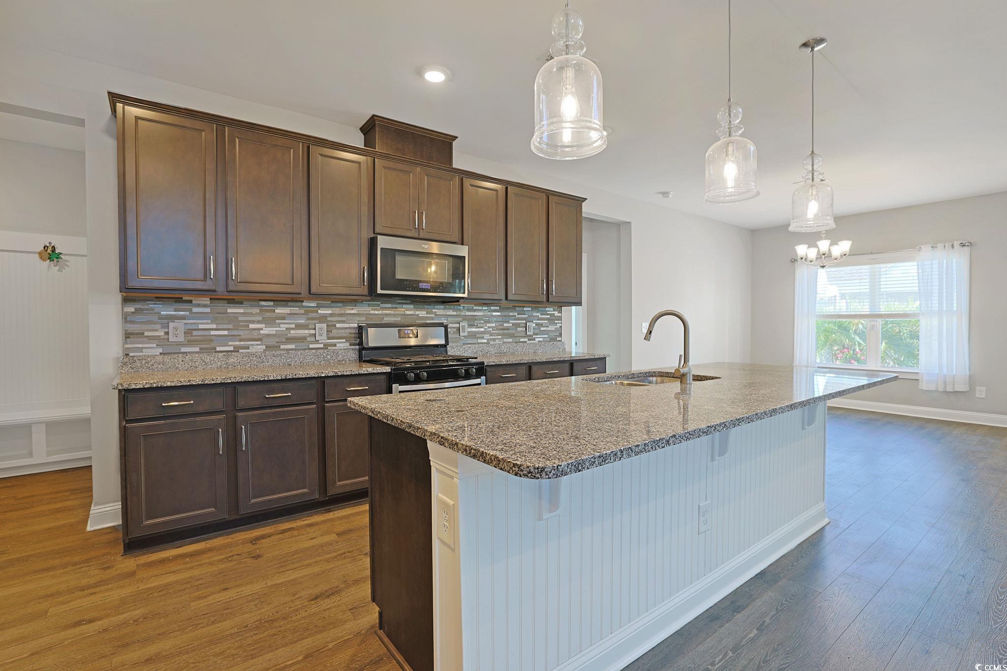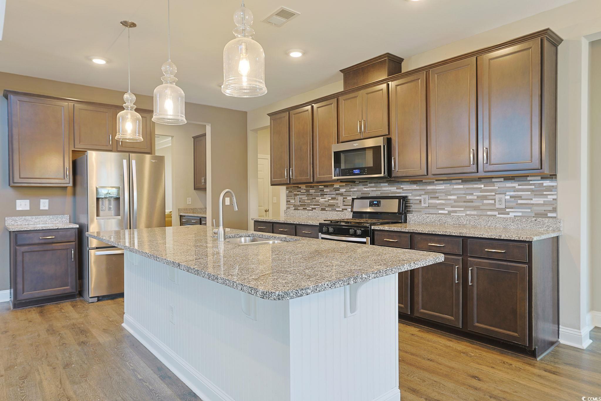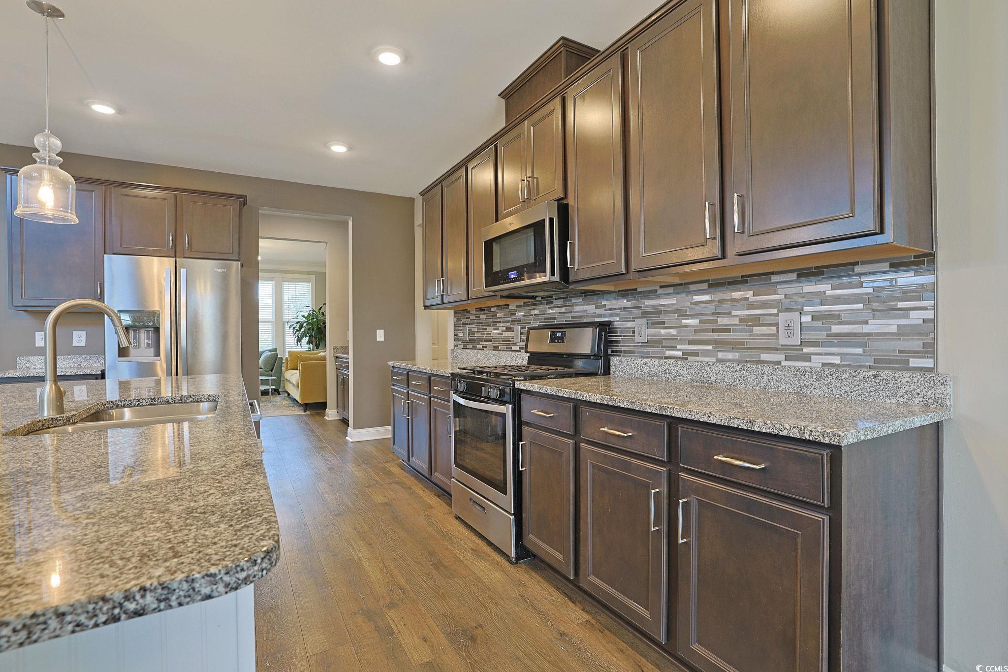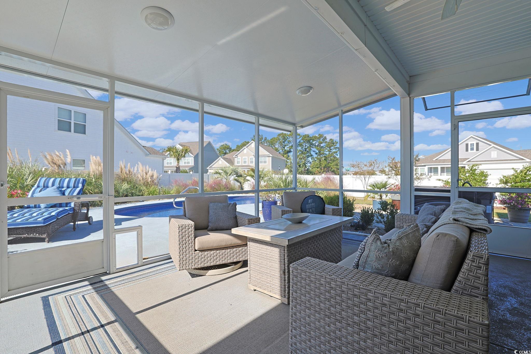 Gather your family & friends in this exquisite 5 bedroom 4 bath custom built home located in the prestigious Belle Mar community. This home showcases a sparkling in-ground pool with heating & cooling controls, surrounded by an oasis style pool deck. As you enter this magnificent home you take notice of the wood look LVP, tile, & carpet flooring, smooth flat ceilings with crown moulding, elegant wainscotting, a graceful formal dining room with a butlers pantry, and a grand two story living room. Prepare a fresh meal in the gourmet kitchen that offers granite counter tops, a kitchen island with a breakfast bar, stainless steel appliance package with a gas top range, ample cabinet spaces, a large walk-in pantry, and a delightful breakfast nook with access to the peaceful screen-in back porch with pool views. The main floor primary suite offers a shiplap wall, ceiling fan, a bump out with memorable pool views, double door access to the primary private bath hosting a vanity with dual sinks, a water closet, a deluxe tile step-in shower, and his & hers spacious walk-in closets. As you venture upstairs you will find a 2nd master suite hosting private access to the en-suite bath with a single sink vanity, a comfort station, a classic tub/shower combo, and a walk-in closet. The upstairs is completed with two additional bedrooms, a full guest bath, a fitness center, and a versatile bonus room. This vibrant home is finished with an ideal laundry room with cabinets and a folding top, a practical built-in hall tree, fenced back yard, and a two car attached garage with poxy flooring. This home affords you easy access to the beach and golfing along with all of the other activities and happenings in Myrtle Beach including fun eateries, award winning off-Broadway shows, public fishing piers, and intriguing shopping adventures along the Grand Strand. Conveniently located to your everyday needs, including grocery stores, banks, post offices, medical centers, doctors’ offices, and pharmacies. Check out our state of the art 3-D Virtual Tour. Some photos in this listing have been virtually staged.