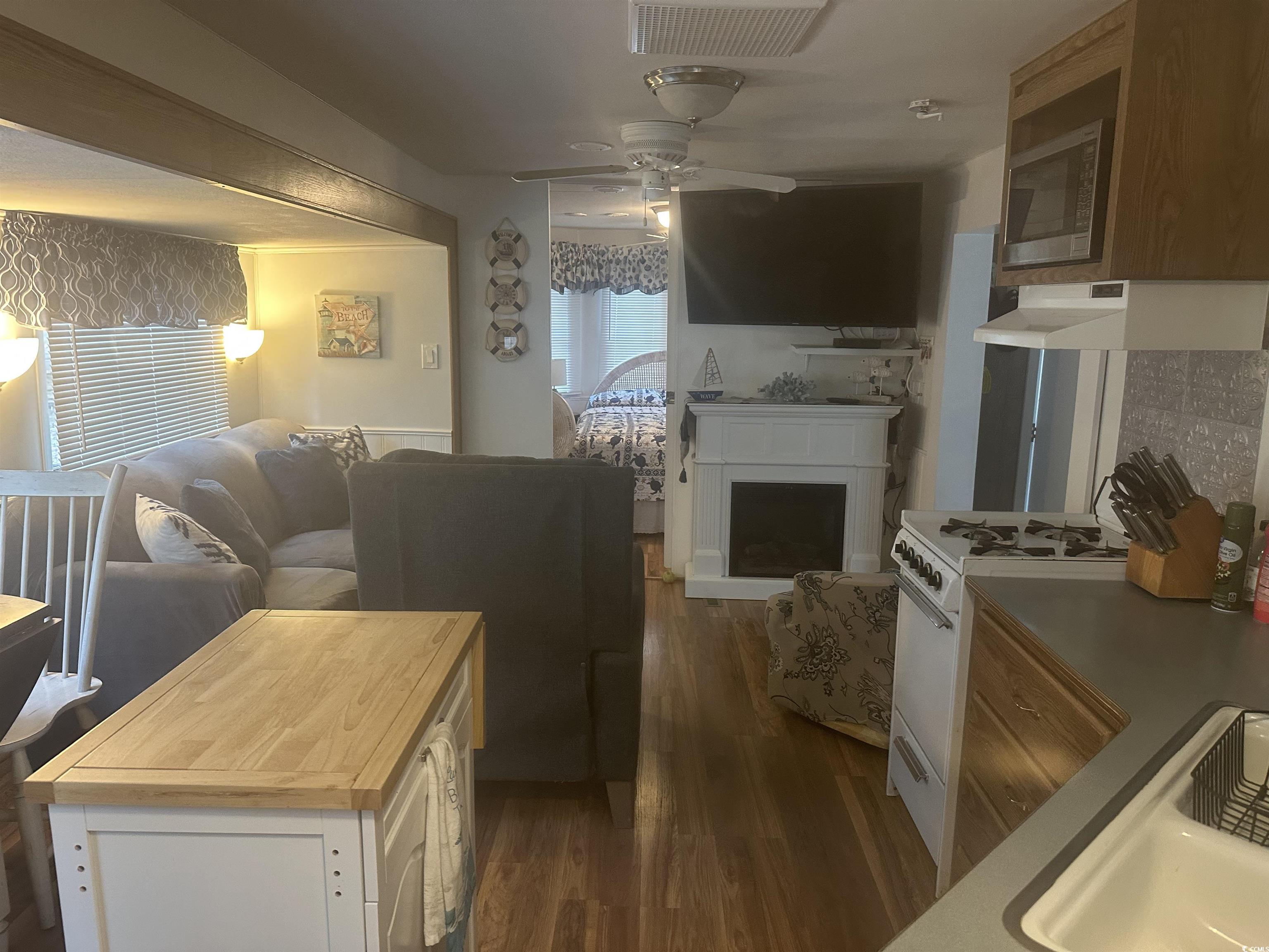 This fully furnished 2-bedroom, 1-bath park model manufactured home is located in the KOA Resort’s 55+ permanent resident area in Myrtle Beach, SC. The home features an added bonus room, a covered porch, and a dedicated laundry room with a washer and gas dryer that stay with the property. All furniture and accessories are included, making this a turnkey opportunity for anyone looking to settle into a relaxed coastal lifestyle. Outside, you'll find a beautifully fenced-in astroturf yard with a concrete block patio, a storage shed, and a grill—all of which are included in the sale. The property sits on leased land with the lowest campground lot lease in the area and has no HOA fees. It’s just a short golf cart ride to the beach, Broadway at the Beach, Market Commons, and only five minutes from Myrtle Beach International Airport. Residents of the KOA Resort enjoy a wide range of amenities including a swimming pool, splash pad, jump pad, fishing pond, playground, on-site store, laundromat, and worm train rides for kids. The community also offers planned activities for snowbirds, making it an ideal location for seasonal or year-round