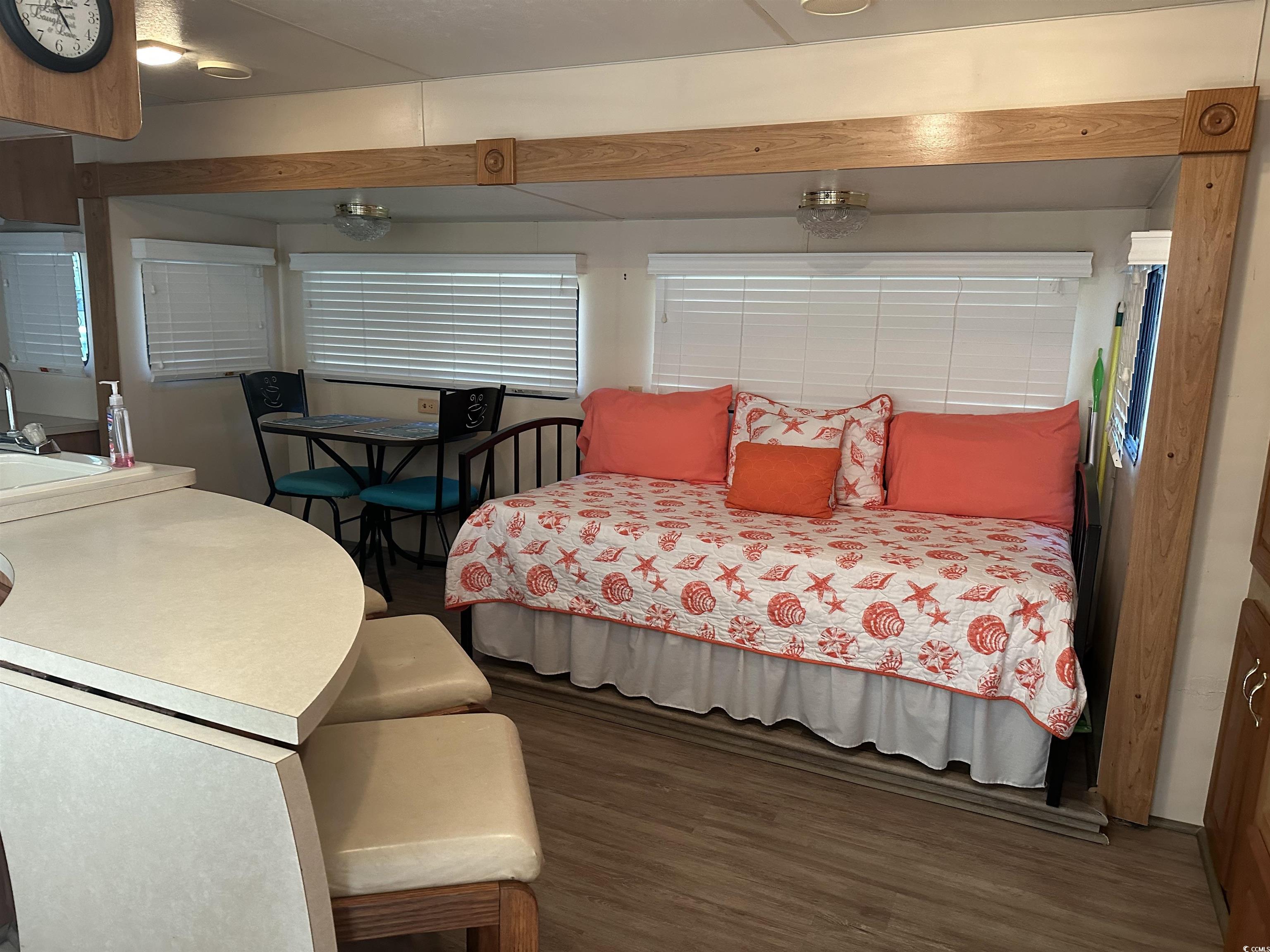 This fully furnished 2-bedroom, 1-bath camper with a Carolina Room addition that is located across the street from beautiful park area in the KOA Resort’s 55+ permanent resident area in Myrtle Beach, SC. All furniture, washer and dryer, brand new refrigerator and accessories are included, making this a turnkey opportunity for anyone looking to settle into a relaxed coastal lifestyle. Outside, you'll find a nice sized brick patio area with plenty of parking and two outside storage buildings. The property sits on leased land with the lowest campground lot lease in the area and has no HOA fees. It’s just a short golf cart ride to the beach, Broadway at the Beach, Market Commons, and only five minutes from Myrtle Beach International Airport. Residents of the KOA Resort enjoy a wide range of amenities including a swimming pool, splash pad, jump pad, fishing pond, playground, on-site store, laundromat, and worm train rides for kids. The community also offers planned activities for snowbirds, making it an ideal location for seasonal or year-round
