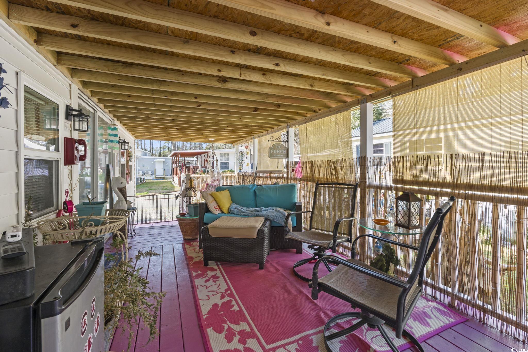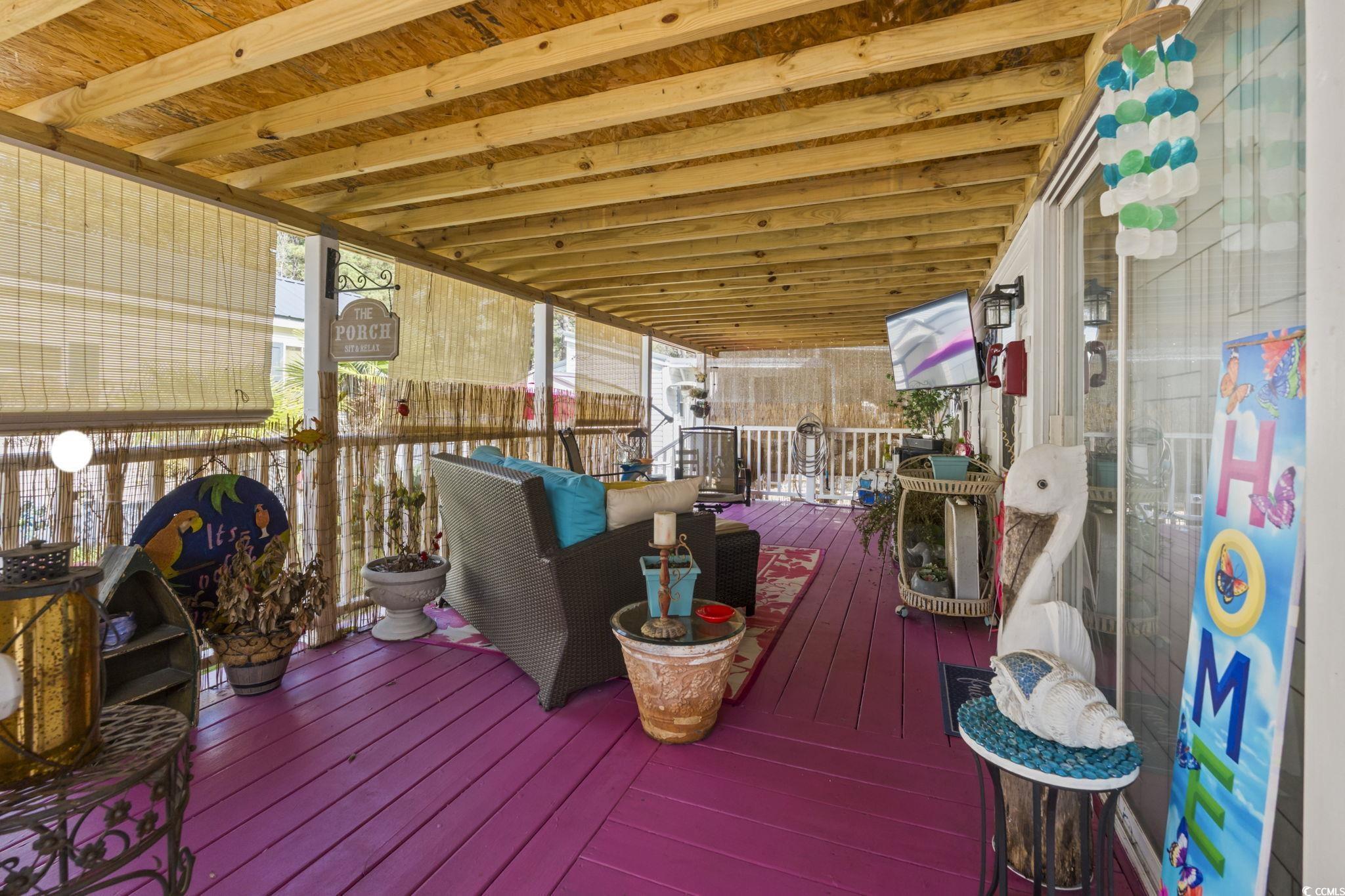 OPEN HOUSE- 2/14 - Come fall in love on Valentine's Day! Meticulously maintained and truly turn-key, this charming 2BR/1BA park home with an expansive front porch sits in the Residential 55+ section of the Myrtle Beach KOA. Offering a quiet, residential vibe right in the heart of it all. Pack your bags and start enjoying resort-style amenities: a sparkling swimming pool, stocked fishing pond, cornhole, seasonal live entertainment, winter snowbird activities, and easy beach access by foot or golf cart. The community welcomes electric/gas golf carts and the campground is famously friendly with a jump pad, water works, and whimsical worm-train rides for visiting family. Inside, the home shines with thoughtful care and easy livability—perfect for a year-round residence or a seasonal coastal escape. Step outside to the wide porch to savor morning coffee and ocean breezes, then head out to everything Myrtle Beach offers just minutes away: Market Common, Broadway at the Beach, Family Kingdom, Coastal Grand Mall, the airport, and—of course—the beach. Come see what set this home apart and why Lot 619 Port Trail is the one to count on for low-maintenance coastal living.