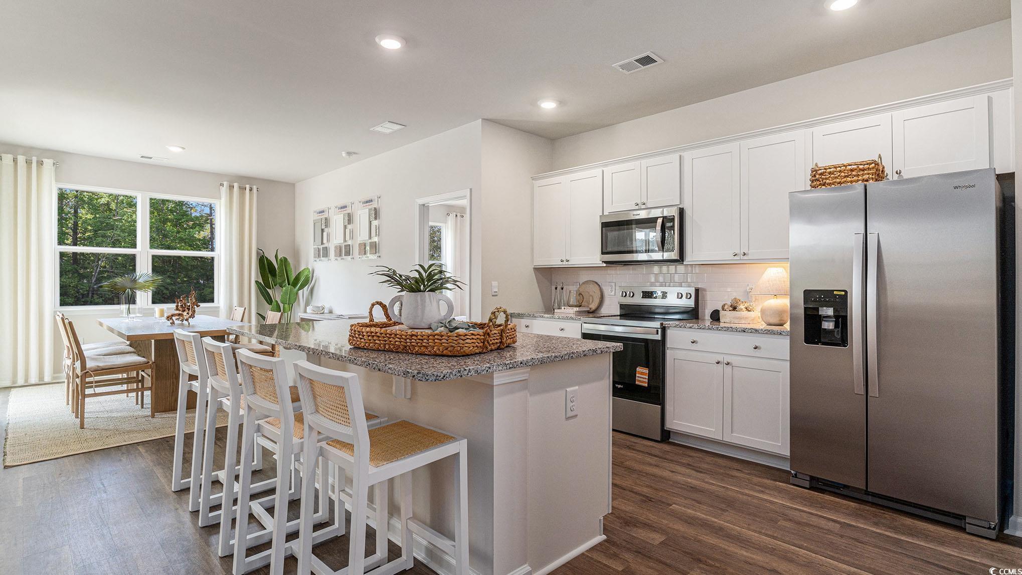 This thoughtfully designed one level home is one of our most popular floor plans! With an open concept living room, dining room and kitchen, this home is bright, spacious, and designed for entertaining guest or comfortably interacting with family. The kitchen features granite countertops, 36" cabinets, a spacious pantry, stainless steel appliances including a refrigerator, and island with breakfast bar! Your primary suite awaits off the back of the home with a spacious walk-in closet and master bath with double sinks, a linen closet and 5' shower. Two secondary bedrooms are at the front of the home providing separation from the primary suite. Enjoy the coastal air from the screened back porch as you wind down in the evening! Blinds will be included throughout the house on all standard sized windows. 2" faux wood blinds on all standard windows. 2 car garage with garage door opener. This is America's Smart Home! Each of our homes comes with an industry leading smart home technology package that will allow you to control the thermostat, front door light and lock, and video doorbell from your smartphone. *Photos are of a similar Aria home. Pictures, photographs, colors, features, and sizes are for illustration purposes only and will vary from the homes as built. Home and community information, including pricing, included features, terms, availability and amenities, are subject to change and prior sale at any time without notice or obligation. Square footage dimensions are approximate. Equal housing opportunity builder.