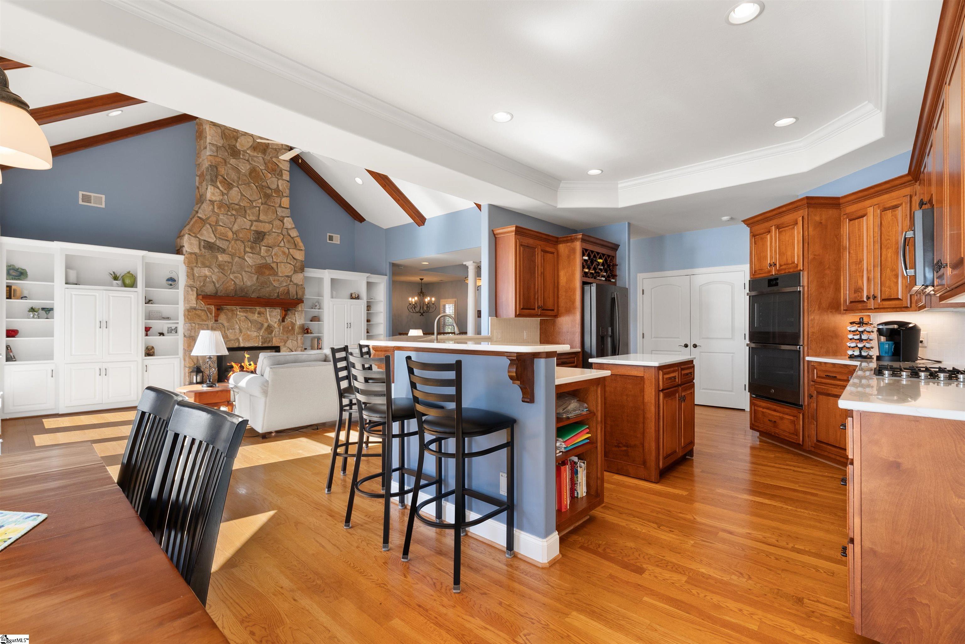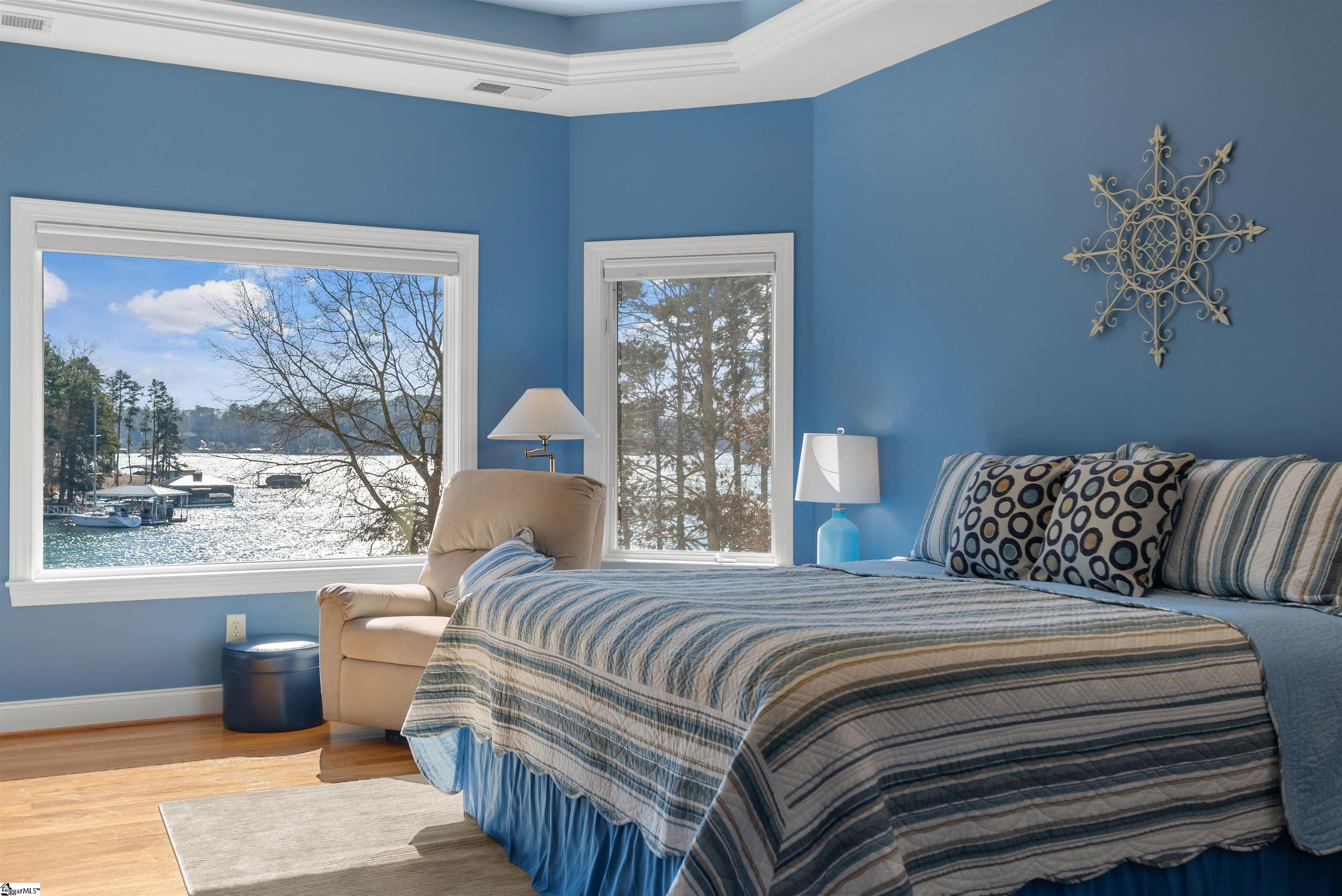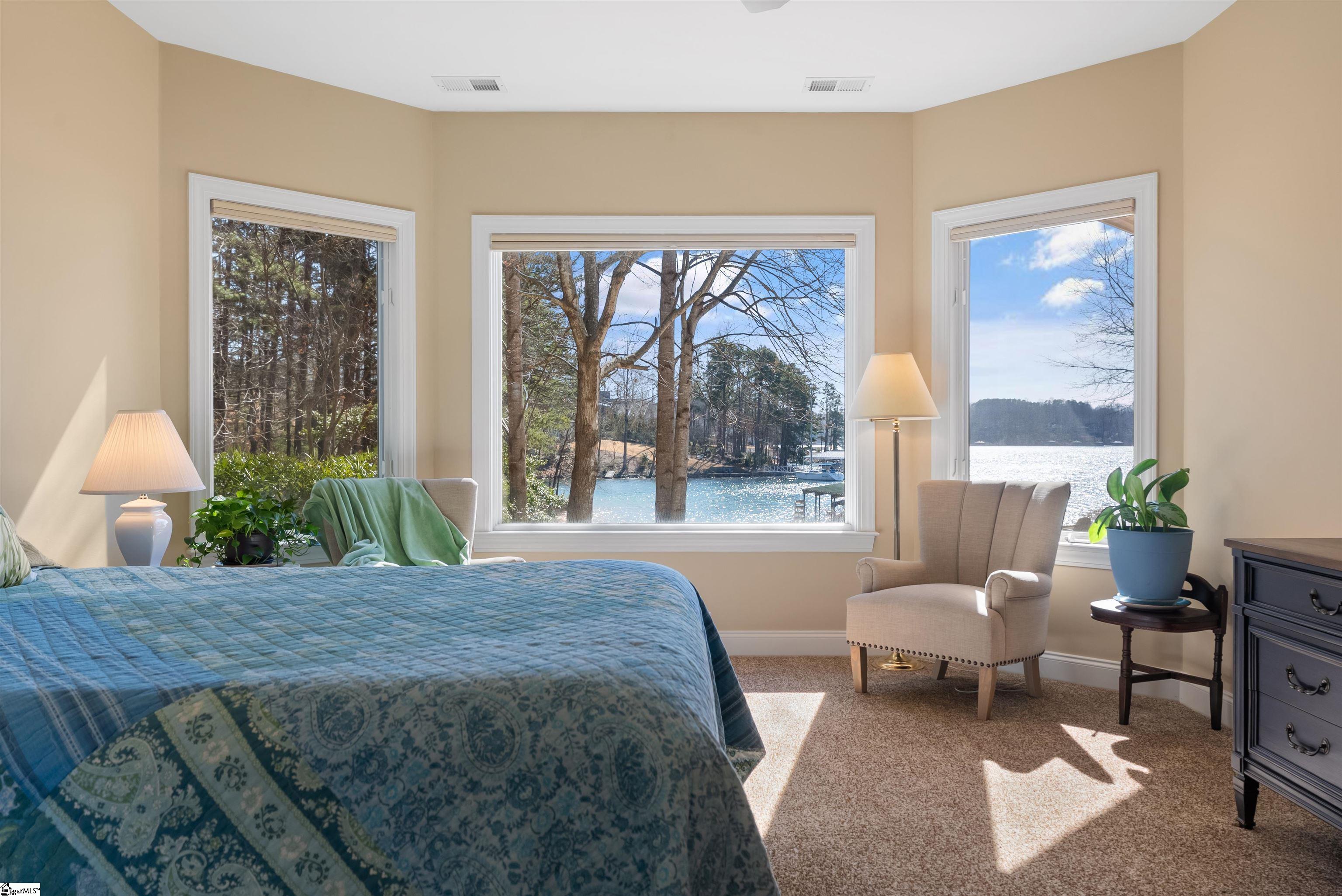 Appreciate the difference at 613 Lighthouse Court on Lake Keowee. Flat, open, long water Lake Keowee views don’t come around often. Experience the extraordinary ease of access from a level yard on all four sides of this established waterfront home. From the foyer to the deck, the sun porch to the primary suite, the lake views span an entire 180-degree view. A lake house where you know you’re at the lake from the moment you walk in the door. The main living room features a oak hardwood floors, a cathedral with wood beam accent and a stone fireplace that soars to the ceiling. Glass doors and windows extend the entire lakeside of the home. The entertainment friendly kitchen offers gas cooking, ample counter space, and a walk-in pantry. The large lakeside deck is accessible from both the living room and the primary suite. A sunroom is off the kitchen with some of the best views of the property extending across the open channel. The oversized primary suite features a tray specialty ceiling and large picture windows. Double vanities flank a corner tub with a walk-in tile shower on the opposite corner. The main level also offers a spacious laundry room, guest half bath, and multiple storage closets. On the terrace level there is a second lakefront ensuite guest bedroom and two lake view guest rooms that share a hall bath. The recreation room features a kitchenette and glass doors that lead to a covered patio. Over 800-square feet of climate-controlled storage adds opportunity for hobby space, a home studio or water toy storage. A level walk across the sodded yard leads to a paver lakefront patio and onto the private ironwood covered slip dock. Beacon Shores is the only Crescent Community that offers a private sandy beach; great for shore play, kayakers, and four-legged friends. The neighborhood park area offers a lending library bookstand, golf cart parking, and a lakeside picnic area for neighborhood socials. Recent home modifications include riprap shoreline, quartz counters and appliances, deck railings, LVP flooring at the terrace level living and slate walkways and pavers.