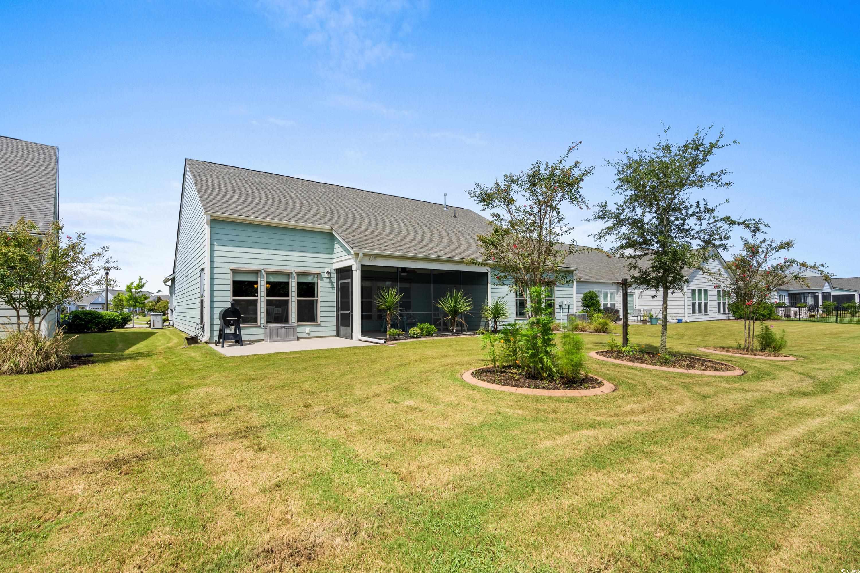 Welcome to your new home in the prestigious Del Webb at Grande Dunes community, an exclusive retreat designed for those 55 and above. Perfectly located just a short golf cart ride from shopping, dining, and the beach, this Dunwoody Way floor plan blends comfort, elegance, and functionality in every detail. Featuring 3 bedrooms, 3 full bathrooms, and a versatile flex-room that can serve as a study, library or den, the home is thoughtfully positioned on a serene, private homesite with beautifully maintained landscaping that enhances its curb appeal. A whole home generator provides year-round peace of mind, and the oversized attic features a convenient walk-up staircase, making it far easier than traditional pull-down access and offering abundant, easily accessible storage Step inside to an open-concept design that invites effortless living and entertaining. At the heart of the home, a stunning gourmet kitchen seamlessly flows into the expansive great room. The kitchen is a chef’s dream, featuring built-in appliances, a 5-burner cooktop, quartz countertops, and a spacious island perfect for gatherings. A large farmhouse sink serves as both a functional centerpiece and a design statement, while the reverse osmosis water filtration system provides fresh, purified water right at the sink. Soft-close cabinetry with pull-out trays and a walk-in pantry ensure both style and practicality. From the adjoining screened porch, take in tranquil views of the private backyard, an ideal setting for relaxation or hosting friends. The study provides a quiet and versatile space, complete with a custom built-in desk that makes it ideal for working from home, pursuing hobbies, or simply staying organized. Elegant finishes continue throughout the home, including upgraded trim, two-piece crown molding, six-inch baseboards, and brushed nickel fixtures. The owner’s suite is a private retreat with peaceful backyard views, a custom-designed walk-in closet, and a spa-like ensuite featuring a luxurious walk-in shower. Each guest bedroom offers its own private bath, including a spacious guest suite with walk-in shower, providing comfort and privacy for visitors. Additional features showcase the home’s thoughtful design and modern conveniences, from energy-efficient details like radiant barrier roof sheathing to the screened lanai that seamlessly blends indoor and outdoor living. The spacious 2.5-car garage offers abundant storage and includes a dedicated bay for golf cart parking. Everyday peace of mind is provided by practical enhancements such as an irrigation system, gutters, a whole-home water softener, and a built-in pest protection system, ensuring this residence is every bit as reliable as it is beautiful. The Del Webb amenities are unparalleled, offering a vibrant active community experience. Meet new friends at the monthly events and daily activities hosted at the Amenity Center, take a refreshing dip in the indoor or outdoor pool, or stay active with facilities like the gym, bocce ball, pickleball, and tennis courts. Enjoy leisurely strolls or bike rides along the countless sidewalks and the paved path running alongside the beautiful intracoastal waterfront. Running errands or heading to the beach is a breeze with your own golf cart—the ultimate beach life necessity! And speaking of the beach, easy access is granted via the Grande Dunes Beach Club, a delightful amenity included in your monthly HOA dues. Additionally, landscaping maintenance is covered, ensuring the community stays beautiful and you have more time to enjoy the exceptional lifestyle Del Webb offers Don’t miss the chance to experience this exceptional home, where luxury, comfort, and functionality come together in perfect harmony. Schedule your tour today and start living the dream in Del Webb at Grande Dunes!