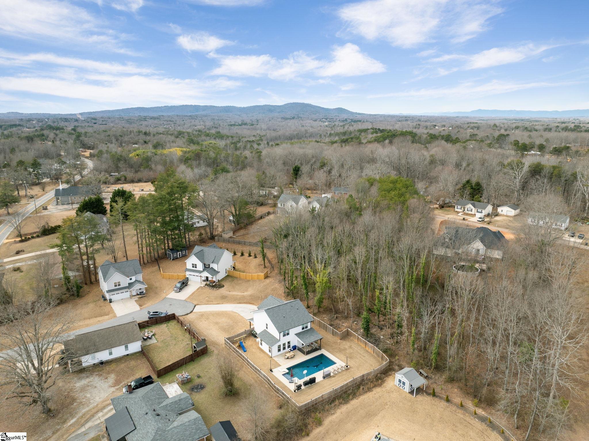 Located at 613 Old Rutherford Road in Taylors, this like-new home built in 2022 features 3 bedrooms, 2.5 bathrooms, and a two-car attached garage with a practical layout and comfortable living spaces throughout. A two-story foyer creates a welcoming entry and opens to the main level featuring an open living and kitchen area, ideal for entertaining. The kitchen is equipped with quartz countertops, ample cabinetry, and a spacious island that flows seamlessly into the main living space. Upstairs, the primary suite features gorgeous ceiling detail and includes a bathroom with dual sinks and a walk-in shower. Two additional bedrooms share a full bathroom with dual sinks and a shower/tub combination, providing convenience for guests or family. The laundry room is also located on the second level for added ease. Outside, you will love the covered porch and will thoroughly enjoy a fully fenced backyard with a large, saltwater pool, providing a great setting for relaxing, entertaining, or enjoying warm South Carolina days. With its like-new condition, open layout, and desirable outdoor space, this home provides easy living in a convenient Taylors location with NO HOA. Make time to see this move-in ready home – just in time for fabulous Spring and Summer weather!