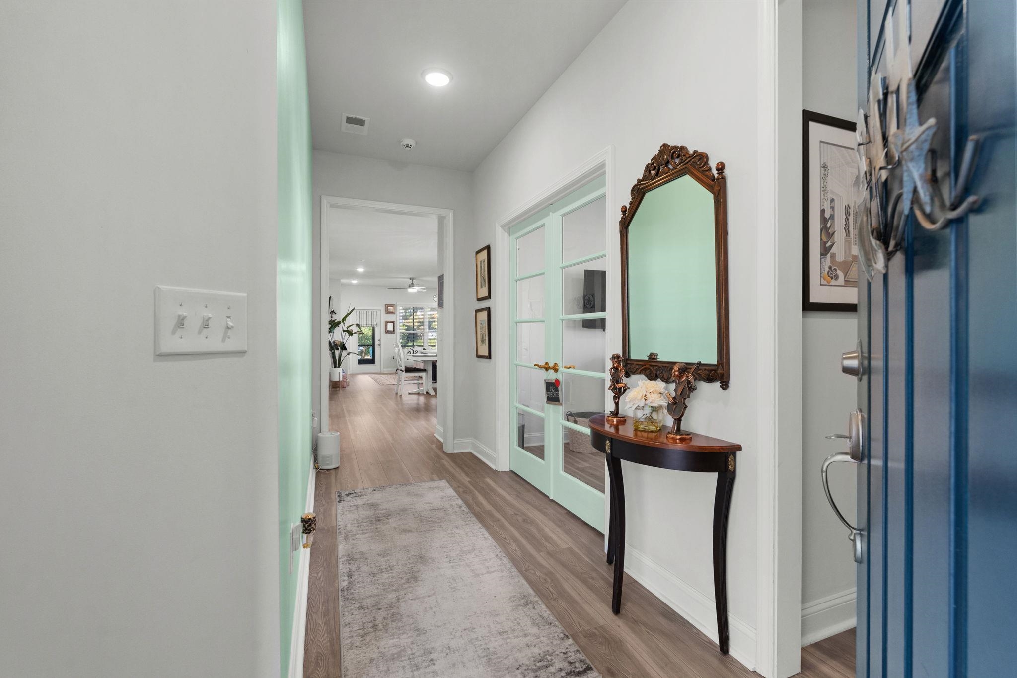 Situated on a highly desirable corner homesite within the prestigious 55+ Del Webb at Grande Dunes, this thoughtfully upgraded Cressida residence embodies effortless luxury and sophisticated coastal design. Offering 2 bedrooms, 2 baths, and a versatile flex room, the home’s open-concept layout is perfectly tailored for both elegant entertaining and comfortable everyday living. From the moment you enter, elevated finishes set the tone. Quartz countertops, designer gray cabinetry, detailed trim work, and oversized 12x24 tile create a polished aesthetic, while luxury vinyl plank flooring flows seamlessly throughout the main living areas. Plush carpeting in the bedrooms provides warmth and comfort, creating inviting private retreats. The flexible bonus space—currently styled as a home office—offers endless possibilities. Whether envisioned as a third bedroom, den, or creative studio, this adaptable room enhances the home’s functionality to suit your lifestyle. The chef-inspired kitchen blends beauty and performance with upgraded cabinetry, granite countertops, stainless steel appliances, and generous prep space designed to accommodate gatherings with ease. The spacious primary suite serves as a serene sanctuary, featuring a dual vanity and a beautifully appointed walk-in shower in the en-suite bath. Enhanced lighting fixtures and ceiling fans throughout add both comfort and refinement. Outdoors, the screened lanai provides the perfect setting for morning coffee or evening relaxation, all while enjoying the privacy and added space of the corner homesite. Ownership in Del Webb at Grande Dunes grants access to an exceptional array of resort-style amenities, including an expansive clubhouse, state-of-the-art fitness center, and exclusive gated privileges at the Grande Dunes Ocean Club. Conveniently located near Myrtle Beach’s pristine sandy beaches and championship golf courses, this home offers the ideal balance of luxury, leisure, and location. Experience low-maintenance coastal living at its finest—where every detail reflects quality, comfort, and timeless style.