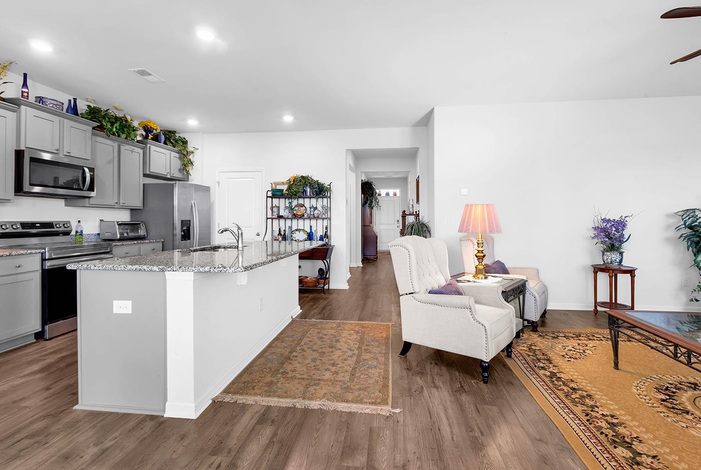 This Aria has it all! Open concept home with a modern design on a spacious homesite. This floor plan features lots of windows and 9ft. ceilings allowing natural light to flow in. The living and dining rooms are adjacent to the kitchen which makes entertaining effortless. Kitchen has granite countertops, 36" cabinets, stainless steel appliances, and spacious pantry. Beautiful, easy to maintain laminate flooring in foyer, kitchen, living, and dining areas. Come see all the insightful features designed with you and your lifestyle in mind including a split bedroom layout, laundry room just off the garage, and a spacious covered patio overlooking backyard. Smart home package that will allow you to monitor and control your home from the couch or across the globe. Conveniently located just minutes to beautiful, historic downtown Conway where you can enjoy shopping, dining, theater, and the beautiful Waccamaw River.