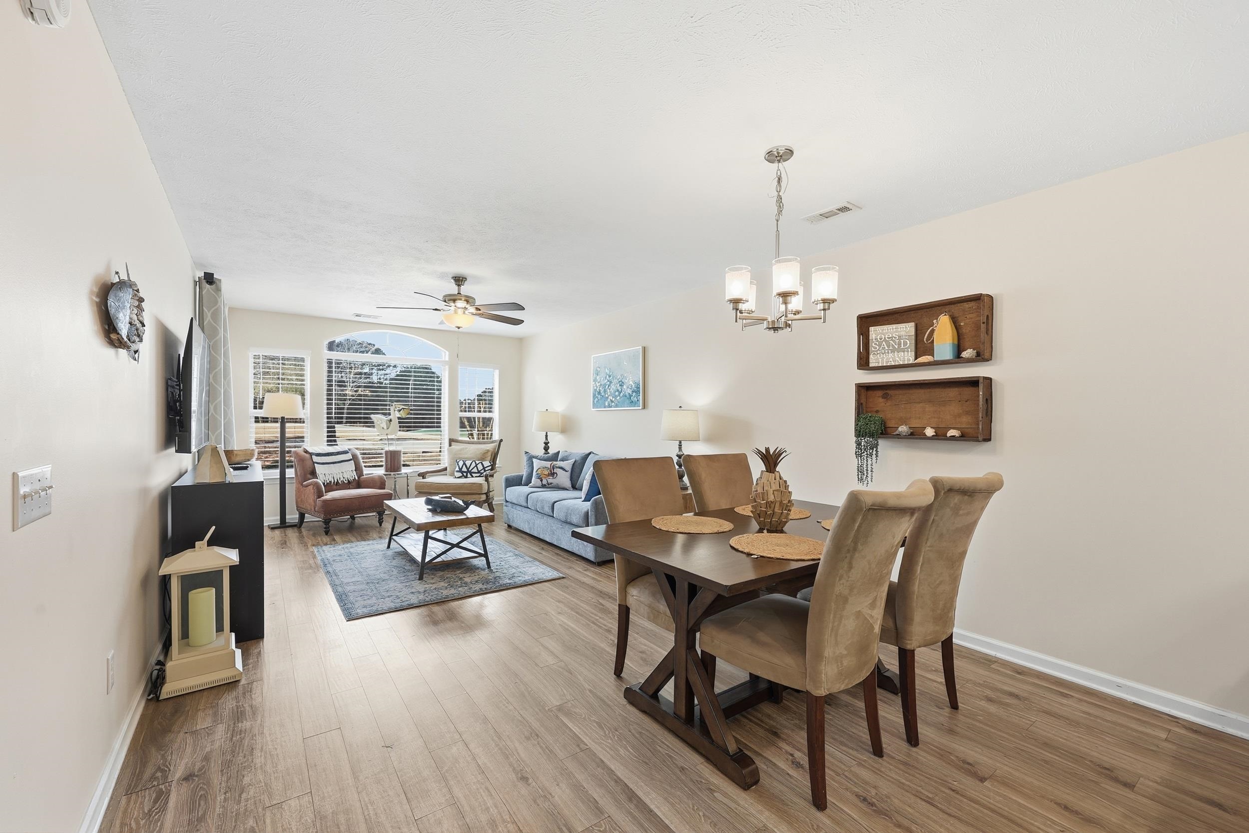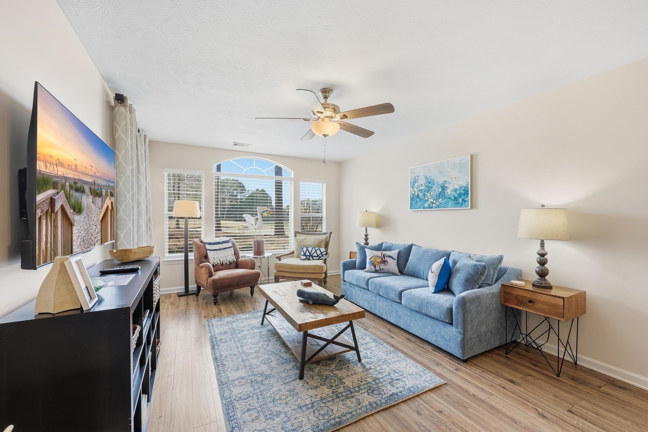 Welcome to this beautifully maintained 1st floor condo in True Blue, offered fully furnished and currently operating as a successful short-term rental. This spacious unit features an open, inviting layout and a screened-in porch overlooking a serene golf course and water view — the perfect spot for morning coffee or evening relaxation. Centrally located near Pawleys Island beaches, dining, shopping, and local attractions, this property is ideal as an investment, vacation getaway, or primary residence. Turn-key and ready to enjoy or rent from day one!