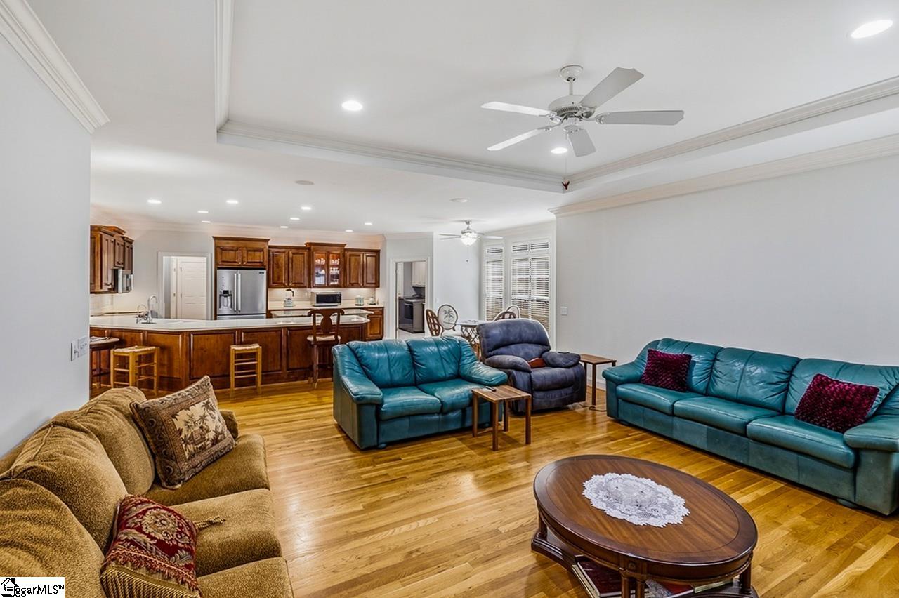 This one is a must-see, folks! Meticulously maintained in one of the prestigious neighborhoods in Easley! Enjoy this well-established neighborhood, featuring a community pool, clubhouse, tennis courts, and 4 private ponds! Pull into the cobblestone driveway, venture down the cobblestone sidewalk, and enter the home you've been waiting for! A welcoming foyer leads to a proper living room with a beautiful stacked-stone gas fireplace. The formal dining room is complemented with a centuries-old, handmade chandelier. The open floor plan guides you to the Den and Kitchen. This Kitchen has everything you will need to entertain your guests and family. Enjoy the massive TV (that does convey!) and surround sound system while preparing meals. Tucked away from the hustle is the generous Primary Bedroom, with a full bath, multiple closets, and a view of your private backyard. From the Kitchen, slip away to your private office conveniently located near the garage entrance. Let's talk about this garage! With a side entry, this 3-car wonder features custom cabinets, a proper garage fridge, and extra storage. Back inside, discover the unique upstairs, which includes 3 additional bedrooms, a bonus room, a separate game room, and a dedicated pool table room (yes, the pool table conveys as well!). All complemented with a third full bath for your guests and family's privacy. Back downstairs, step outside to your stunning covered back porch and enjoy morning coffee or evening cocktails with all the privacy you could ask for. With a new roof in 2019, new stainless steel appliances in the Kitchen in 2020, new washer and dryer in 2023, new porcelain floors in both the Kitchen and primary bath in 2023. A new water heater was installed in 2023. A new convection wall oven and primary bath toilet were installed in 2025. The primary bath shower was upgraded in 2026 to a roll-in with disability access. And, the Kitchen has a new reverse-osmosis water filtration system in the Kitchen, installed in 2025. Homes like this are hard to find! Close to everything Easley and Powdersville have to offer, and just minutes to Smithfields Country Club.