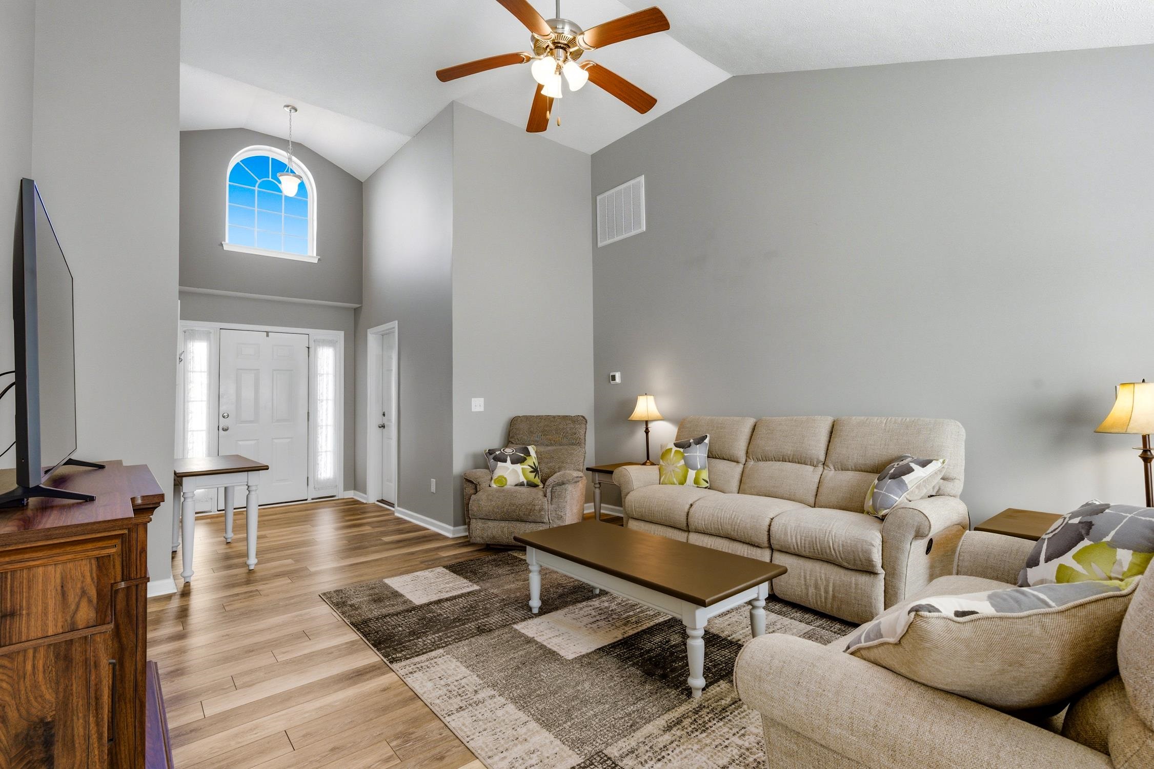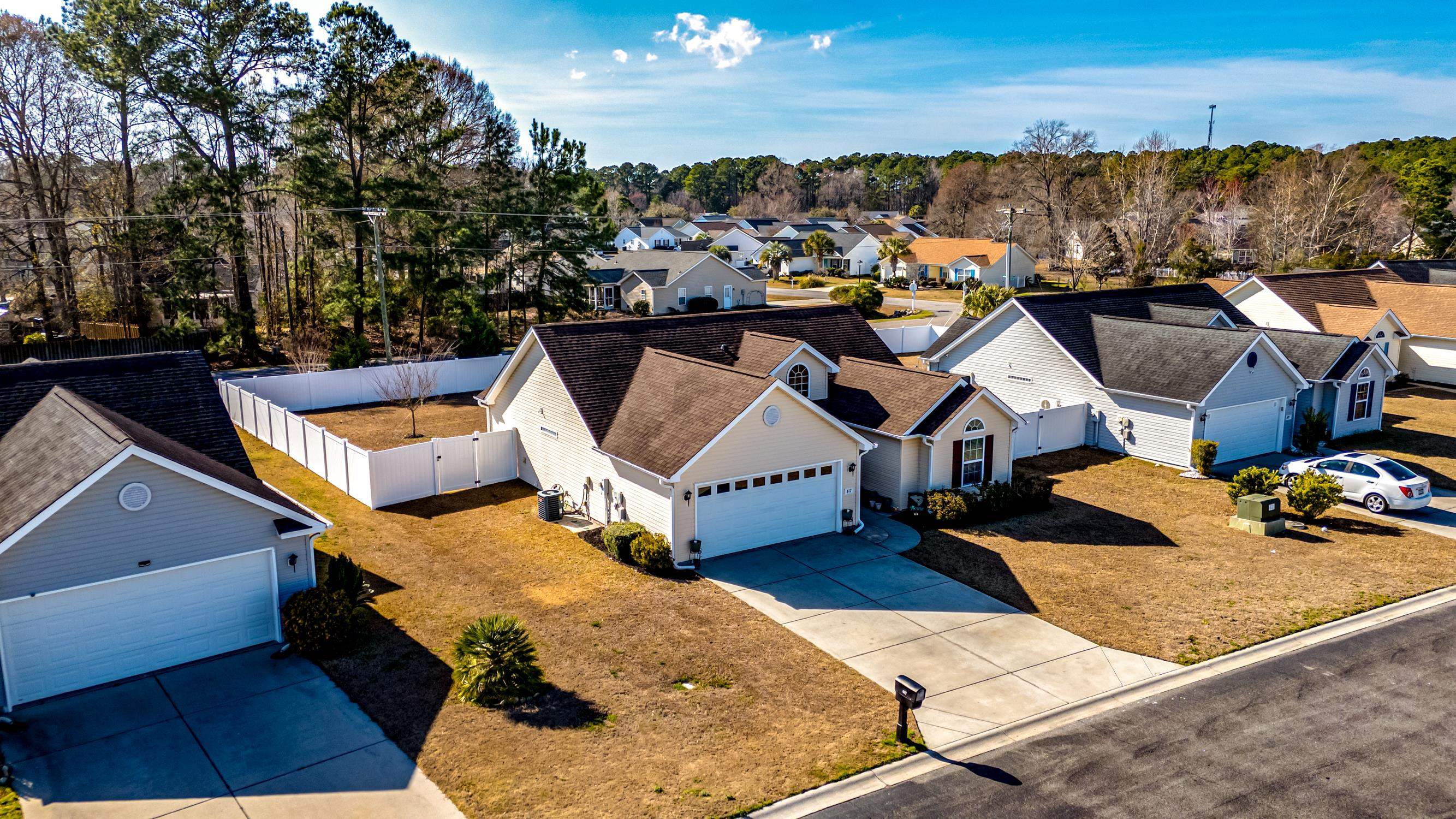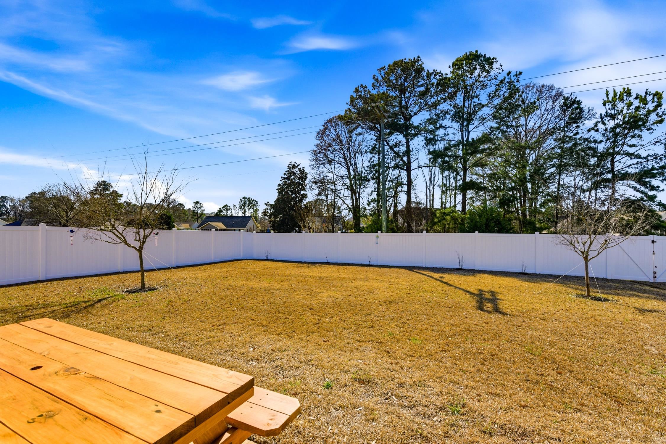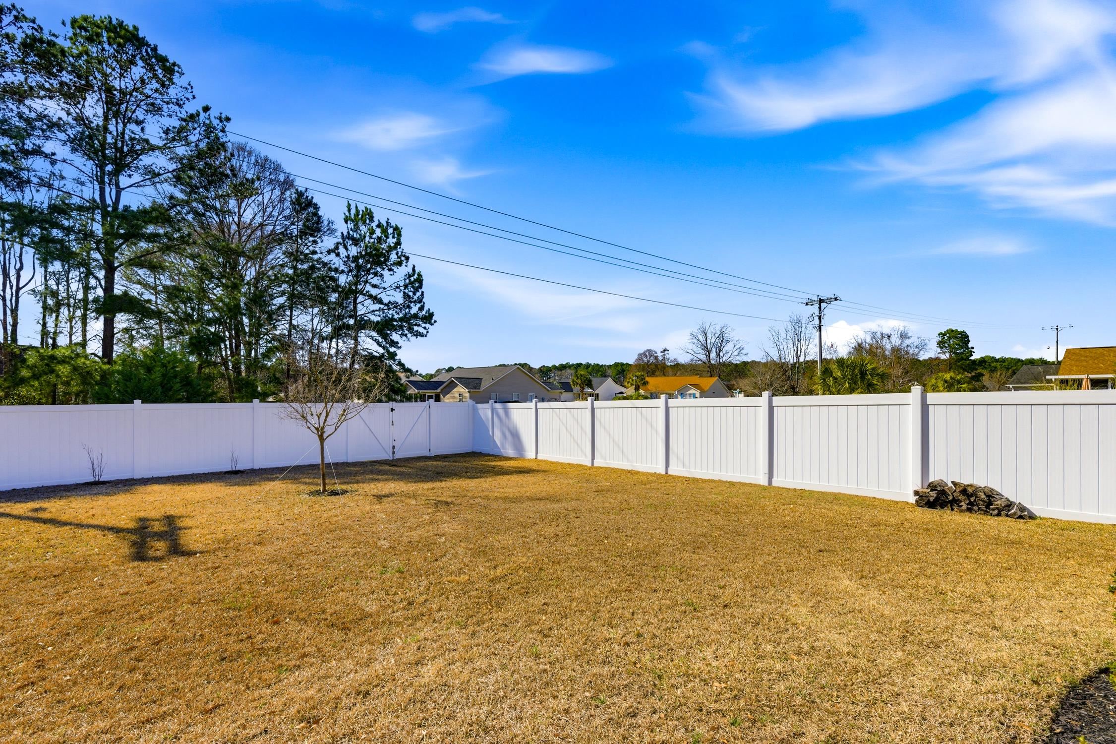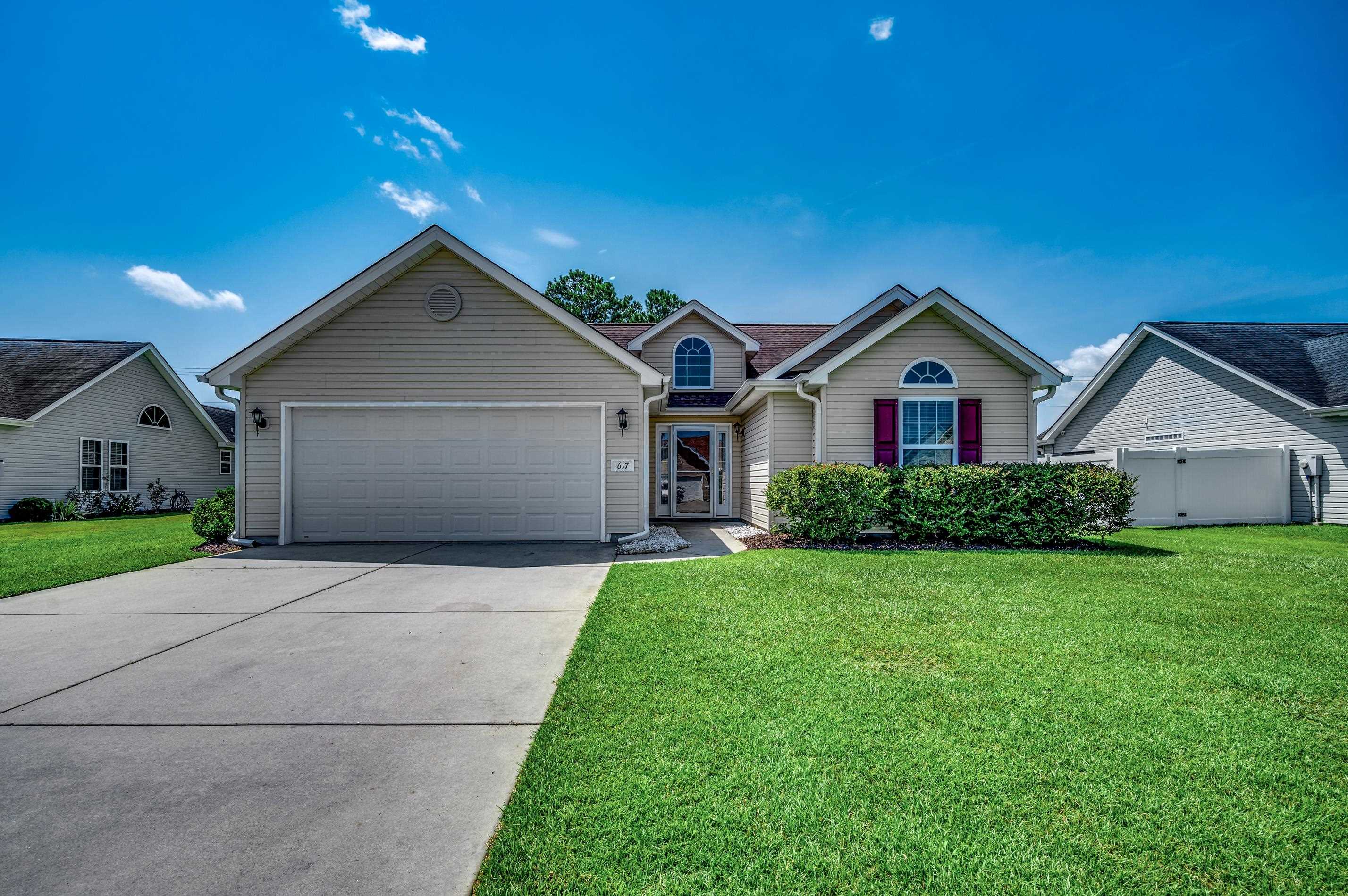 Move right into this beautifully maintained 3 bedroom, 2 bath home with a 2 car garage, where pride of ownership shines throughout. A large accent window above the front door welcomes warm Carolina sunshine into the living area, creating a bright and inviting atmosphere. The spacious living room features a vaulted ceiling, while luxury vinyl plank flooring flows seamlessly through the main living areas, kitchen, and dining space. The kitchen offers abundant counter space, a convenient breakfast bar, and a pantry, and was upgraded in 2024 with new LG smart stainless appliances, perfect for both everyday living and entertaining. The spacious primary suite easily accommodates all of your furniture and features a large walk-in closet. A desirable split bedroom floor plan provides privacy, with two comfortable guest bedrooms. Bunk beds with mattresses and televisions in guest bedrooms can convey. The guest bath was freshly painted and updated in 2025 with new cabinetry, a new sink and stylish fixture and new flooring. Step outside to enjoy the huge fully fenced backyard, complete with a recently expanded 16' x 16' patio, the perfect spot to enjoy your morning coffee or gather with friends for an afternoon barbecue. The fence was installed in 2025, providing both privacy and peace of mind. Separate exterior storage will convey as will the television in the garage. Tucked just off the beaten path, this home offers a convenient central location close to shops, entertainment, golf courses, watersports, and award-winning restaurants. You are also just minutes from The Market Common, the Murrells Inlet MarshWalk, and a short drive to the beautiful blue Atlantic Ocean and white sandy beaches. Come discover your own place in the sun today! Square footage is approximate and not guaranteed. Buyer is responsible for verification.