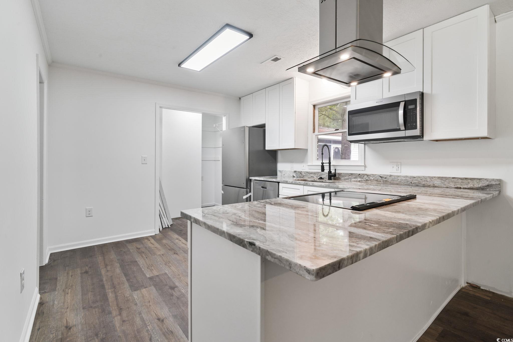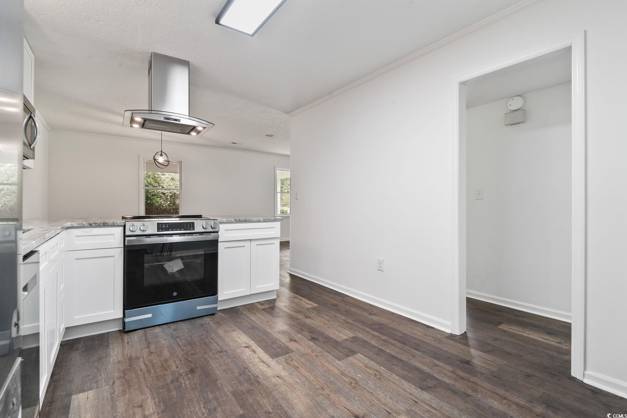 Fully Renovated Brick Ranch – No HOA, Minutes from Coastal Carolina University! Exquisitely renovated 3-bedroom, 2-bath brick ranch with no HOA—every detail has been thoughtfully updated for modern living. Step inside to find brand-new luxury vinyl plank flooring flowing throughout, complemented by an open, light-filled layout. The kitchen showcases all-new custom cabinetry, sleek granite countertops, and premium stainless steel appliances, creating a true chef’s space. Designer lighting elevates every room, while the master suite boasts a beautifully tiled walk-in shower for a spa-like retreat. Additional updates include new electrical outlets and finishes throughout, ensuring both style and peace of mind. Ideally located just minutes from Coastal Carolina University, this move-in-ready home combines timeless brick construction with contemporary upgrades—perfect for a primary residence or investment opportunity.