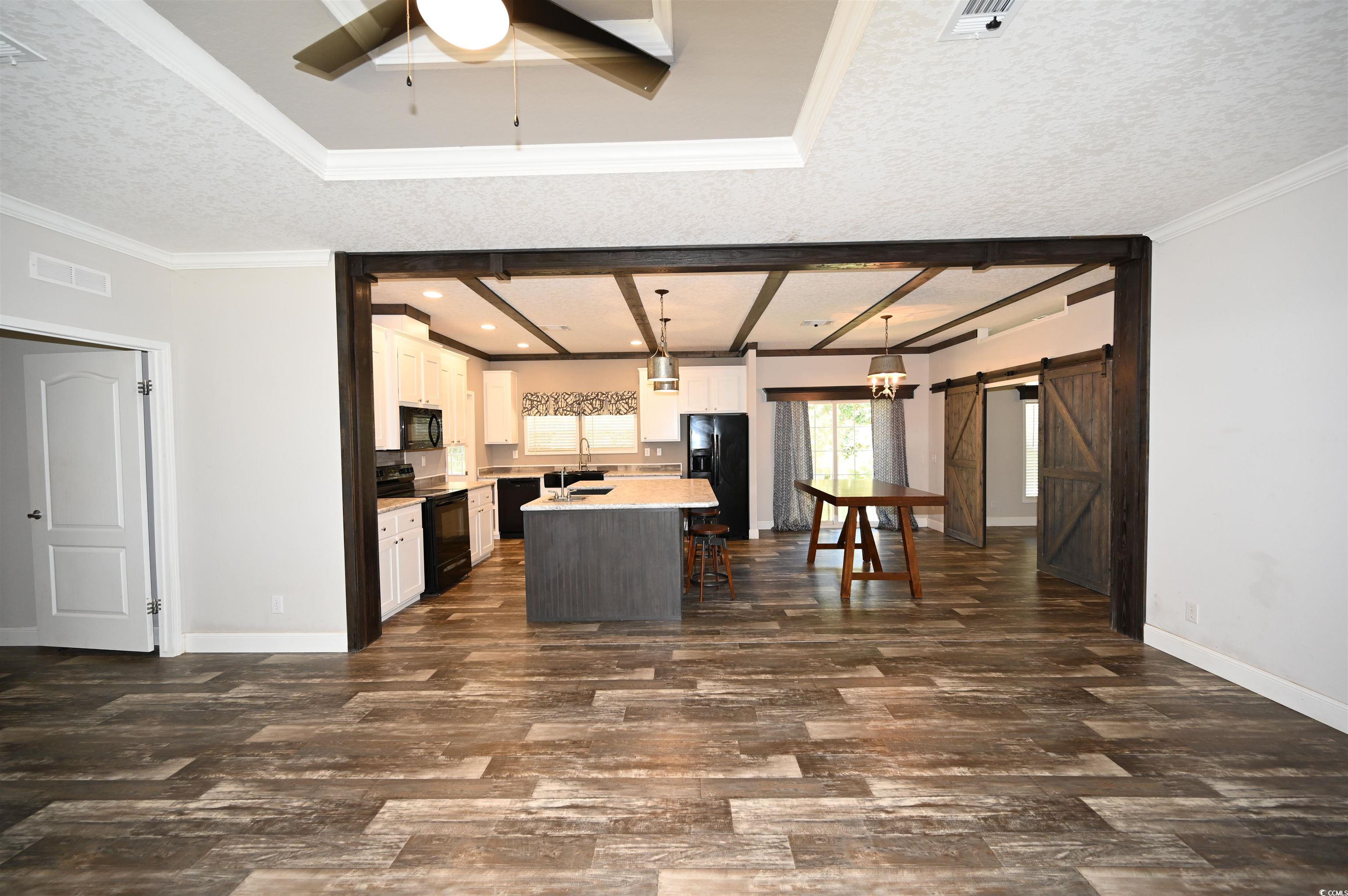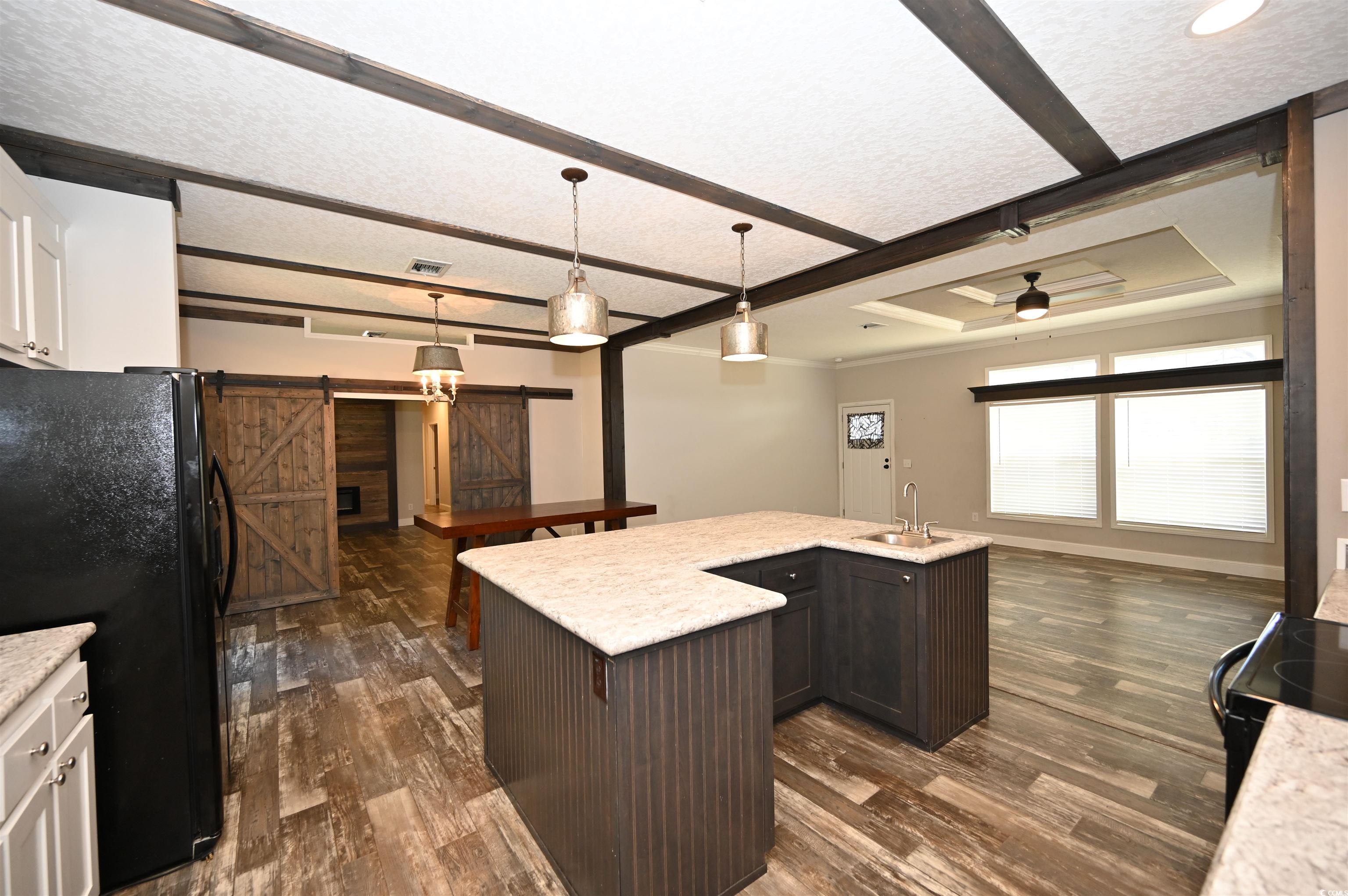 Prepare to be WOWED the moment you walk through the door! This stunning five bedroom, three bathroom home welcomes you with soaring ceilings and beautiful tray ceilings in the living room, setting the tone for the spacious, open layout. The kitchen features a modern farmhouse style, offering tons of cabinet space, a massive island, and excellent storage options, perfect for cooking, hosting, and everyday living. The oversized laundry room also includes a pantry/storage area, adding even more convenience. The huge primary bedroom includes a generous walk-in closet, while the en-suite bathroom boasts double sinks, a large soaking tub, and a spacious walk-in shower. A second living room with an electric fireplace provides an additional cozy space to unwind or entertain. All additional bedrooms are very spacious and feature high ceilings, giving everyone plenty of room to spread out. This incredible property sits on approximately 11.09 acres, offering privacy, space, and endless possibilities. Buyer is responsible for all measurement verifications.