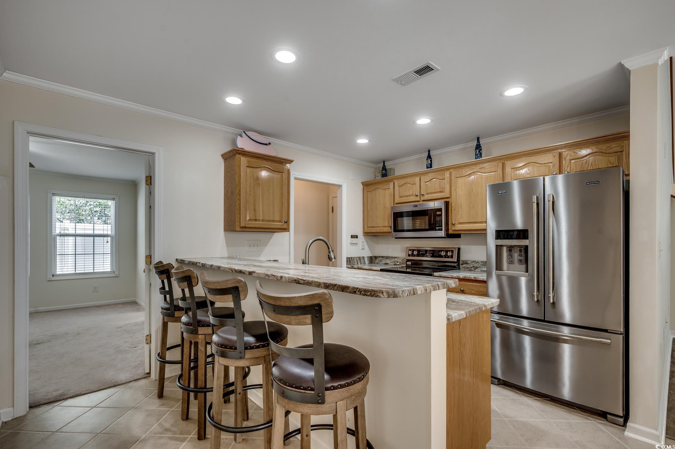 Located in the Town of Surfside Beach, this meticulously maintained 4+ bedroom, 3 bath home is the perfect spot to call home. These are the original owners and this home has never been rented. The bonus room over the garage could very easily be a 5th bedroom, office, playroom or fitness area. The roof was replaced in 2022 and both HVAC units were new in 2023. The kitchen was updated in 2023 with stainless appliances and granite countertops. The living area is enhanced by soaring ceilings allowing natural light to flow throughout. You will love the enormous closet in the downstairs master bedroom and the guest bedroom on the main level as well. Upstairs is home to 2 additional bedrooms, a full bathroom, a large bonus room that could easily serve as a 5th bedroom, playroom, office or fitness area and fantastic storage possibilities. The garage is heated and cooled making it the perfect spot for a workshop, crafting area or climate controlled storage. Enjoy privacy with a completely fenced yard when you step outside onto the covered patio to relax with morning coffee where you are sure to appreciate the cool breeze. A paver walkway leads to the charming pergola complete with a ceiling fan and overhead lighting, a wonderful spot to entertain with lush landscaping and mature trees your backyard could be your tropical paradise. Extra concrete has been added to the already double wide driveway allowing for more than ample parking. Just through the fence gate there is a huge paver pad which is perfect for boat, camper or jet ski parking. An irrigation system, decorative landscape lighting, and security system complete the package. While walking is prevalent, golf carts are also a popular mode of transportation for many in the Town Of Surfside Beach which offers a little something for everyone with tennis courts, bocce ball courts, shuffleboard courts a ball field, covered beach-side observation decks, a dog park, children's playgrounds an so much more. This quaint little two square mile beach town is home to a public library and senior center. It has it's own Police and Fire Departments and a brand new fishing pier. Whether enjoying the local pizza restaurant, bakery, or ice cream shops, or partaking in the many town festivals, events and parades, you are sure to love Surfside Beach living. Come find your own place in the sun today!
