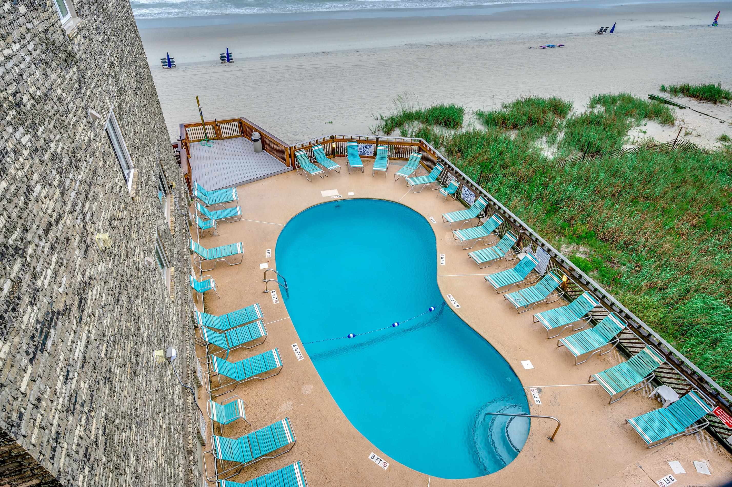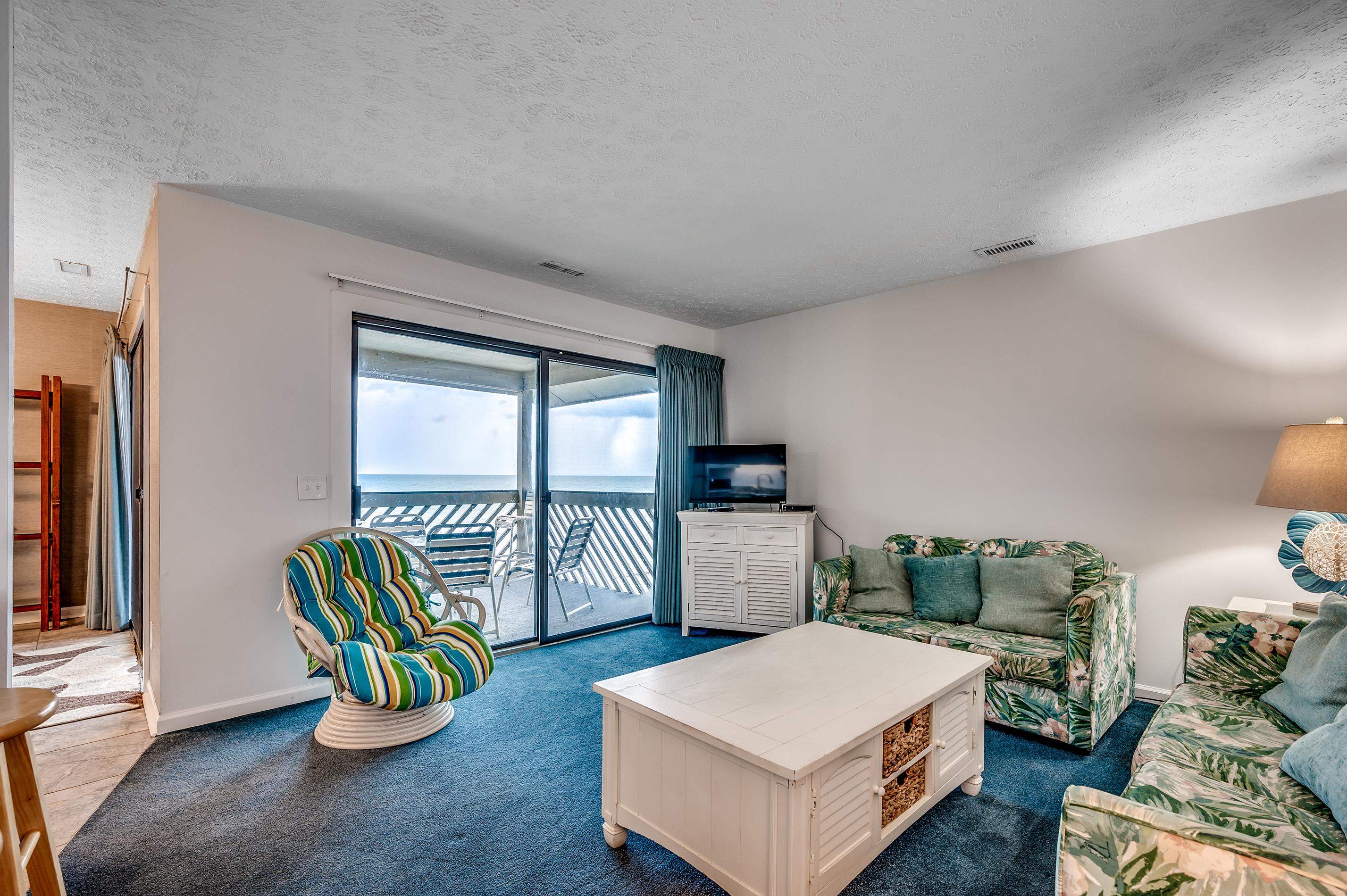 Enjoy direct oceanfront views from this top-floor condo at B7 Maritime Place, located at 618 N Waccamaw Drive in the heart of Garden City Beach. This 2-bedroom, 2-bath unit offers 1,038 heated square feet in a well-maintained low-rise building with a brick exterior and oceanfront pool. The unit features an open living and dining area with two large ocean-facing glass doors that lead to a private balcony overlooking the beach, pool, and ocean. The kitchen has been updated with gray shaker cabinets, granite countertops, and stainless steel appliances. The primary suite includes an ensuite bath, while the second bedroom has direct access to the hallway bathroom. This condo is being sold fully furnished and includes secure ground-level storage. Community amenities include an oceanfront pool, hot tub, sundeck, and private beach access. Located just 0.4 miles north of the Garden City Pier, the condo is within walking distance of restaurants, shops, live music, and entertainment. It's also a short drive to Murrells Inlet, Myrtle Beach, and area attractions like Brookgreen Gardens and Huntington Beach State Park. Whether you’re looking for a vacation getaway, investment property, or full-time residence, B7 Maritime Place offers a great oceanfront opportunity in a prime location. Take a virtual tour: www.bit.ly/B7MaritimePlace
