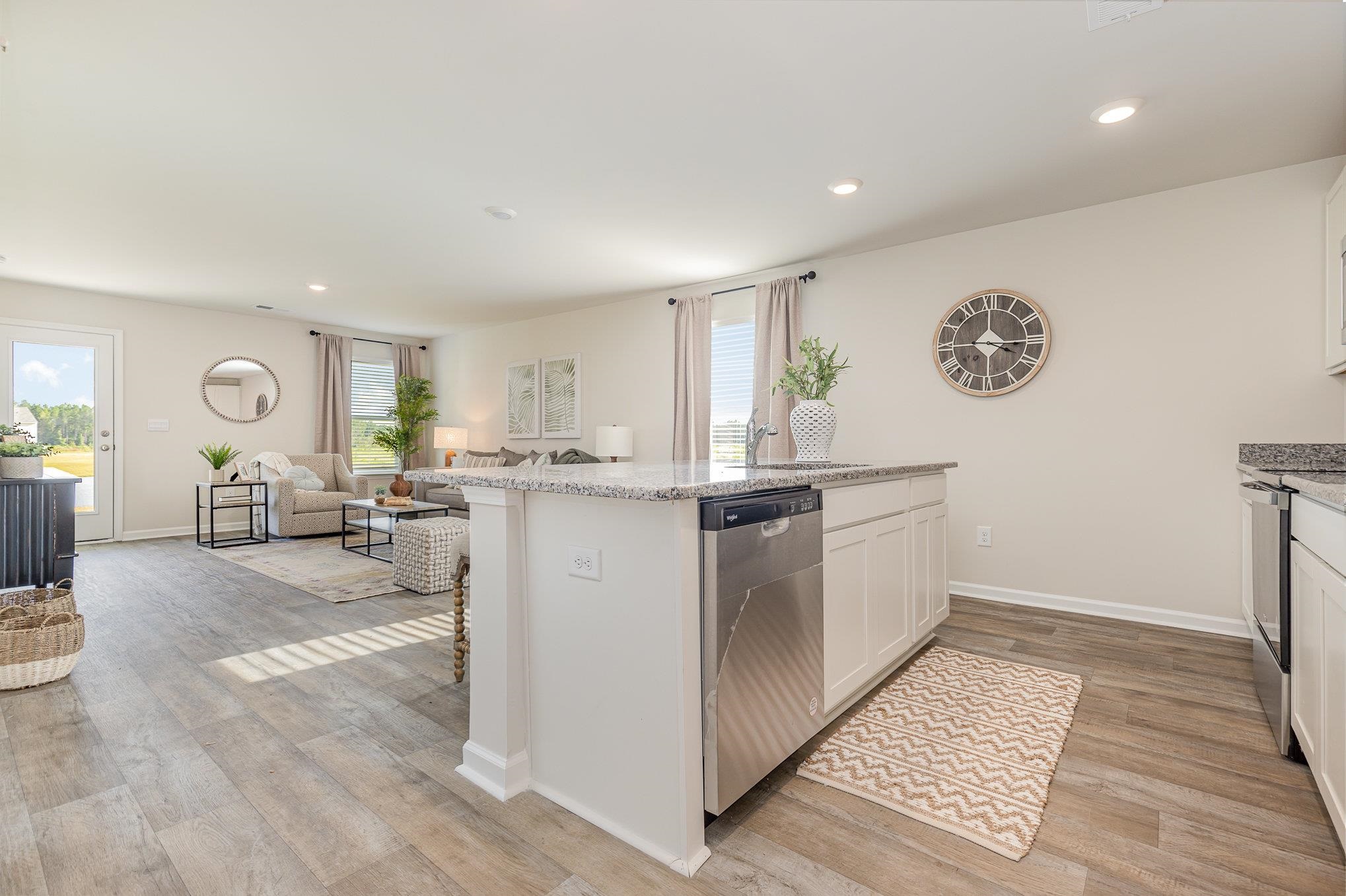 This thoughtfully designed one level home with a single car garage has everything you need in a smaller footprint! With an open concept living room, dining room and kitchen, this home is bright and spacious. The kitchen offers granite countertops, 36" cabinets, a pantry, stainless steel appliances including a refrigerator, and breakfast bar! Your primary suite awaits off the back of the home with a spacious walk-in closet and master bath with a 5' shower. Two secondary bedrooms are located at the front of the home, separate from the owner's suite offering privacy. Enjoy the coastal air on the back covered porch! 2" faux wood blinds are included on all standard windows. Single car garage with garage door opener. This is America's Smart Home! Each of our homes comes with an industry leading smart home technology package that will allow you to control the thermostat, front door light and lock, and video doorbell from your smartphone. *Photos are of a similar Devon home. Pictures, photographs, colors, features, and sizes are for illustration purposes only and will vary from the homes as built. Home and community information, including pricing, included features, terms, availability and amenities, are subject to change and prior sale at any time without notice or obligation. Square footage dimensions are approximate. Equal housing opportunity builder.