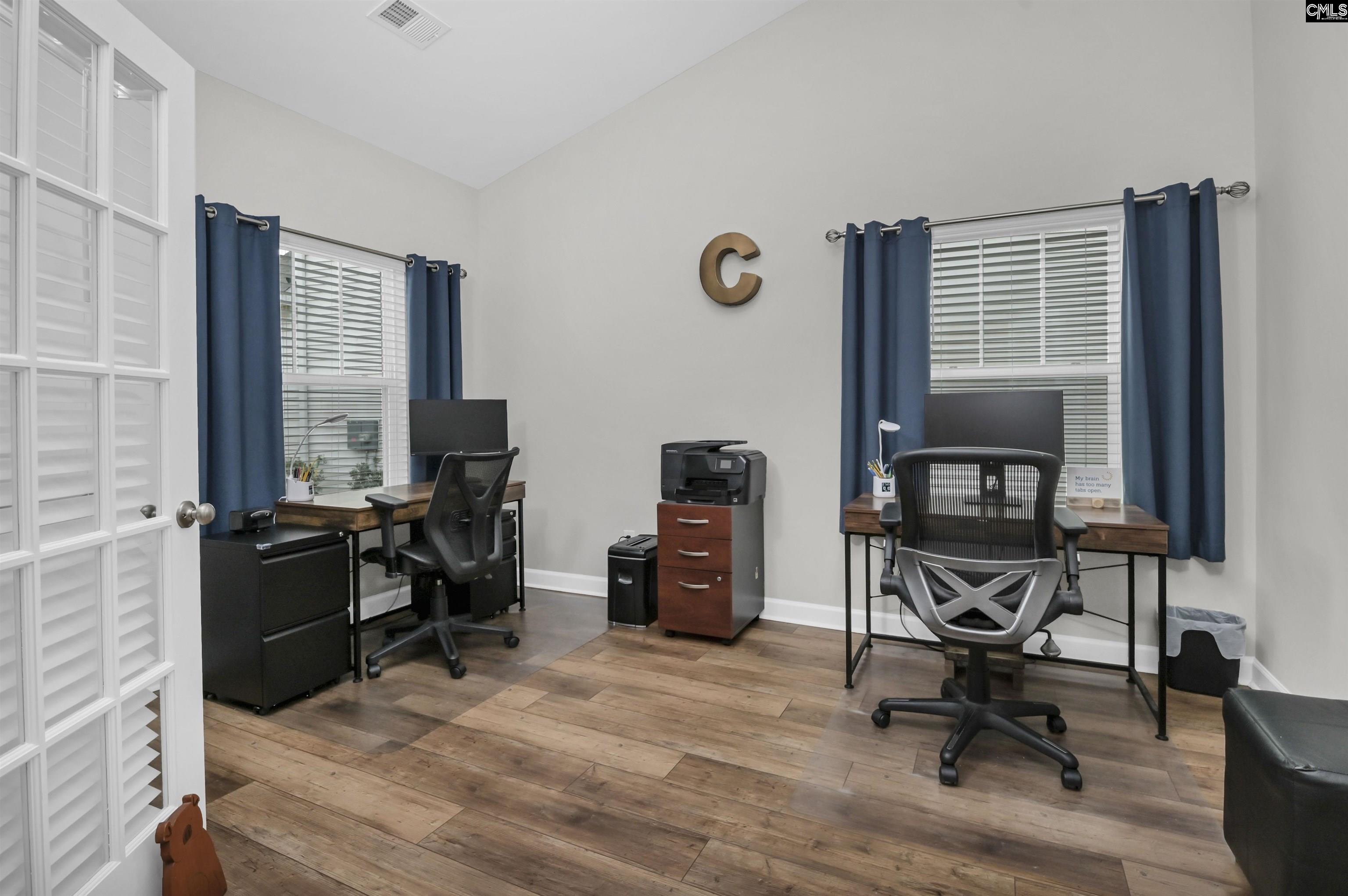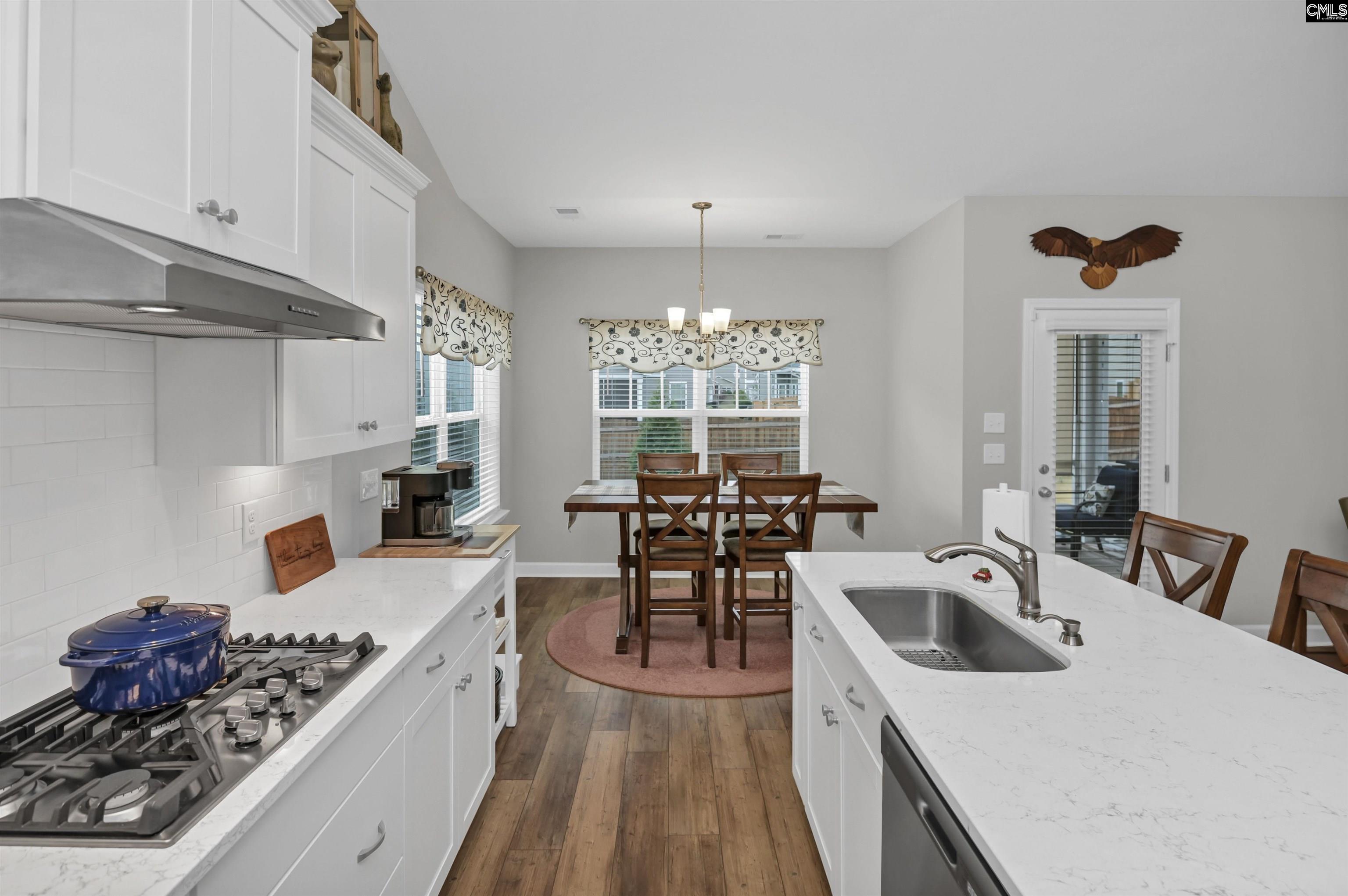 Beautifully maintained 1.5-story home offering 4 bedrooms, 3 full baths, and a highly sought-after layout with nearly all living space on the main level. The home features high ceilings, a wide-open floor plan, and premium finishes throughout.The kitchen opens seamlessly to the great room and includes white cabinetry, quartz countertops, tiled backsplash, farmhouse-style stainless sink, a shelved pantry and GE Café & GE Profile stainless appliances—gas cooktop, convection oven, convection microwave, refrigerator, under-cabinet lighting, and large island with seating for three. The eat-in area sits just off the kitchen.Three bedrooms, including the primary suite (new upgraded carpeting), are located on the first floor. The primary bath features a beautifully tiled walk-in shower, lvp flooring and double vanities. Bedrooms 2 and 3 share a full bath and are conveniently located near the laundry room. Upstairs, the fourth bedroom suite includes LVP flooring, a walk-in closet, private bath with double vanities and a walk-in shower, and easy access to walk-in attic storage—perfect for a guest suite.Outdoor living shines with a screened-in porch, extended concrete patio, and a landscaped backyard with a nearly complete privacy fence. Additional highlights include a flex room with French doors (ideal for office, library, media room or dining), faux-wood blinds, LVP flooring in main living areas, upgraded carpet in the primary suite, stained wood stairs headed to the second private suite, ceiling fans in all bedrooms, air-conditioned and heated garage with insulated door and opener, in-ground sprinkler system, transferable termite bond, and remaining structural and mechanical warranties for the hvac system. Conveniently located near I-20, I-77, Fort Jackson, shopping, and dining. This clean, move-in-ready home shows like new—schedule your private showing today! Disclaimer: CMLS has not reviewed and, therefore, does not endorse vendors who may appear in listings.