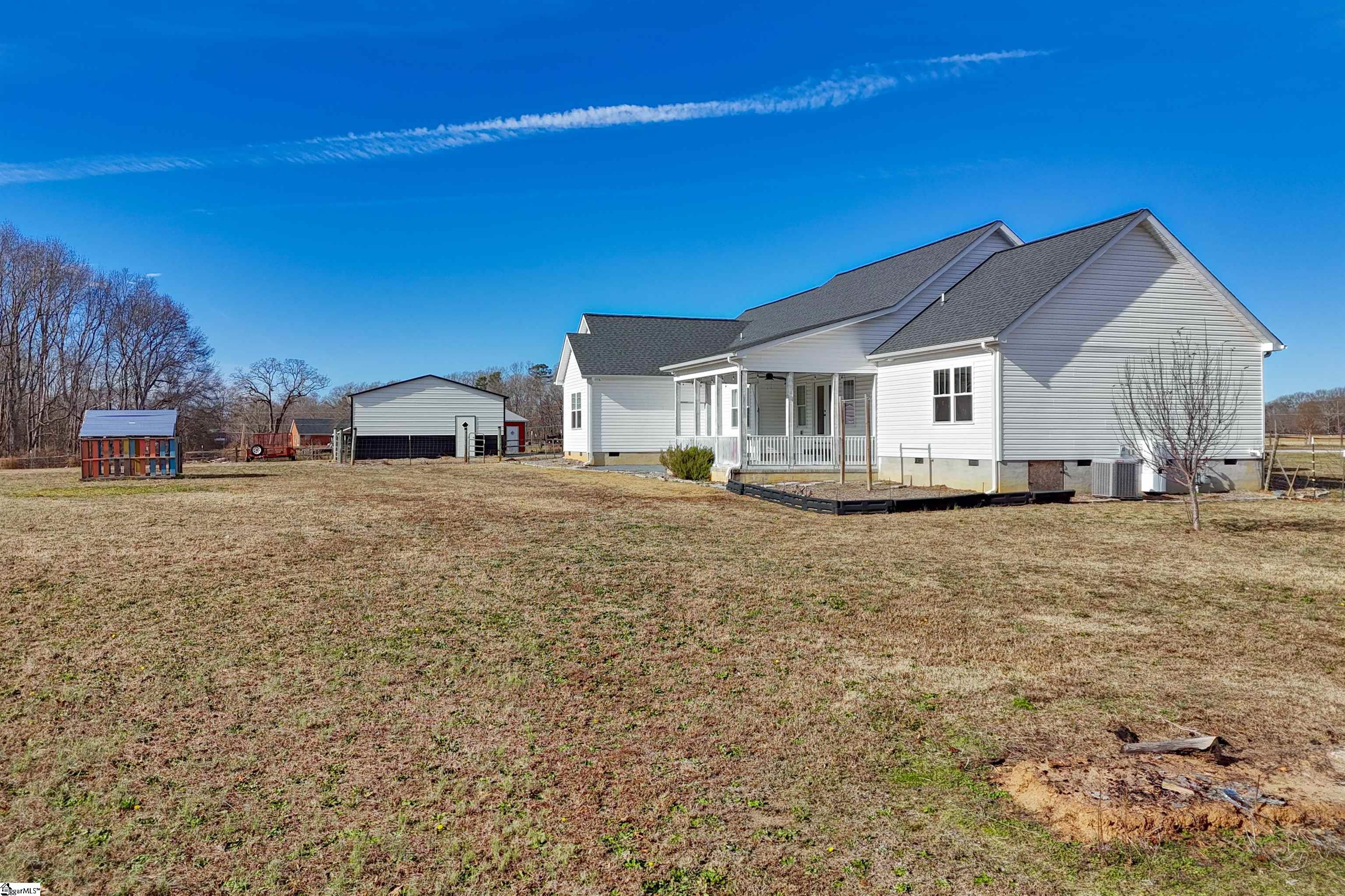 PRICE IMPROVEMENT...PRICED TO SELL! A great opportunity to own this desirable property at a refreshed price! Welcome to this beautiful Craftsman-style home, only 6 years old, nestled on 3.70 picturesque acres, offering space, privacy, and timeless appeal—with no HOA. A huge country front porch sets the tone for relaxed living, while the large covered back porch and patio provide exceptional spaces for entertaining and enjoying unforgettable outdoor experiences. Inside, you’ll find a thoughtfully designed split floor plan with 4 spacious bedrooms and 3 full baths. The primary suite on the main level offers comfort and convenience, while a versatile bonus room with an attached bath can easily serve as a playroom, home office, or guest suite/5th bedroom. The home opens to a stunning great room with a soaring cathedral ceiling and a cozy gas log fireplace, creating a warm and inviting space for gathering with family and friends. Hardwood floors flow throughout the main living areas, enhancing the home’s warmth and elegance. The heart of the home is a gorgeous white kitchen featuring granite countertops and all stainless steel appliances, making it ideal for both everyday living and entertaining. Outdoors, enjoy a fully fenced yard, perfect for pets, play, and added privacy, along with 2 acres of fully fenced pasture. Adding to the home’s appeal is plenty of storage, including a two-car attached garage and an additional three-car detached garage with a concrete floor and electricity, ideal for vehicles, a workshop, or extra storage. The location is ideal, offering quick access to Interstate 85, downtown Greenville and Anderson, lake Hartwell, and other popular attractions. With its classic Craftsman charm, modern features, peaceful acreage, and no HOA restrictions, this exceptional property truly offers the best of comfort, convenience, and country living.