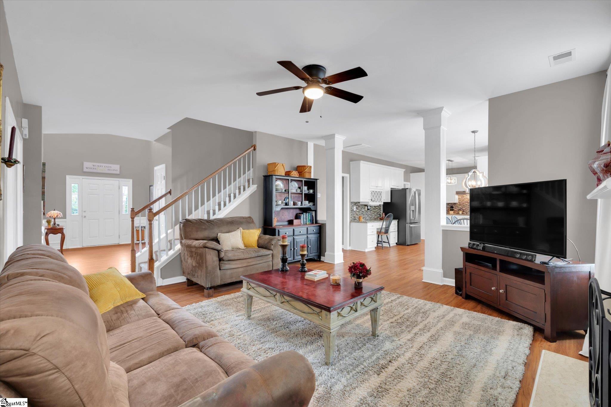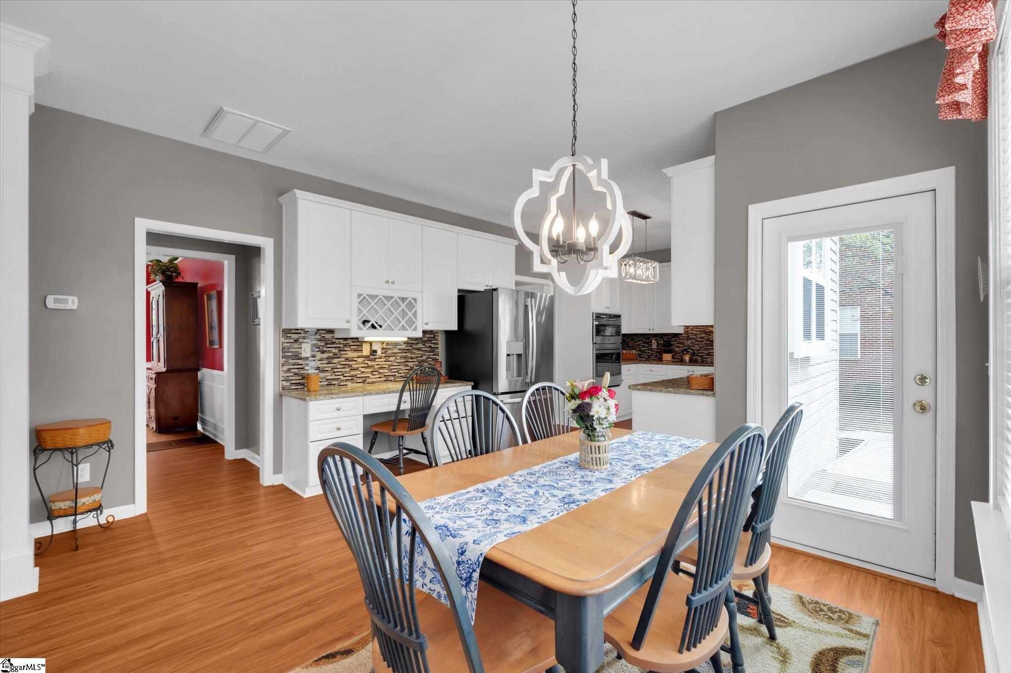 Beautifully maintained home in the desirable neighborhood of Abbeyhill Park! Step through the front door of this classic home and you’re welcomed by a spacious dining room on the left—perfect for hosting family and friends. To the right, a formal living room offers flexible space ideal for a home office, library, or playroom. Just beyond, you’ll find a main-level bedroom with a full bath—perfect for guests or multigenerational living. Continue into the inviting great room, filled with natural light and centered around a cozy fireplace. The adjoining informal dining area features French doors that open to a serene backyard retreat. Enjoy your private oasis complete with a charming man-made pond and gentle waterfall—relax on the deck while listening to the soothing sounds of water and birdsong. Or decompress in the hot tub! Back inside, the beautifully updated kitchen is sure to impress with granite countertops, a tile backsplash, and stainless steel appliances. This space is complemented by a large pantry, walk-in laundry room, and convenient access to the two-car garage. Upstairs, the expansive primary suite is a true retreat, featuring its own sitting area with a fireplace. The en-suite bath offers a garden tub, separate shower, and a dedicated vanity/makeup area. Three additional bedrooms and another full bath complete the upper level. Ideally located near the shopping, dining, and entertainment of Woodruff Road and Bridgeway Station, this home offers the perfect balance of convenience and tranquility. Don’t miss this one—schedule your showing today!