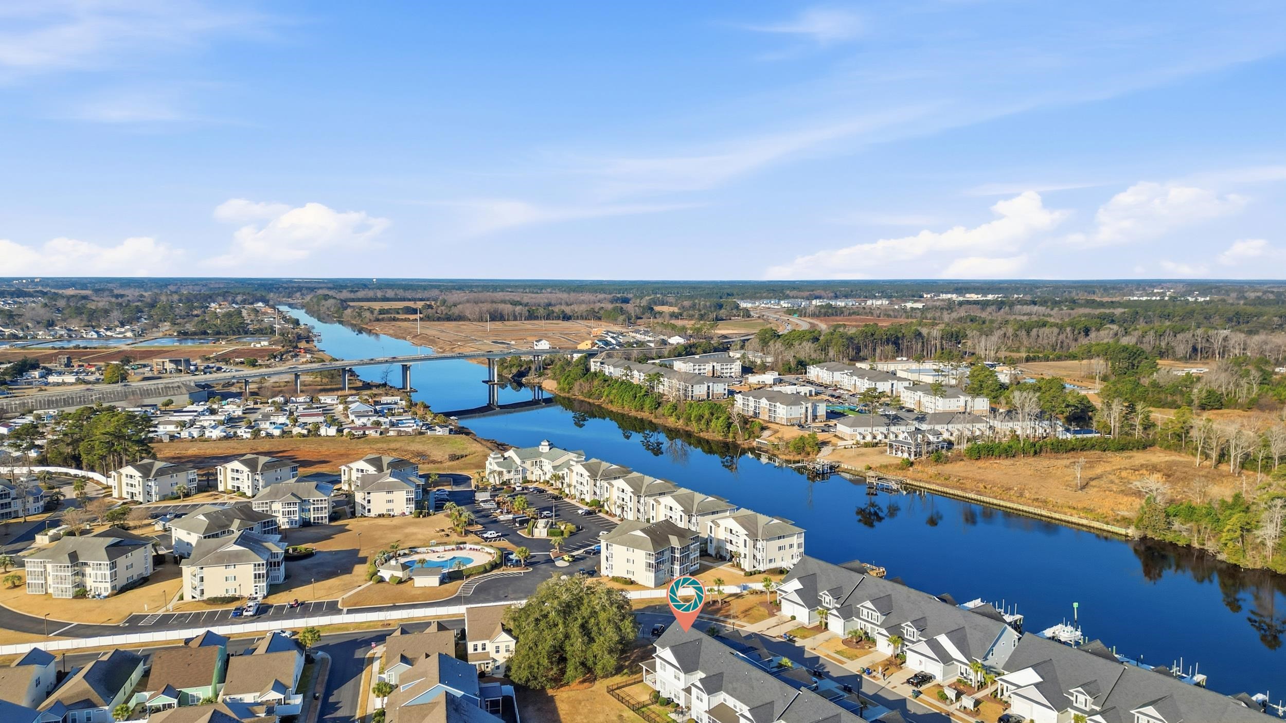 True Intracoastal Waterway living — with your own boat slip and lift just steps away. Welcome to The Villas @ Bellasera, a gated waterfront community just a few blocks from Main Street in North Myrtle Beach. This luxury end-unit villa, sold mostly furnished, offers a rare combination of boating access, privacy, and outdoor space that truly sets it apart. Inside, the home features a bright, open layout with 10-foot ceilings, 8-foot doors, and ceramic tile throughout the main level, creating an easy coastal flow. The kitchen is designed for both entertaining and everyday living with granite countertops, an oversized island, soft-close cabinetry, stainless steel appliances, and a stylish backsplash — all opening seamlessly to the living and dining areas. The primary suite is conveniently located on the first floor and includes a shiplap accent wall, walk-in closet, and an upgraded bath with double vanity and comfort-height fixtures. You’ll also find a laundry room, powder room, and an oversized one-car garage with water access and finished flooring. Upstairs offers 9-foot ceilings, a spacious loft, three additional bedrooms, and two full baths — providing plenty of room for family, guests, or flexible living space. What truly makes this villa special is the outdoor setting. As an end unit, it features a large side yard, rear fenced area, extra nearby parking, and a beautiful live oak tree in the adjacent common space that creates a peaceful, shaded backdrop. Just steps away, enjoy a private boat slip with power lift, electric, water, and safety railings for effortless access to the Intracoastal Waterway. All of this is less than a mile from the beach and just minutes to restaurants, shopping, and live music on Main Street. Bellasera offers a rare blend of luxury, location, and true boating lifestyle — and this end-unit villa is a standout opportunity.