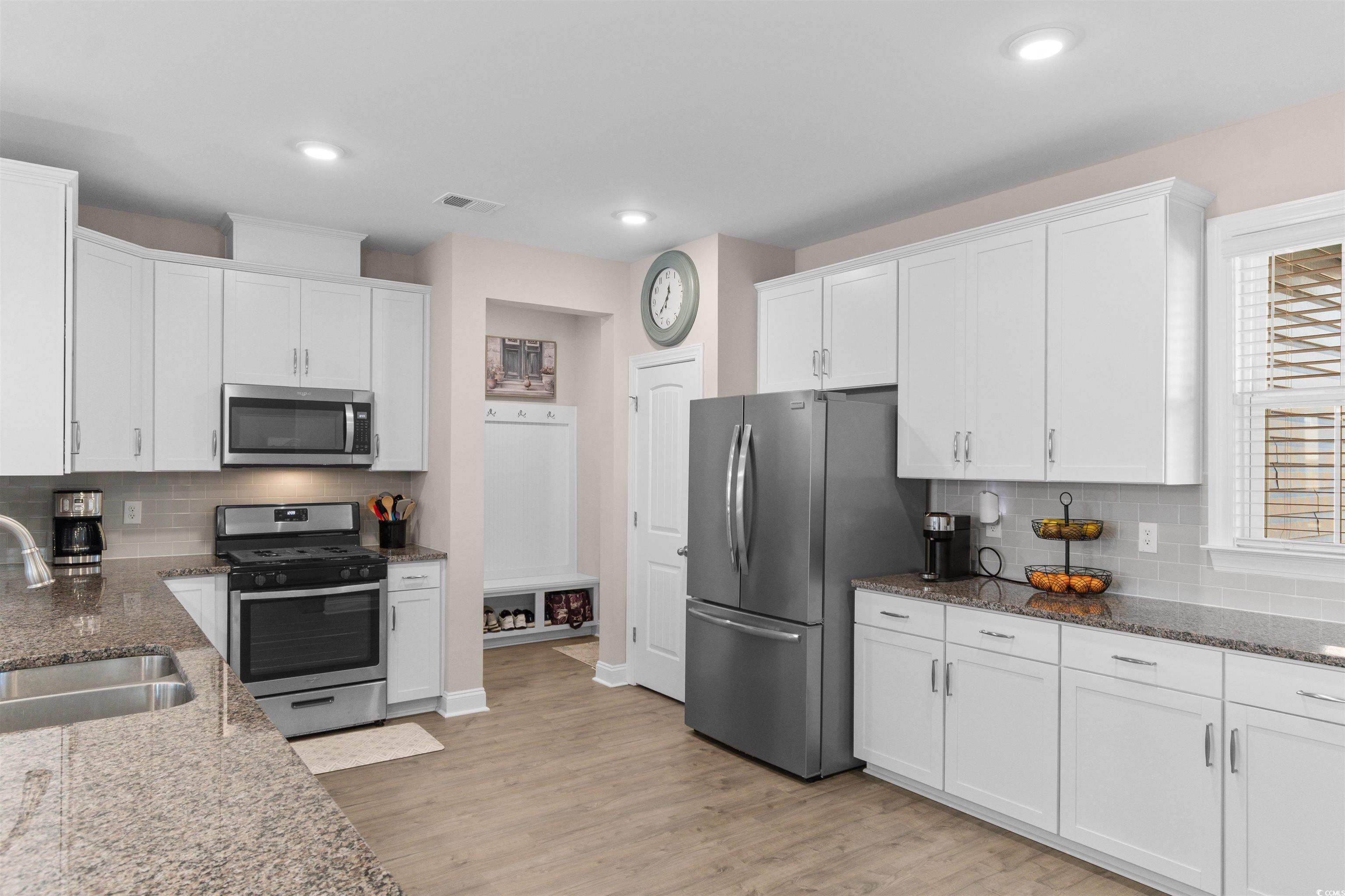 Welcome to this beautiful 3-bedroom, 2-bath home in the desirable Surfside Plantation community in Myrtle Beach. This comunity is just a short drive to the beach, shopping, dining, and entertainment. This home offers an open, split-bedroom floor plan that provides both privacy and great space for relaxing or entertaining. Enjoy this open concept kitchen, dining, and living area that makes it easy to host gatherings or enjoy everyday living. Relax in your beautiful Carolina Room overlooking a large rear yard. The kitchen features ample counter space, upgraded stainless appliances, stylish cabinetry, and a gas stove for those who love to cook. The expansive owner’s suite features added space with a large bay window. The ensuite includes a double vanity, large walk-in shower, and a massive walk-in closet by Closets by Design. Guest bedroom also has a Closet by Design closet which provides for excellent storage and organization options. Well-planned split-bedroom layout maximizes privacy for the owner’s suite and guest rooms. Your gonna love your well maintained large, private yard updated with palm trees and white landscape stones. This outdoor space creates a peaceful outdoor oasis. A screened in patio space is ideal for morning coffee, evening barbecues, and year-round outdoor enjoyment. Hurricane shutters have been installed on all windows and doors. In-line water filter professionally installed on tankless water heater. Surfside Plantation, a newer single-family home community, is near Surfside Beach and Myrtle Beach, approximately 4 miles to the nearest beach.