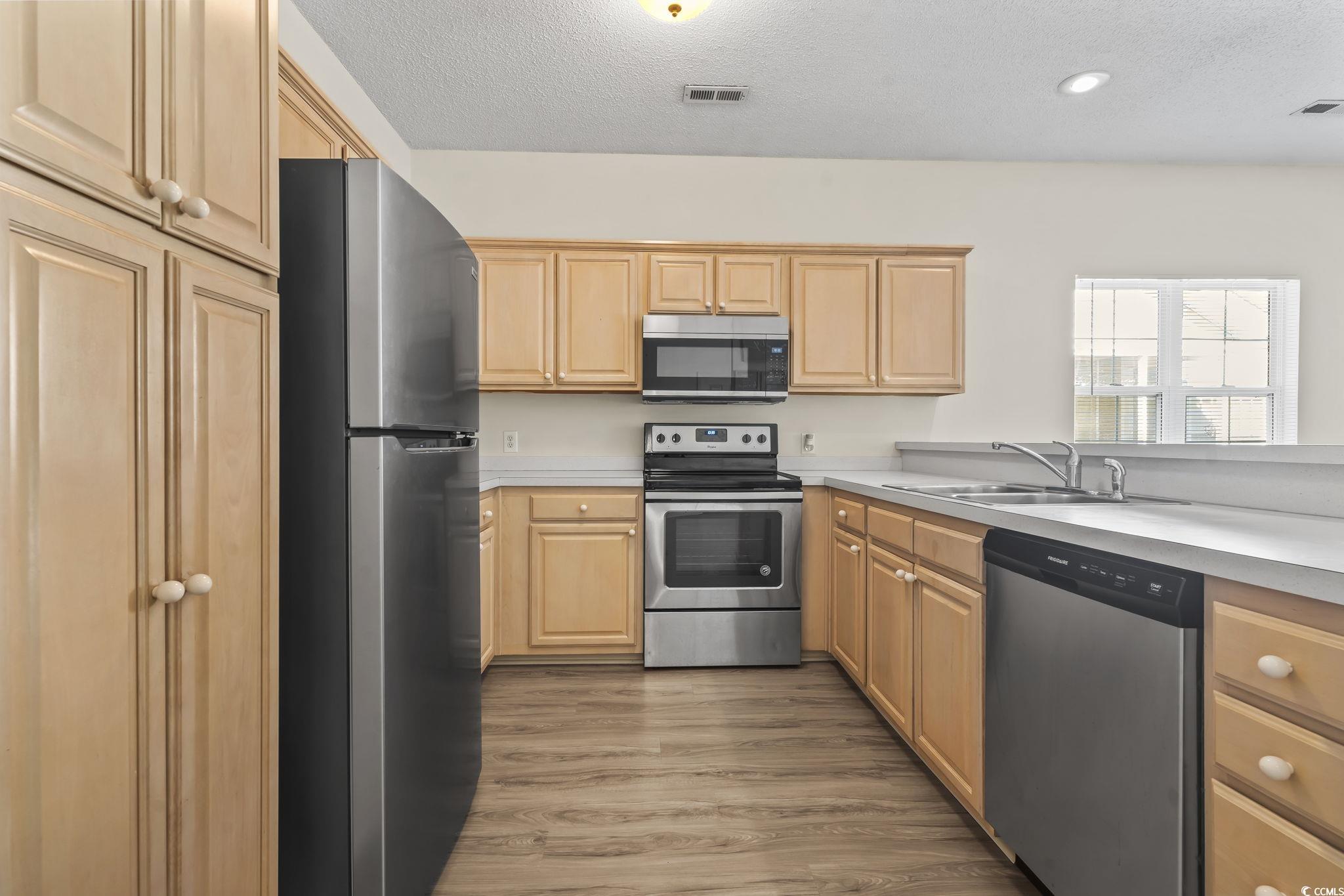 Top-Floor Privacy Meets Modern Style — Fully Updated 3BR End Unit in Sweetwater of Indian Wells If you’ve been searching for a move-in-ready condo with space, sunlight, and zero renovation lists, this top-floor 3-bedroom, 2-bath end unit in Sweetwater of Indian Wells is the one you don’t want to miss. Tucked into a quiet corner of the community, it offers exceptional privacy and a bright, modern interior from the moment you walk in. Vaulted ceilings and additional end-unit windows flood the home with natural light, while brand-new Lucida Gluecore Silver Grey LVP flooring, fresh paint, and brushed nickel Hampton Bay ceiling fans give the entire space a clean, polished feel. With 1,245 heated sq. ft. (1,400 total), the layout offers comfortable flow whether you’re relaxing in the living room or hosting friends for dinner. The kitchen has been refreshed with new stainless steel appliances and opens directly into the dining and living areas for easy everyday living. Step out onto your private screened balcony and enjoy the peaceful wooded backdrop — a tranquil place for morning coffee or evening downtime. Even the outdoor storage closet has been upgraded with matching LVP and fresh paint to keep everything neat and tidy. Additional features include: Full-size washer & dryer (included) New roof (2024) Water heater (2023) Completely turnkey — no projects, no updates needed Sweetwater offers a relaxed, well-maintained environment surrounded by mature landscaping. Each building cluster has its own private pool, and this condo belongs to one of the quietest 3-building sections in the community. Residents also enjoy tennis courts, plus an HOA that covers water, trash, cable, community Wi-Fi, interior pest control, and exterior maintenance — making ownership effortless. Whether you're seeking a full-time home, a getaway close to the beach, or a strong long-term investment, this refreshed top-floor end unit delivers outstanding value and comfort. Schedule your private showing today and discover why Sweetwater remains one of Murrells Inlet’s most popular communities.