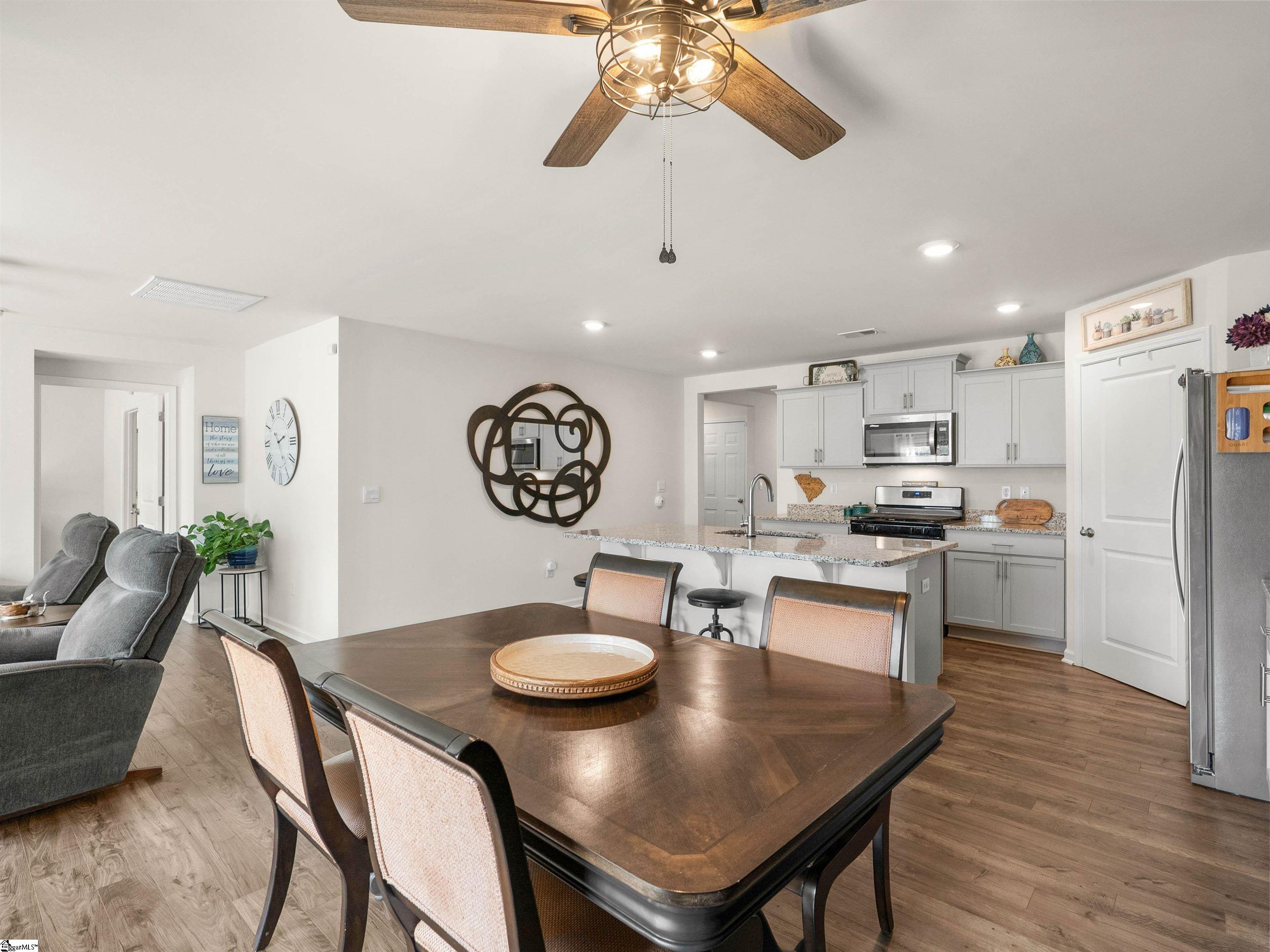 Claiming what is arguably the most private lot in Piedmont’s desirable Cambridge Creek community due to a fully fenced yard and no direct neighbor on one side, this meticulously maintained four-bedroom ranch offers an exceptional sense of seclusion. Enjoy an effortless, single-story lifestyle that seamlessly blends modern efficiency with an inviting, open-concept design, all centrally located for easy access to the dining and retail hubs of Simpsonville, Greenville, and Anderson. Enter the home and feel the expansive flow of the main living area, perfectly suited for lively entertaining or relaxing evenings. Generously proportioned doorways ensure effortless transitions between rooms, enhancing the home's open, airy feel. The focal point is a spacious chef’s kitchen with a prominent granite island, stainless-steel gas appliances, and ample prep space, all overlooking a bright dining space and a comfortable living room. Durable wood-look laminate flooring carries you through high-traffic areas, offering a sophisticated aesthetic that stands up to daily wear and tear. The primary bedroom serves as a quiet retreat, intentionally positioned to maximize privacy. It features an oversized closet and a refined en-suite bathroom showcasing a dual-sink vanity alongside a low-threshold shower. Three versatile secondary bedrooms are ready to adapt to your specific needs—whether you require a dedicated home office, a fitness room, or guest accommodations. For your organizational needs, you will find ample storage in the attic, while a highly sought-after tankless water heater provides endless hot water. These upgrades, along with energy-efficient LED lighting and an active termite bond, ensure ongoing comfort, utility savings, and total peace of mind. Transition smoothly outside to your exceptionally private, level backyard, offering the perfect setting for morning coffee on the patio or weekend cookouts. Raised flowerbeds are situated throughout the yard, ready for your seasonal planting, while a customized storage shed—complete with electricity, a built-up deck, and motion-sensor lighting—provides an ideal workshop or hobby space. For those looking to enjoy a bit of nature at home, the community guidelines comfortably allow for caged birds. The Cambridge Creek neighborhood also enhances your daily routine with its community pool, cabana, and playground, and you will appreciate being just a quick four-minute drive from the Piedmont Golf Course. Reach out today to schedule your private showing, tour the property, and see firsthand if this layout feels like the right fit for your next move.