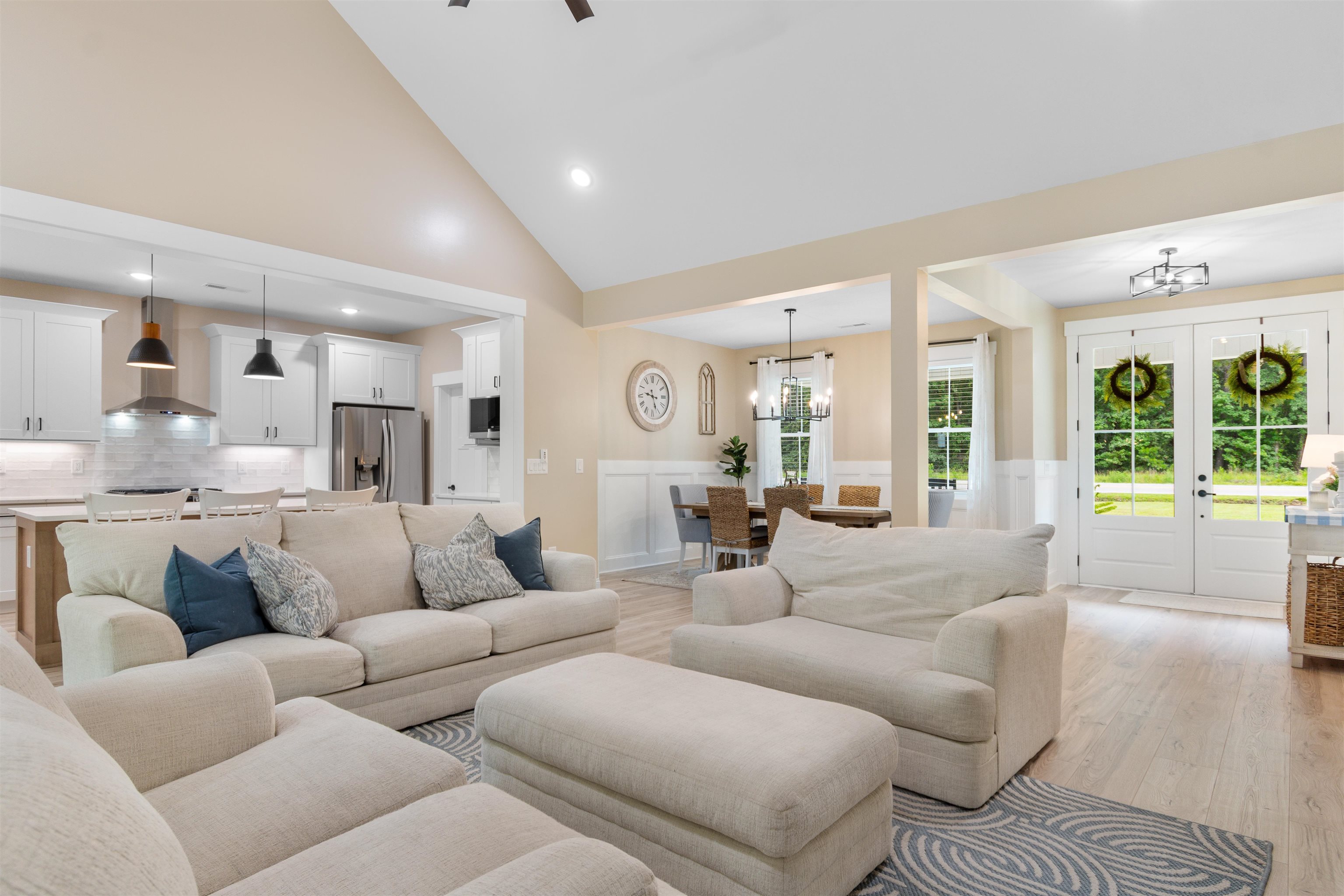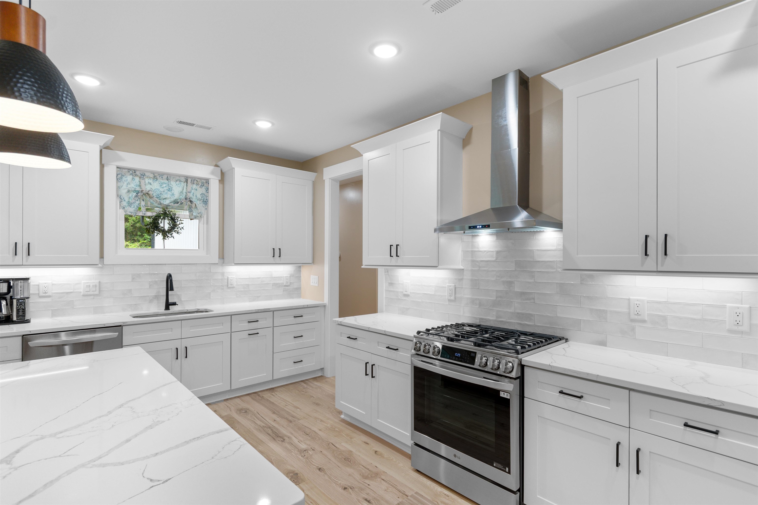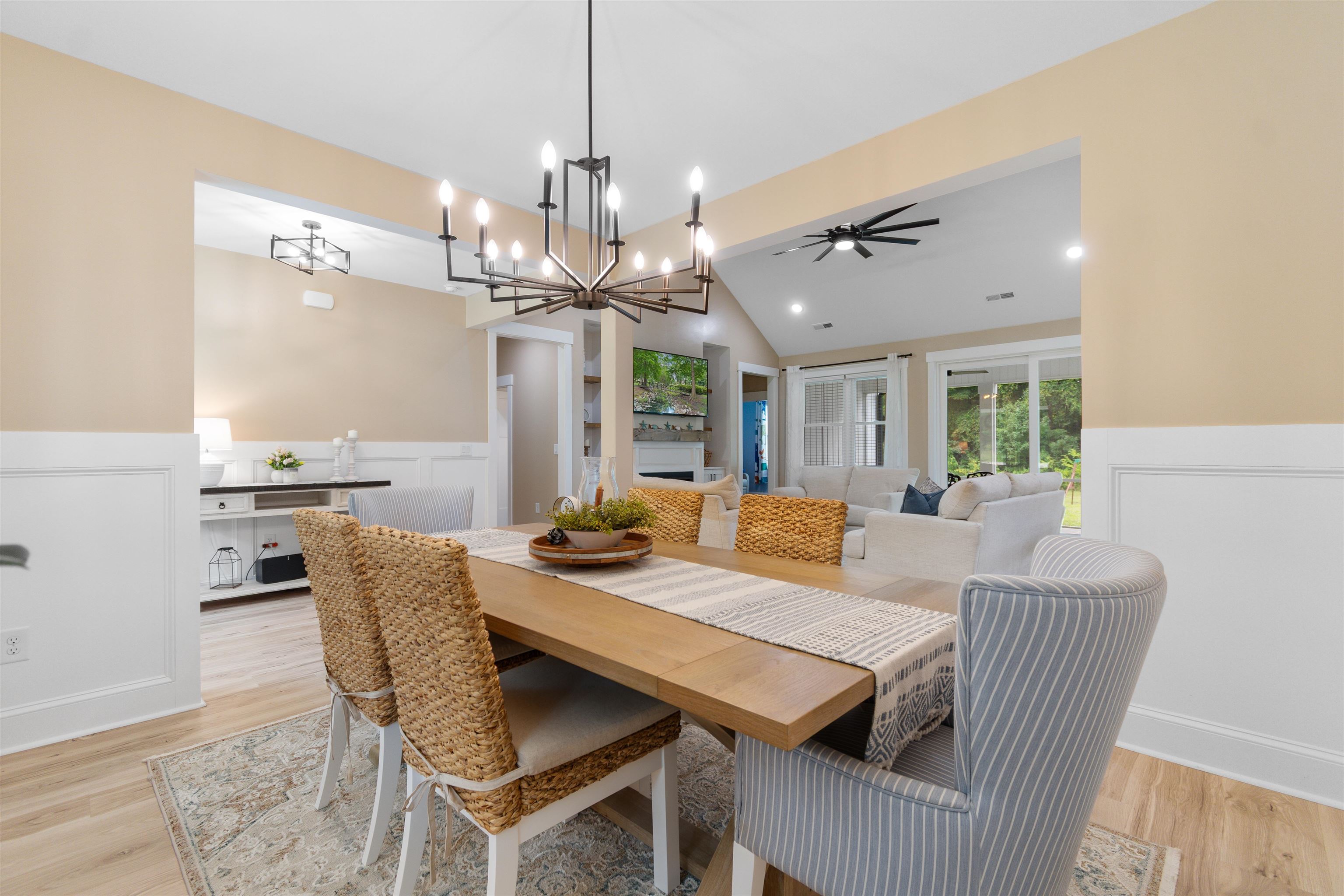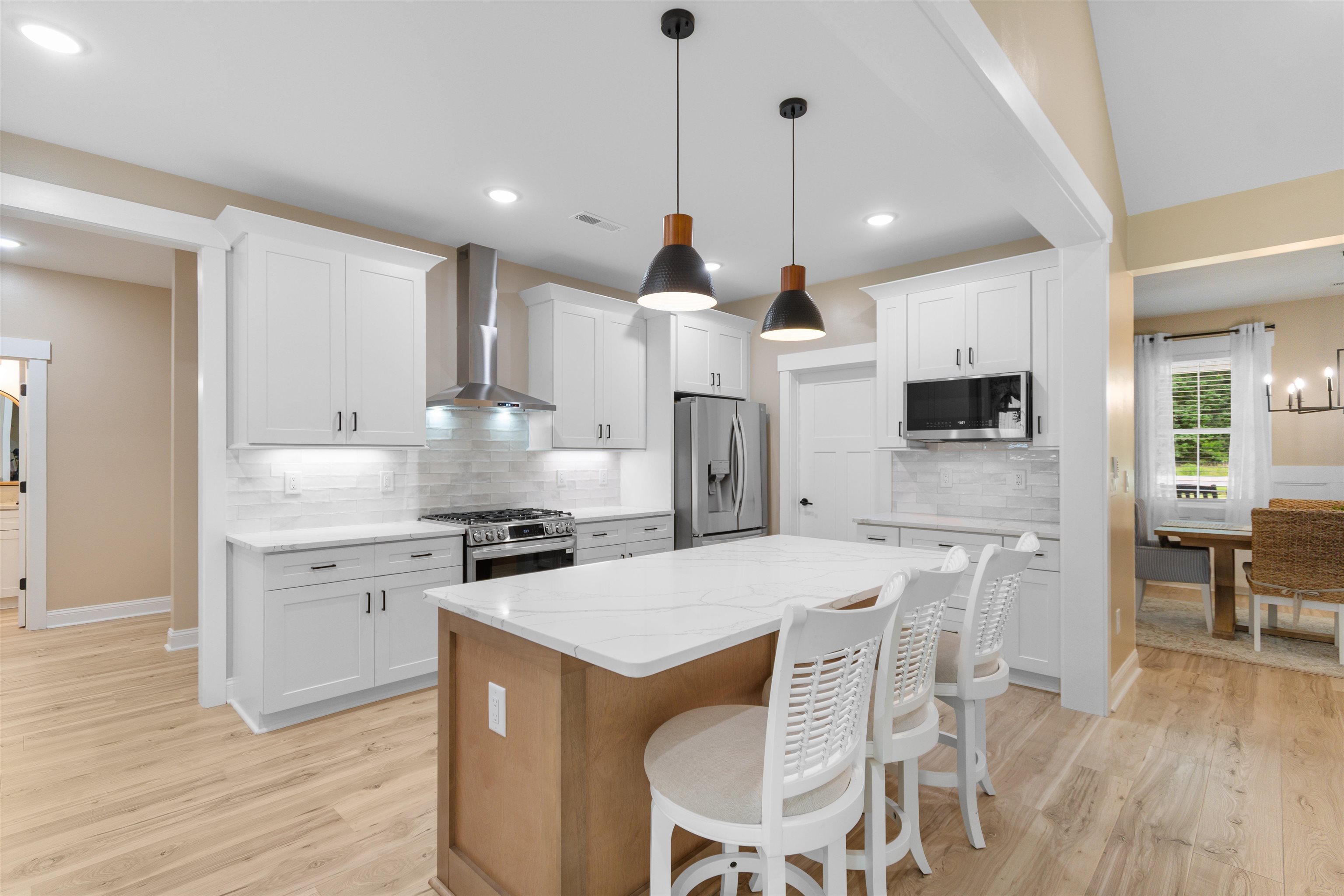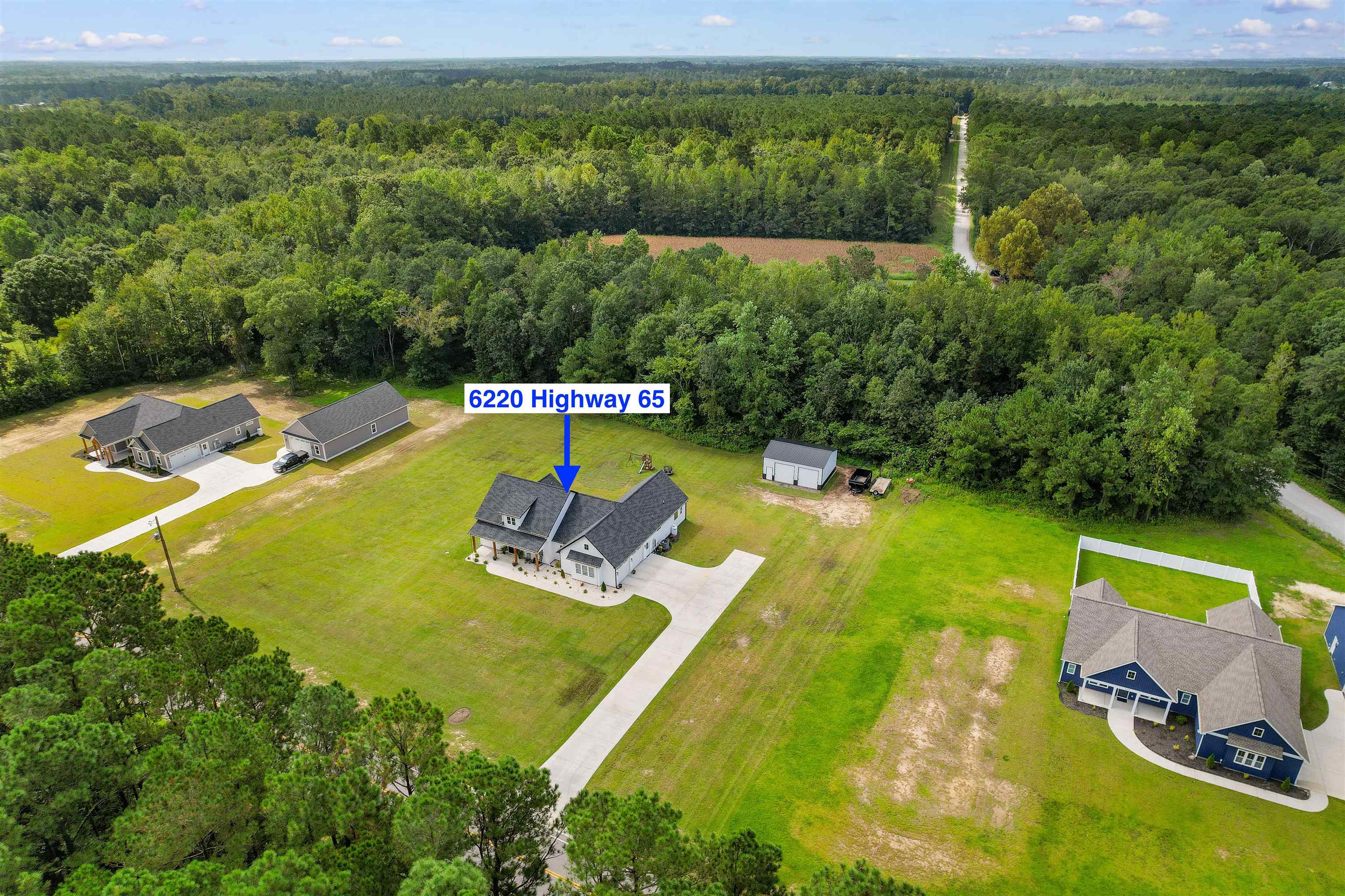Welcome to this custom built modern farmhouse where thoughtful craftsmanship and intentional design come together on 1.64 acres with no HOA! Framed by a mature tree line, the property offers space to expand, entertain, or create the outdoor setting you’ve always wanted! An oversized two car garage plus a 24 x 30 detached garage with concrete flooring provide exceptional flexibility for vehicles, storage, equipment, or workshop space. A long private driveway creates a welcoming approach and sets the home back beautifully from the road. Inside, the thoughtfully designed 3 bedroom, 2.5 bath split floor plan blends functionality with elevated style! The open concept living room features cathedral ceilings, a cozy fireplace, and custom wood built ins, while the formal dining room offers a beautiful setting for gatherings and entertaining. The kitchen is a true centerpiece, showcasing two tone cabinetry with classic white perimeter cabinets and a warm wood tone center island, quartz countertops, white tile backsplash, stainless steel appliances, and a spacious pantry with custom wood shelving. Abundant cabinetry and expansive counter space make it as practical as it is stunning! The private primary suite occupies its own wing, offering a spa inspired bath with double vanity, modern soaking tub, oversized tiled shower with waterfall and wall mounted fixtures, and a boutique style custom closet complete with extensive shoe storage. The closet connects directly to a spacious laundry room featuring cabinetry, sink, and folding counter for added convenience. Bedrooms two and three are positioned on the opposite side of the home and share a beautifully designed hall bath featuring dual sinks and a private shower and tub combination, offering a classic twist on a Jack and Jill layout while maintaining privacy and usability. Outdoor living is equally inviting with a rocking chair front porch and an extended screened back porch with dual ceiling fans, thoughtfully designed for comfortable everyday living and relaxed evenings at home. With 1.64 acres to call your own, there is endless potential to create your ideal outdoor retreat, whether adding a pool, outdoor kitchen, garden, or simply enjoying the open space. Located just 10 minutes from historic downtown Conway and approximately 25 minutes to Myrtle Beach via Highway 22, this property delivers the perfect balance of quiet country living and coastal convenience.