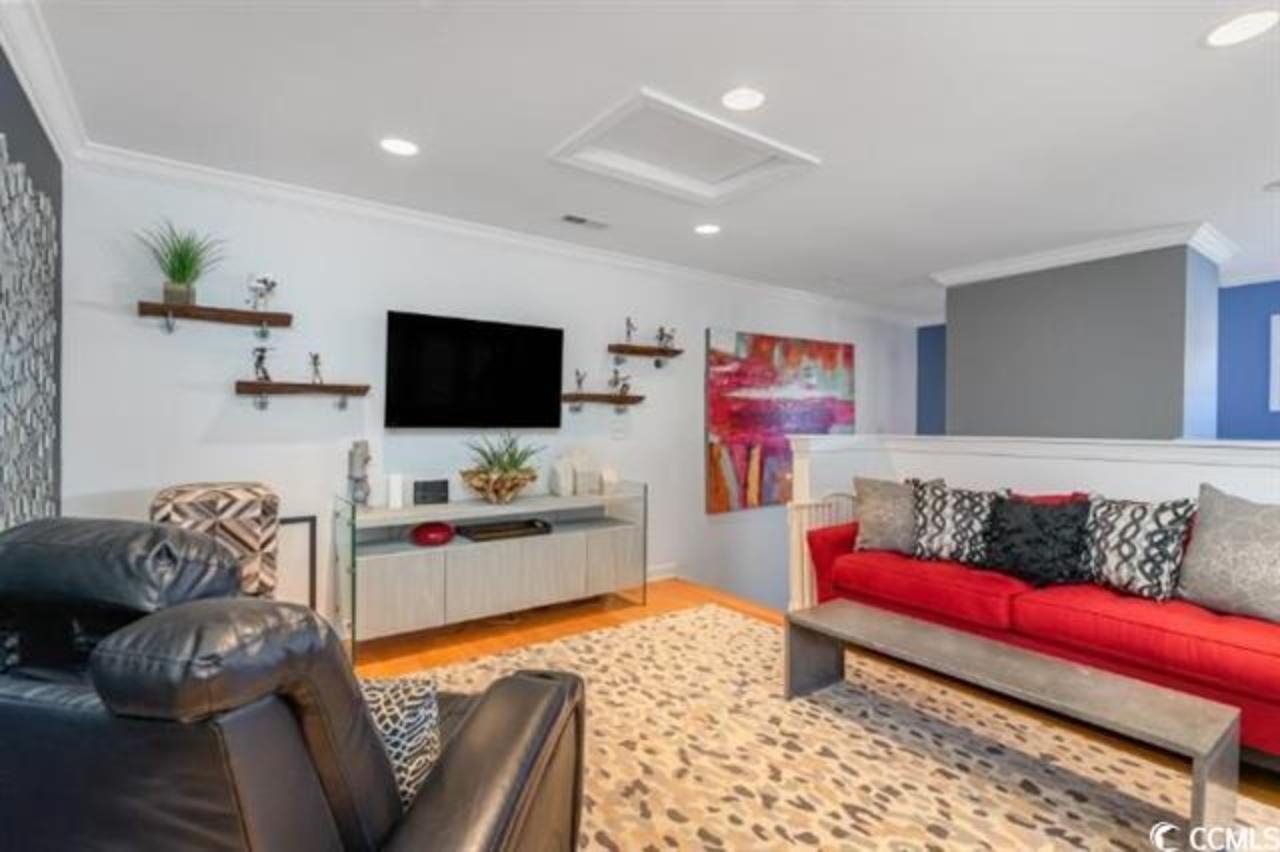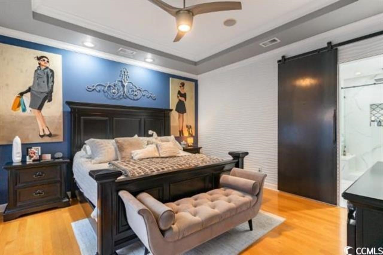 Welcome home to a place that truly feels special. This beautifully maintained townhome in Clearwater Bay at Barefoot Resort isn't just move-in ready---it's fully furnished, thoughtfully styled, and designed for effortless coastal living. From the moment you step into the foyer, the tone is set with a statement chandelier and elegant tray ceiling. The main living area opens up with soaring ceilings, warm natural light, and a cozy fireplace that makes the space feel inviting year-round. Every fixture, finish, and piece of décor has been carefully chosen, giving the home a polished yet comfortable vibe that feels more like a designer retreat than a typical townhome. The kitchen is a dream for anyone who loves to cook or entertain---complete with stainless steel appliances, a generous island, marble backsplash, breakfast bar, and custom handmade pantry racks that add both beauty and function. Just off the living space, the sunroom quickly becomes a favorite spot, with its greenhouse-style ceiling, ceiling fan, and its own independent climate control---perfect for morning coffee or winding down at the end of the day. The first-floor primary suite offers a peaceful escape, featuring a tray ceiling, custom walk-in closets, dual vanities, a spacious walk-in shower, and a luxurious garden tub topped with an artisan chandelier. A second bedroom on the main level overlooks the lake and fountain and has easy access to a full bath---ideal for guests or a home office. Upstairs, a versatile loft provides space for a media room, den, or game area, while two generously sized bedrooms each enjoy access to their own full bathrooms. Even the garage has been elevated, with a fully finished interior, custom storage, limo golf cart, and an optional screened garage door for added flexibility. Living in Clearwater Bay means enjoying a private community pool plus all the incredible Barefoot Resort amenities---including a private oceanfront beach cabana, a massive saltwater pool, multiple golf courses, luxury clubhouses with dining and bars, and more. And when you're ready to head out, the beach, shopping, dining, and entertainment of the Grand Strand are just minutes away. This is more than a home---it's a lifestyle, and it's ready for you to move right in and start enjoying!