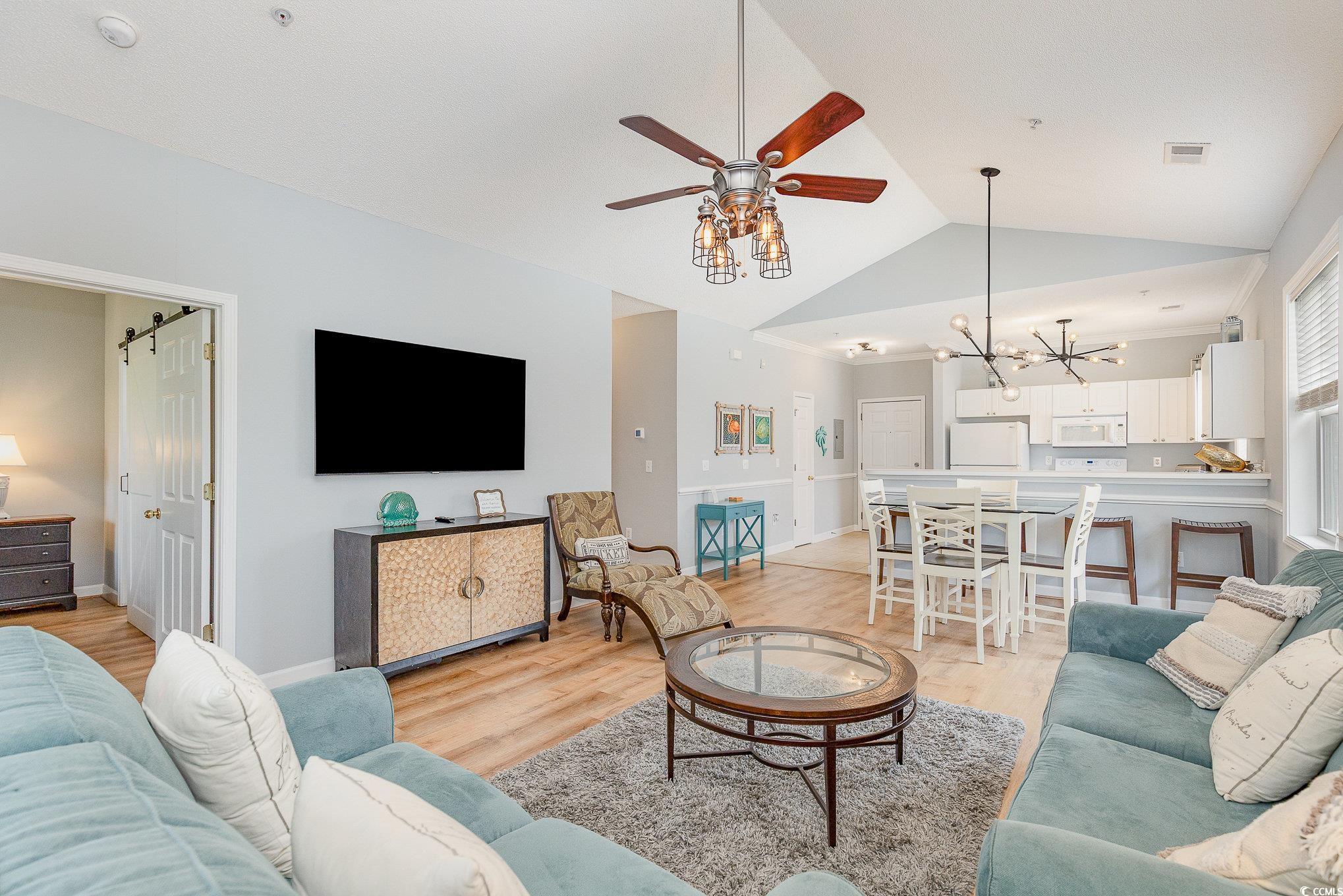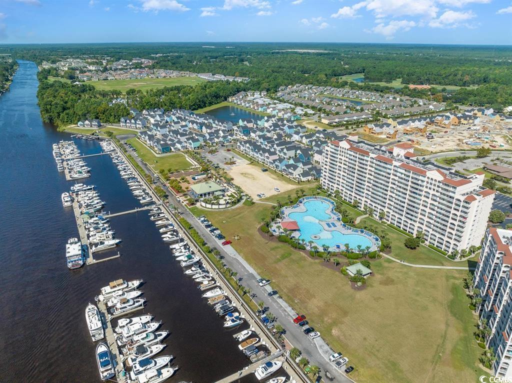 This exquisite top floor end unit is a luxurious retreat with high ceilings and stunning golf course views. Fully furnished, this condo is in the award-winning Barefoot Resort and Golf community, boasting 4 world-class golf courses. Owners have exclusive access to a beach cabana with gated parking, as well as a community pool and the sprawling, 15,000 sq/ft outdoor pool in front of the Yacht Club and North Tower high-rises. The screened-in back porch offers a peaceful spot to enjoy a drink or dinner with views of the golf course. Barefoot Landing, a popular destination for shopping, dining, and entertainment, is just a short distance away. With a marina and a variety of restaurants and shops, there is always something to do nearby. The community also offers additional amenities for residents to enjoy, making it a perfect place to relax and unwind. Whether you're looking for a peaceful getaway or a place to enjoy outdoor activities, this top floor end unit in Barefoot Resort has it all.