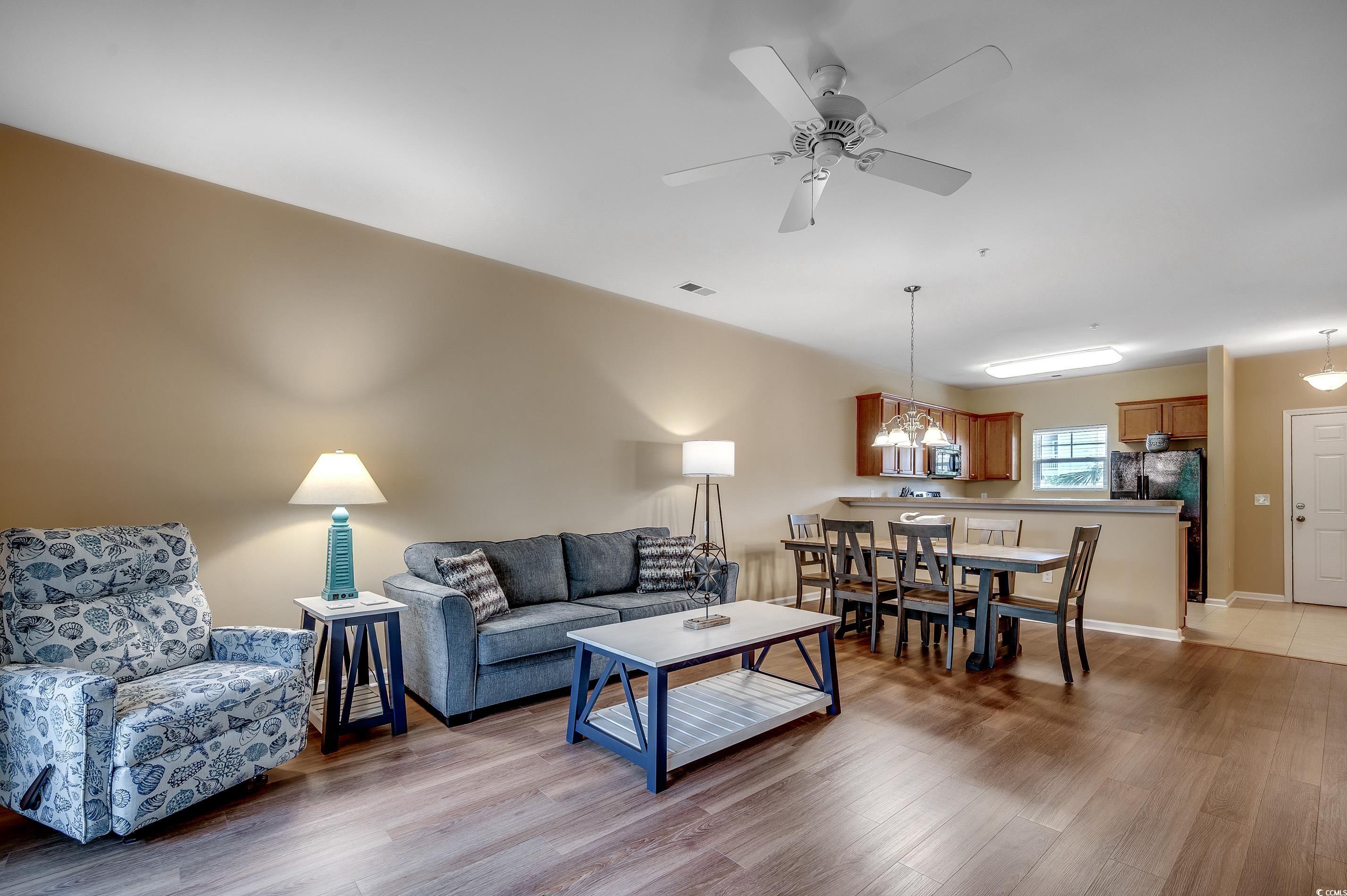 Welcome to Willow Bend at Barefoot Landing, where comfort meets convenience in this beautifully maintained 2-bedroom, 2-bathroom condo. Whether you’re searching for a permanent home, vacation retreat, or investment property, this second-floor condo is ideal—short and long-term rentals are allowed! This condo also has the transferable golf membership available. This option allows the new owner to become a member at a significantly reduced price. Please reach out for details regarding this option. Inside, you’ll find a bright and open floor plan with a well-appointed kitchen, spacious living and dining areas, and two generous bedrooms, including a private owner’s suite with an ensuite master bathroom, and a generous walk-in closet. The living room, each bedroom, and the screen porch include ceiling fans for comfort. The tile and LVP flooring allow for easy cleaning. Enjoy your morning coffee or evening breeze from the screened-in porch overlooking the lush community grounds with a pond just beyond the trees. The current owners did not rent this second-floor unit. Furniture was purchased within the last two years. For convenience, there is a storage closet accessible from the screen porch. Internet and basic cable are included in the HOA fees. Living in Barefoot Resort means an unparalleled lifestyle with access to the community pool unique to Willow Bend, a saltwater pool overlooking the Intracoastal Waterway, and a private gated Barefoot Beach Cabana with seasonal shuttle service. You’ll also enjoy four championship golf courses with a 30-acre lighted practice facility, scenic walking trails, and the Barefoot Yacht Club next to the Marina restaurant. All this is just minutes away from Barefoot Landing, where you can explore a wide variety of restaurants, boutique shopping, ice cream parlors, rides, live entertainment, music, stage shows, and so much more. Don’t miss your opportunity to own in one of the most sought-after resort communities in North Myrtle Beach. Schedule your showing today and start living the Barefoot lifestyle!