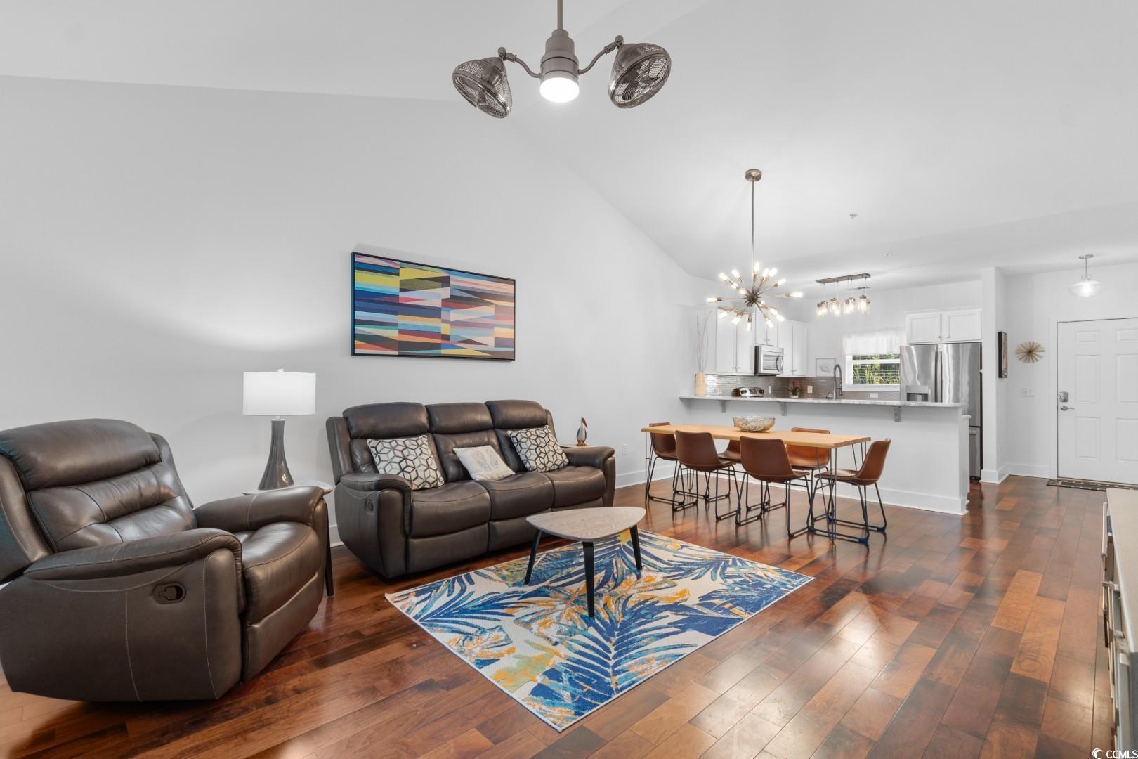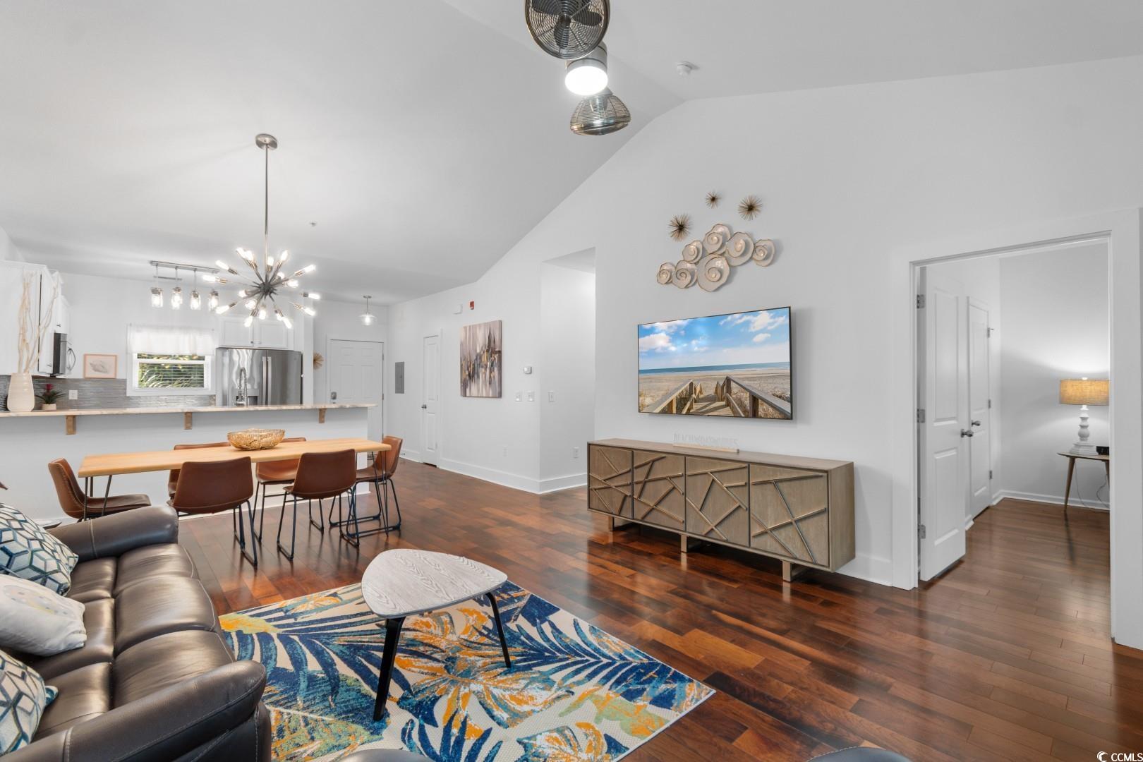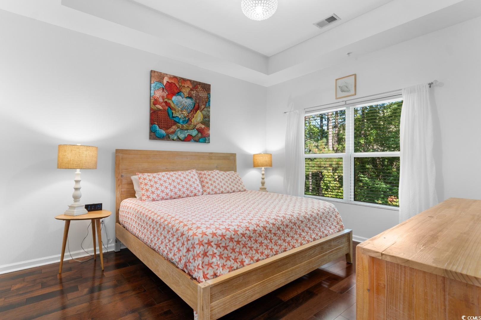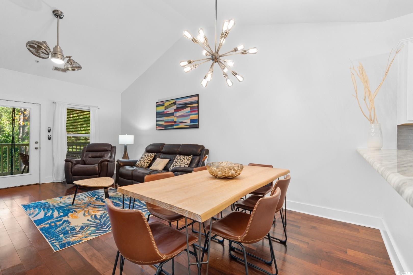 Welcome to Willow Bend, a tranquil community nestled within the highly sought-after Barefoot Resort in North Myrtle Beach. This fully furnished condo is a great investment property with a consistent rental history, or it would make for a perfect second or primary home. This chic, two-bedroom, two-bathroom condo is located on the third floor and features an open-concept layout with vaulted ceilings, creating an expansive and welcoming ambiance. The condo has been thoughtfully updated and exudes modern elegance with stunning Brazilian hardwood flooring, unique lighting fixtures, and updated furnishings. You'll find fresh paint on the walls, cabinets, and vanities, along with all new smart televisions, stainless steel appliances, and updated fixtures. Step onto your private balcony to enjoy your morning coffee while taking in the serene view of the surrounding woods. As a resident of this golf course community, you'll have convenient access to premier golfing opportunities, a refreshing community pool, and a variety of outdoor activities. But the advantages don't stop there. Willow Bend also offers effortless access to a wide array of dining options, oceanfront attractions, and the exclusive Barefoot Resort beach cabana for residents, community pool and access to the North Tower pool. A seasonal shuttle service is also available, making trips to the beach a breeze!