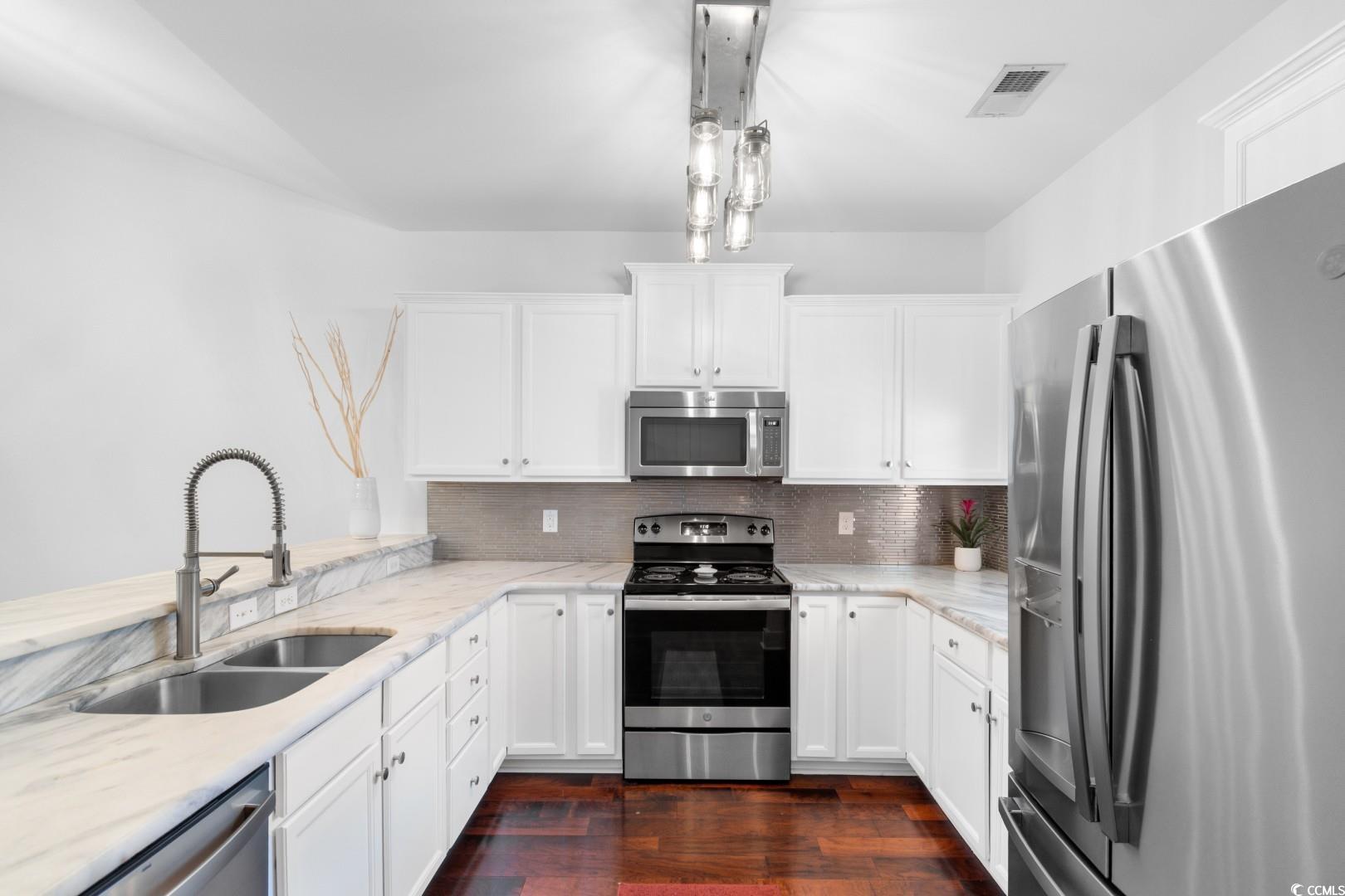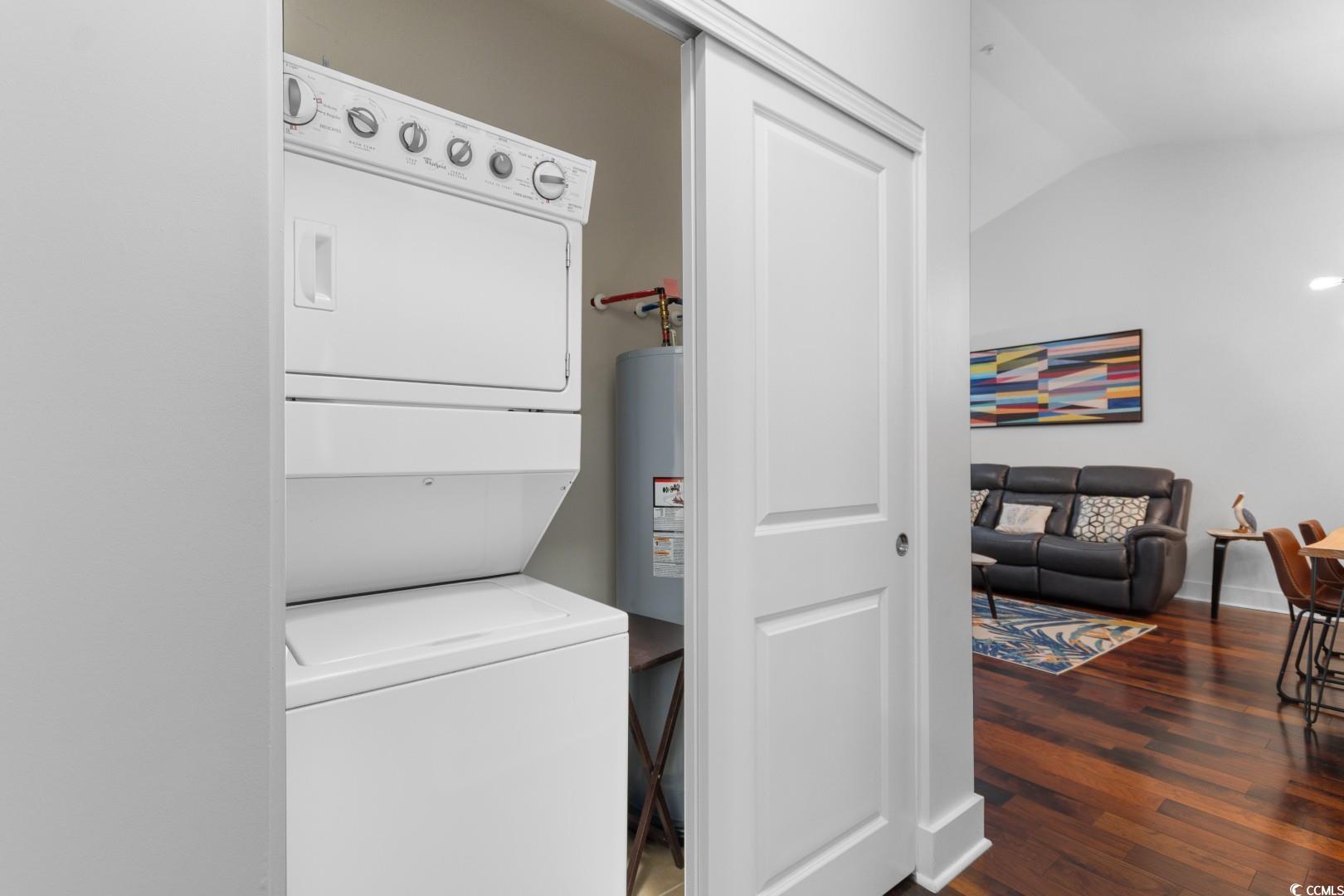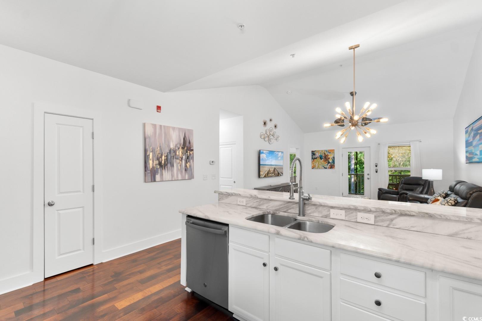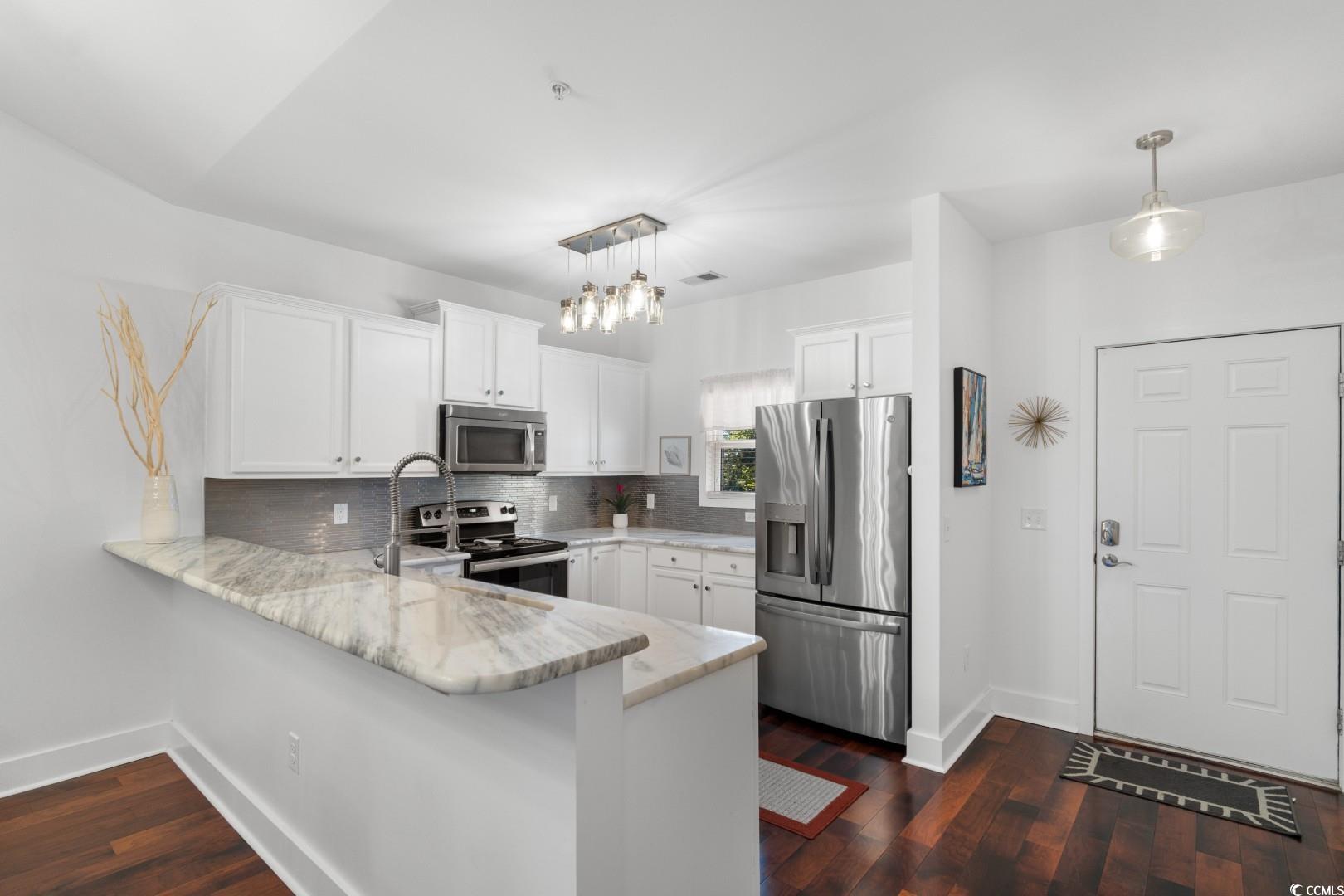 Welcome to Willow Bend, a tranquil community nestled within the highly sought-after Barefoot Resort in North Myrtle Beach. This fully furnished condo is a great investment property with a consistent rental history, or it would make for a perfect second or primary home. This chic, two-bedroom, two-bathroom condo is located on the third floor and features an open-concept layout with vaulted ceilings, creating an expansive and welcoming ambiance. The condo has been thoughtfully updated and exudes modern elegance with stunning Brazilian hardwood flooring, unique lighting fixtures, and updated furnishings. You'll find fresh paint on the walls, cabinets, and vanities, along with all new smart televisions, stainless steel appliances, and updated fixtures. Step onto your private balcony to enjoy your morning coffee while taking in the serene view of the surrounding woods. As a resident of this golf course community, you'll have convenient access to premier golfing opportunities, a refreshing community pool, and a variety of outdoor activities. But the advantages don't stop there. Willow Bend also offers effortless access to a wide array of dining options, oceanfront attractions, and the exclusive Barefoot Resort beach cabana for residents, community pool and access to the North Tower pool. A seasonal shuttle service is also available, making trips to the beach a breeze!