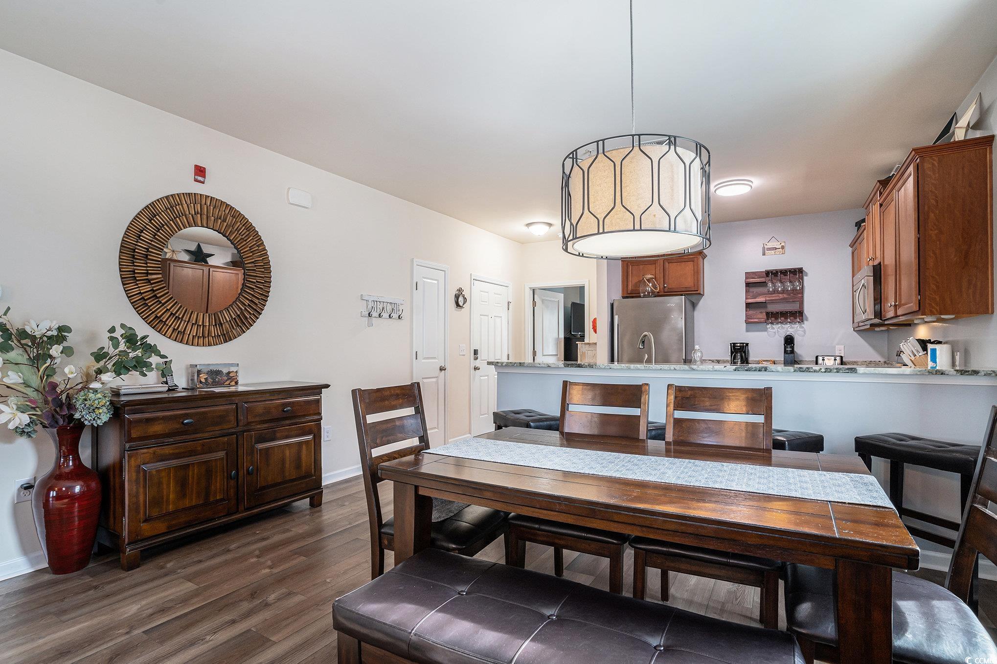 Welcome to this beautiful fully furnished 3-bedroom, 2-bathroom condo located in the desirable Willow Bend neighborhood of Barefoot Resort. This charming unit offers comfort, convenience, and resort-style living in one of North Myrtle Beach's most sought-after communities. Inside, you'll find a bright and inviting open floor plan designed for easy living and entertaining. The spacious living area flows seamlessly to the private balcony, where you can relax and enjoy serene views of the pond. The kitchen offers ample cabinet space and a breakfast bar, perfect for casual dining or morning coffee. The primary bedroom features two closets and an ensuite bath complete with a walk-in shower for added comfort and privacy. Two additional bedrooms and a second full bath provide plenty of space for family, guests, or a home office setup. Willow Bend residents enjoy exclusive access to a community pool and have additional privileges to the impressive North Tower pool overlooking the Intracoastal Waterway. The resort's amenities extend even further, including four championship golf courses, an oceanfront beach cabana, and a marina. Barefoot Resort's convenient location puts you just minutes from the ocean and the vibrant Barefoot Landing, where you'll find an array of restaurants, shops, and entertainment. Whether you're seeking a primary residence, vacation home, or investment property, this turn key condo offers the perfect blend of coastal comfort and lifestyle convenience.